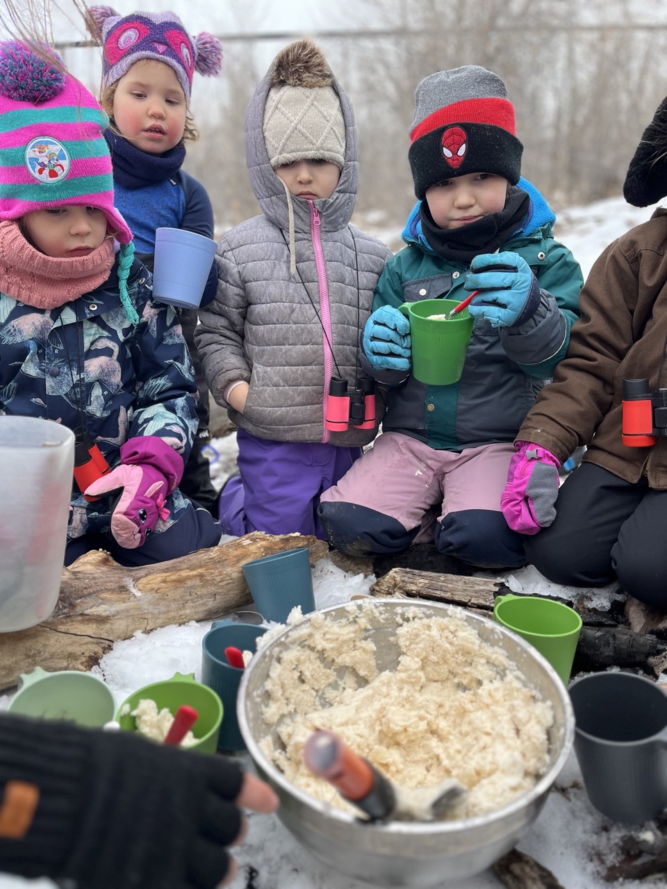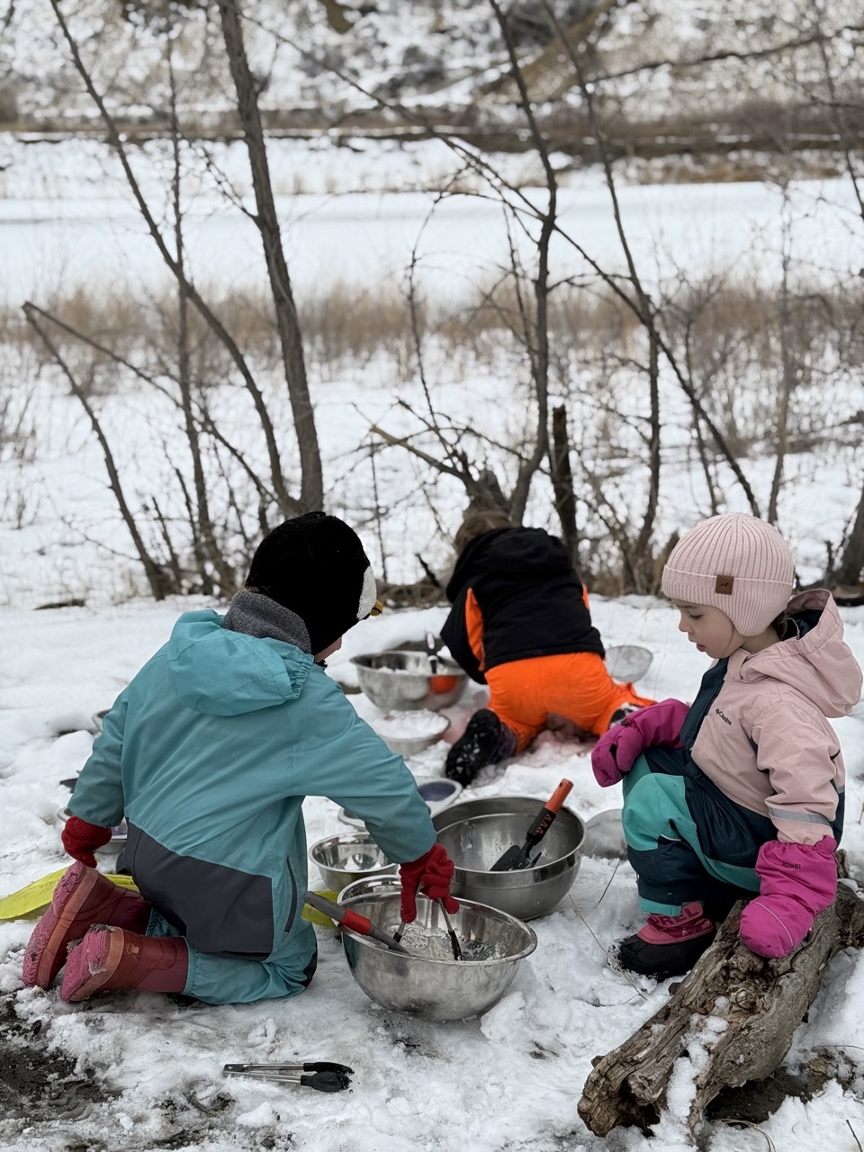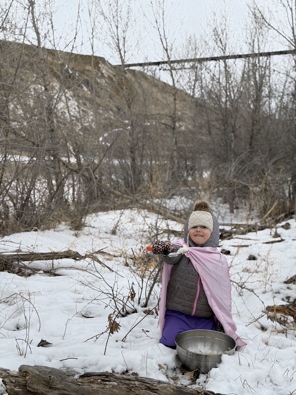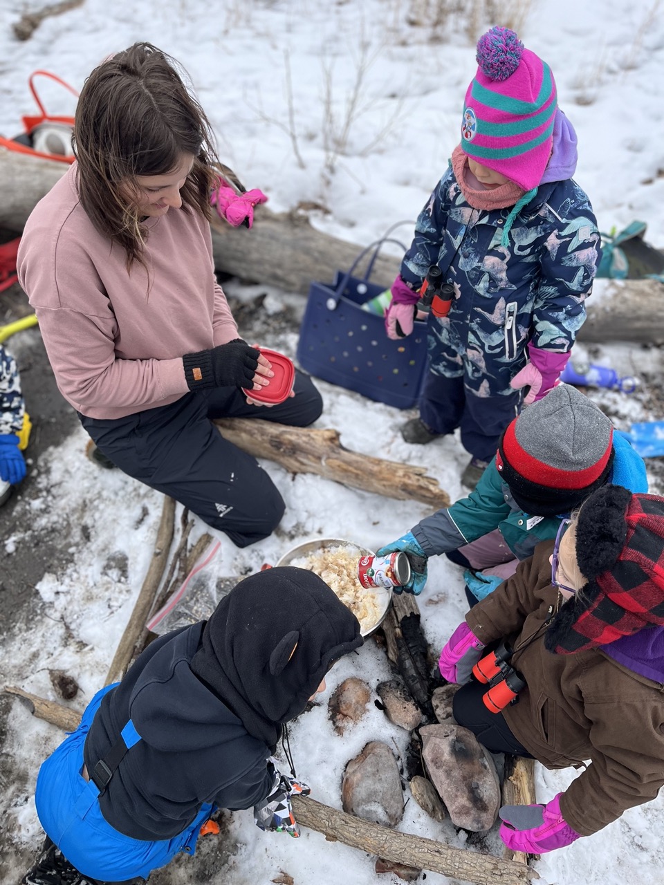 We wrapped up the day by making snow ice cream, listening to Nikayla share a story about chickadees and evergreens in winter, and creating pinecone bird feeders to help the birds through the rest of the season. 😊