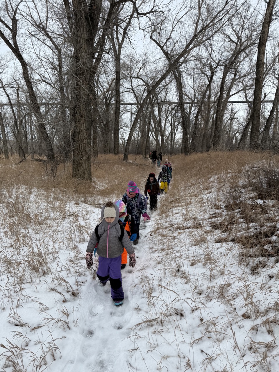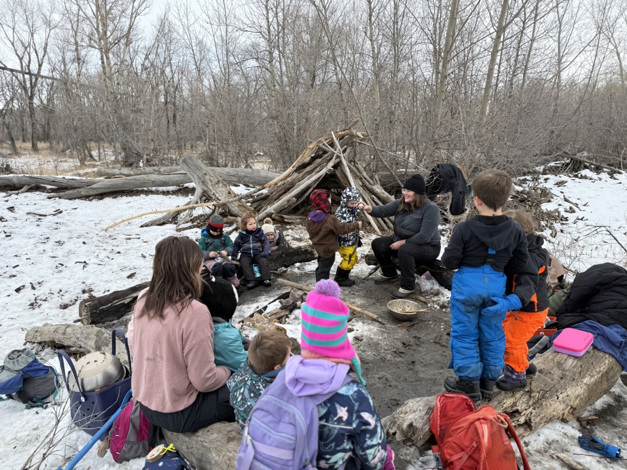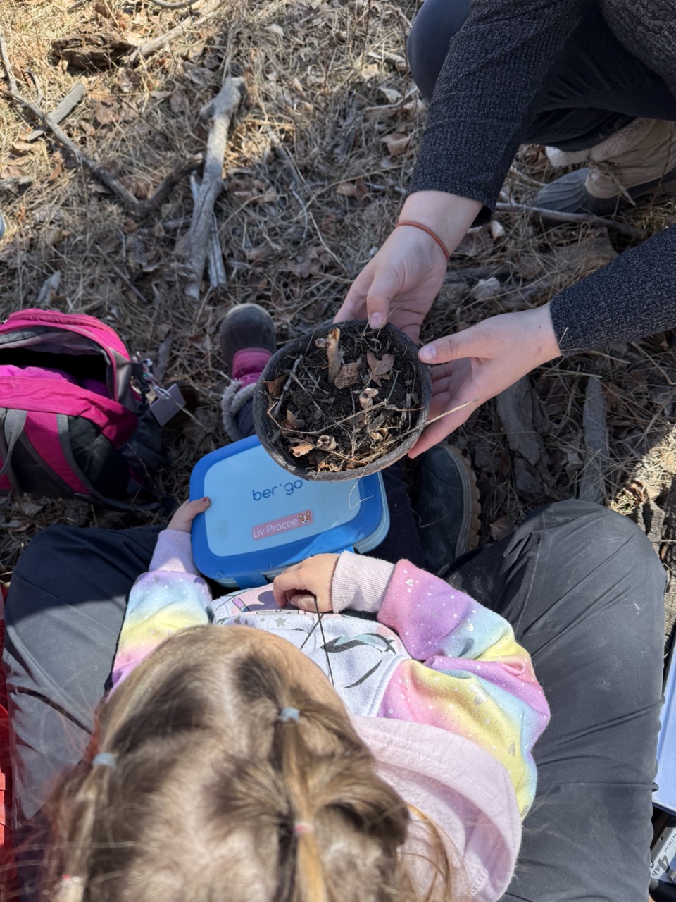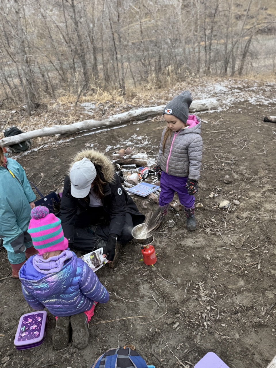 We wrapped up the day by making snow ice cream, listening to Nikayla share a story about chickadees and evergreens in winter, and creating pinecone bird feeders to help the birds through the rest of the season. 😊