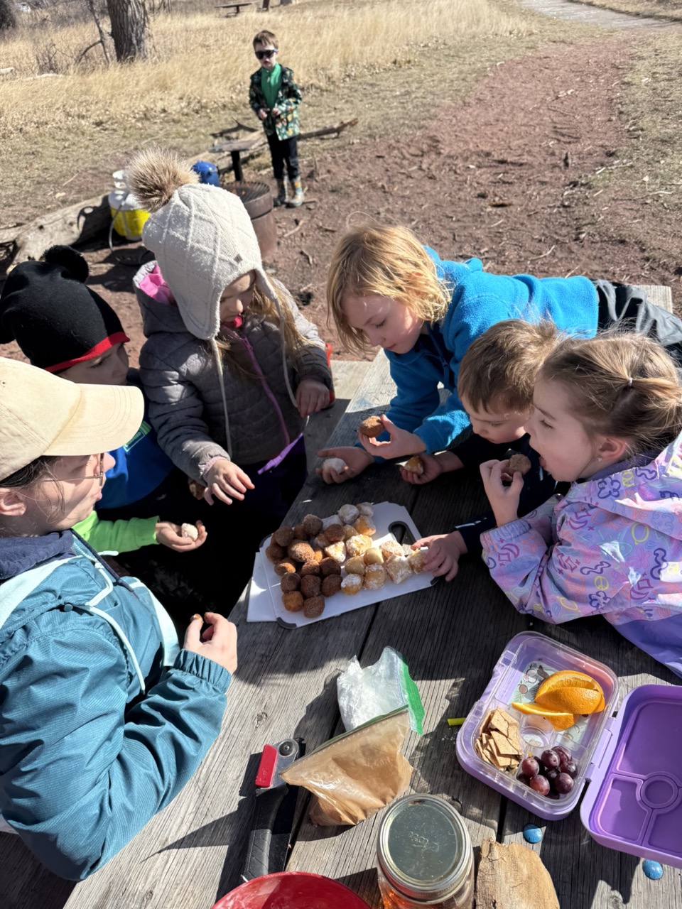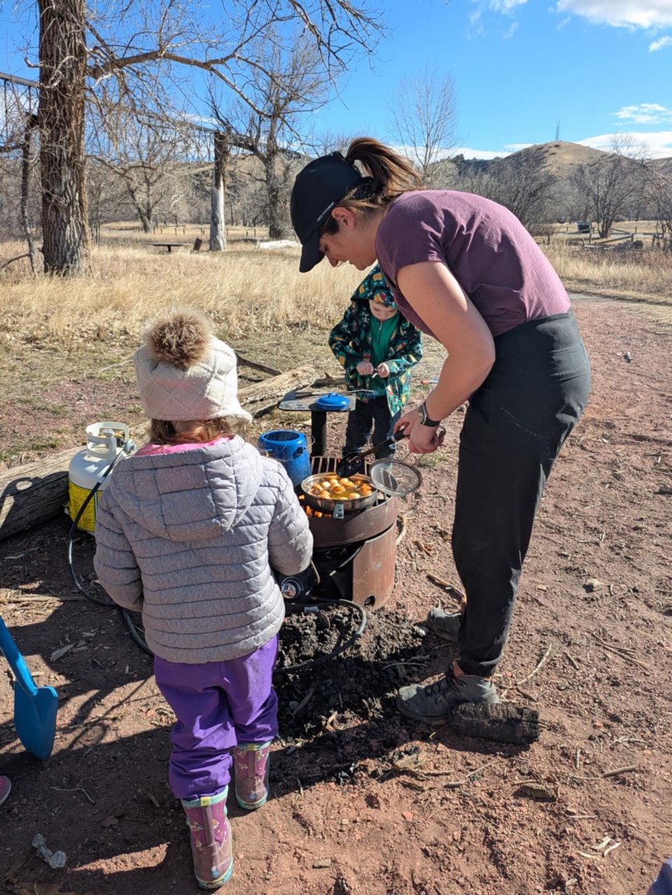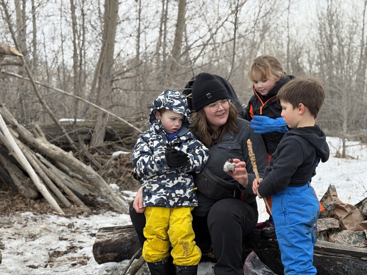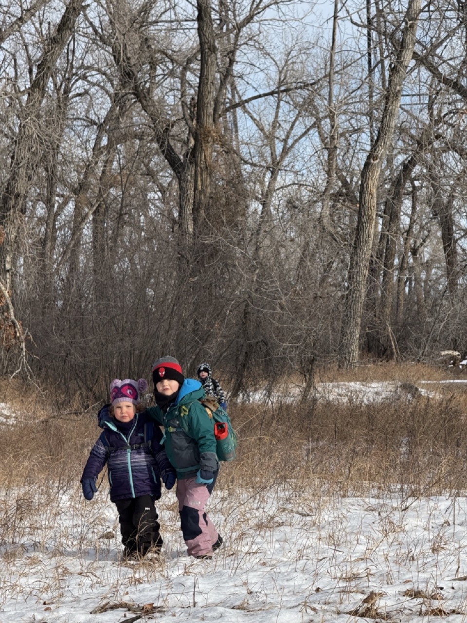We wrapped up the day by making snow ice cream, listening to Nikayla share a story about chickadees and evergreens in winter, and creating pinecone bird feeders to help the birds through the rest of the season. 😊