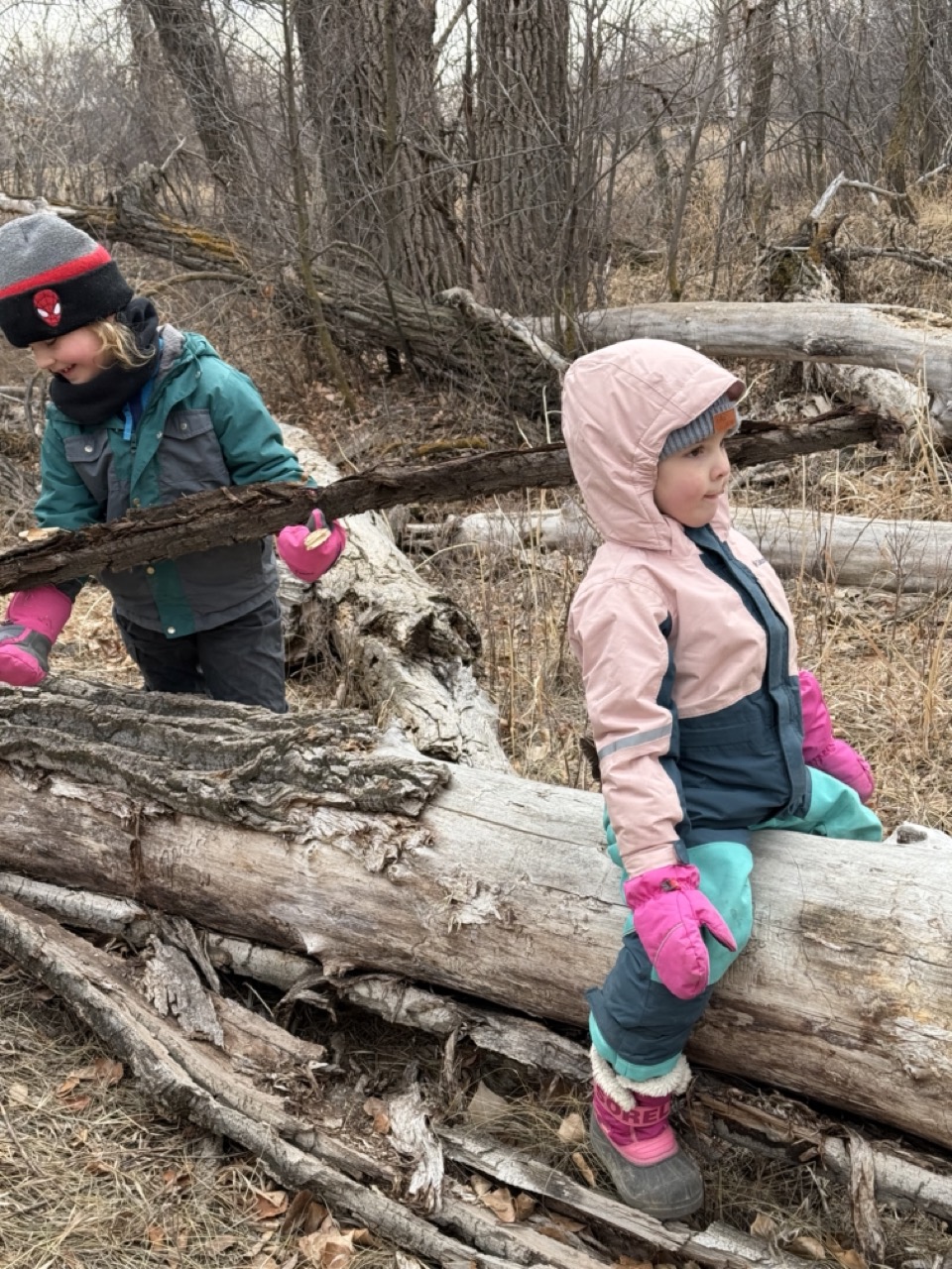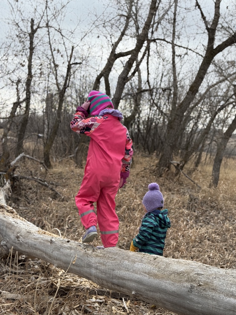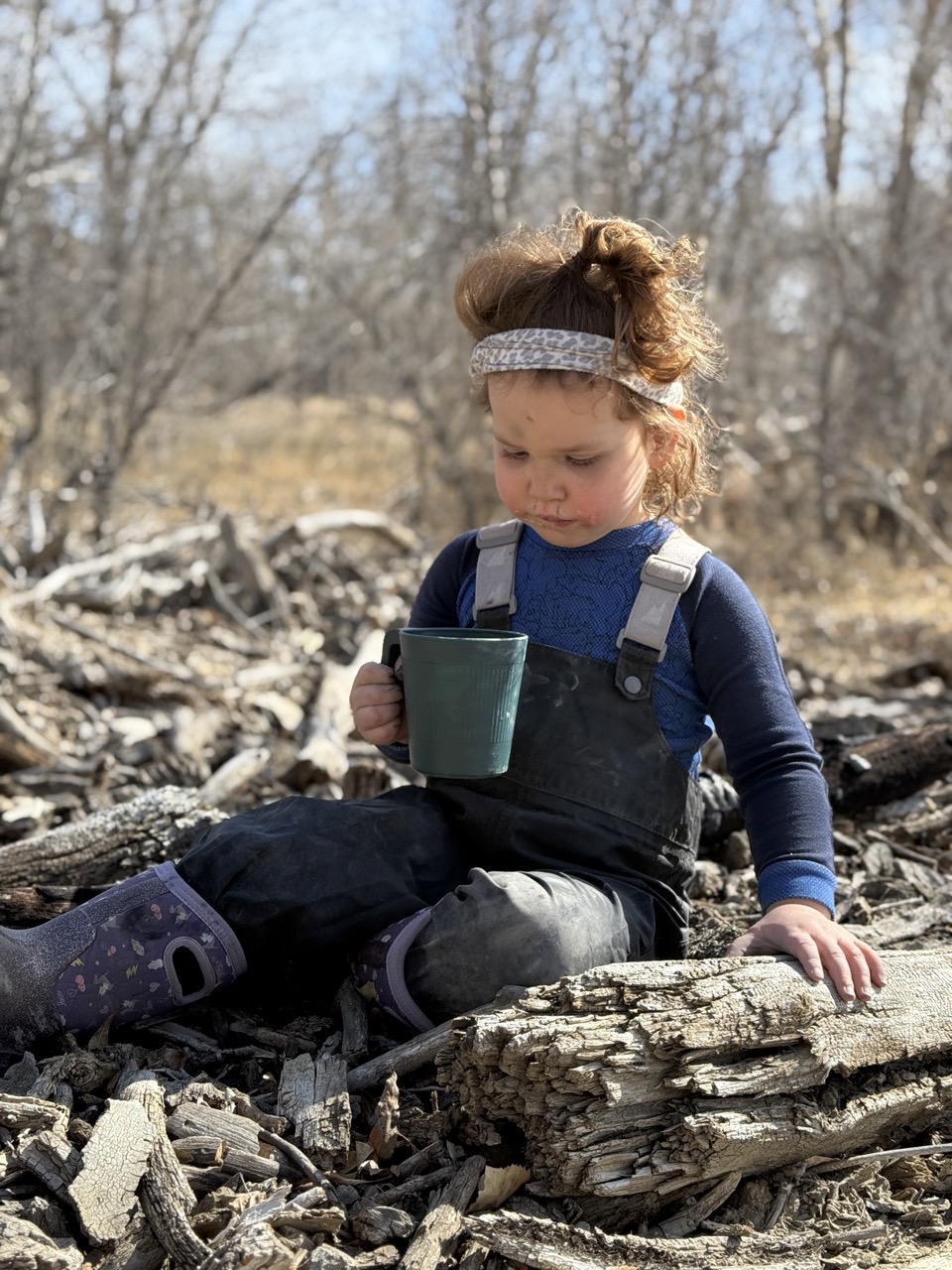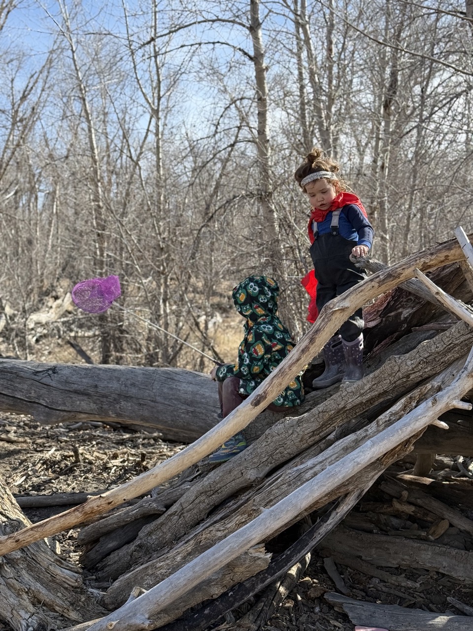 I spoke about this very day at a conference the following weekend, sharing how children engaged in self-directed play are biologically designed to educate themselves through play. At one moment, a couple of girls were snacking while trying to figure out why the moon was in the sky in the middle of the day. Meanwhile, some kids were problem-solving, discussing, and delegating as they worked together to build dens and a playground for their forest friends. Others, wearing capes, were immersed in fantasy play—the highest form of cognitive thinking children engage in! A few more were testing their physical limits and assessing risk as they balanced on a log at different speeds.