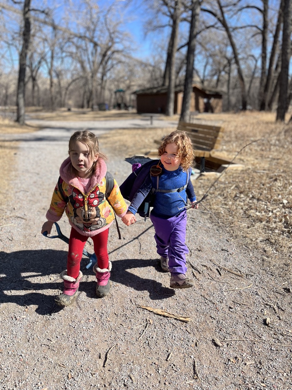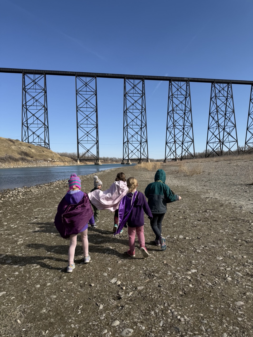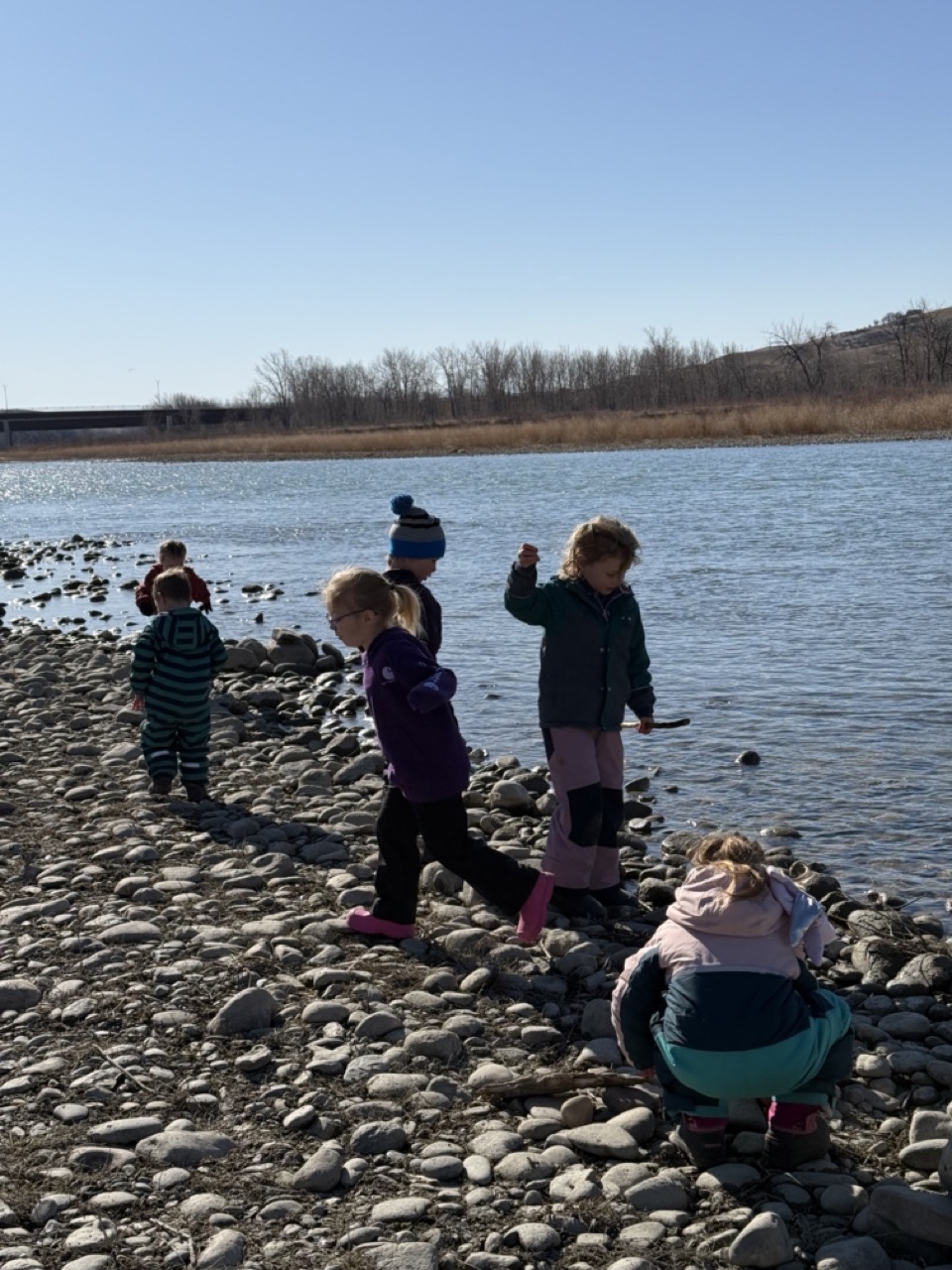 During our adventure walk, we were lucky enough to spot three coyotes across the river! The kids excitedly shouted to warn a man walking nearby with his small dog, as the coyotes were less than 20 feet away. Unfortunately, he didn’t hear us, so we simply wished him and his dog well on the rest of their walk.