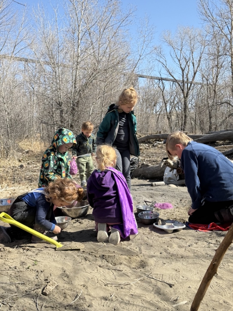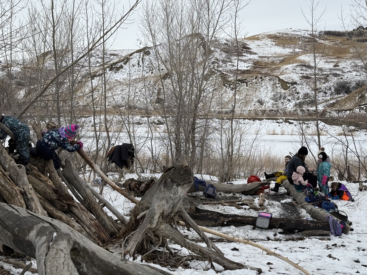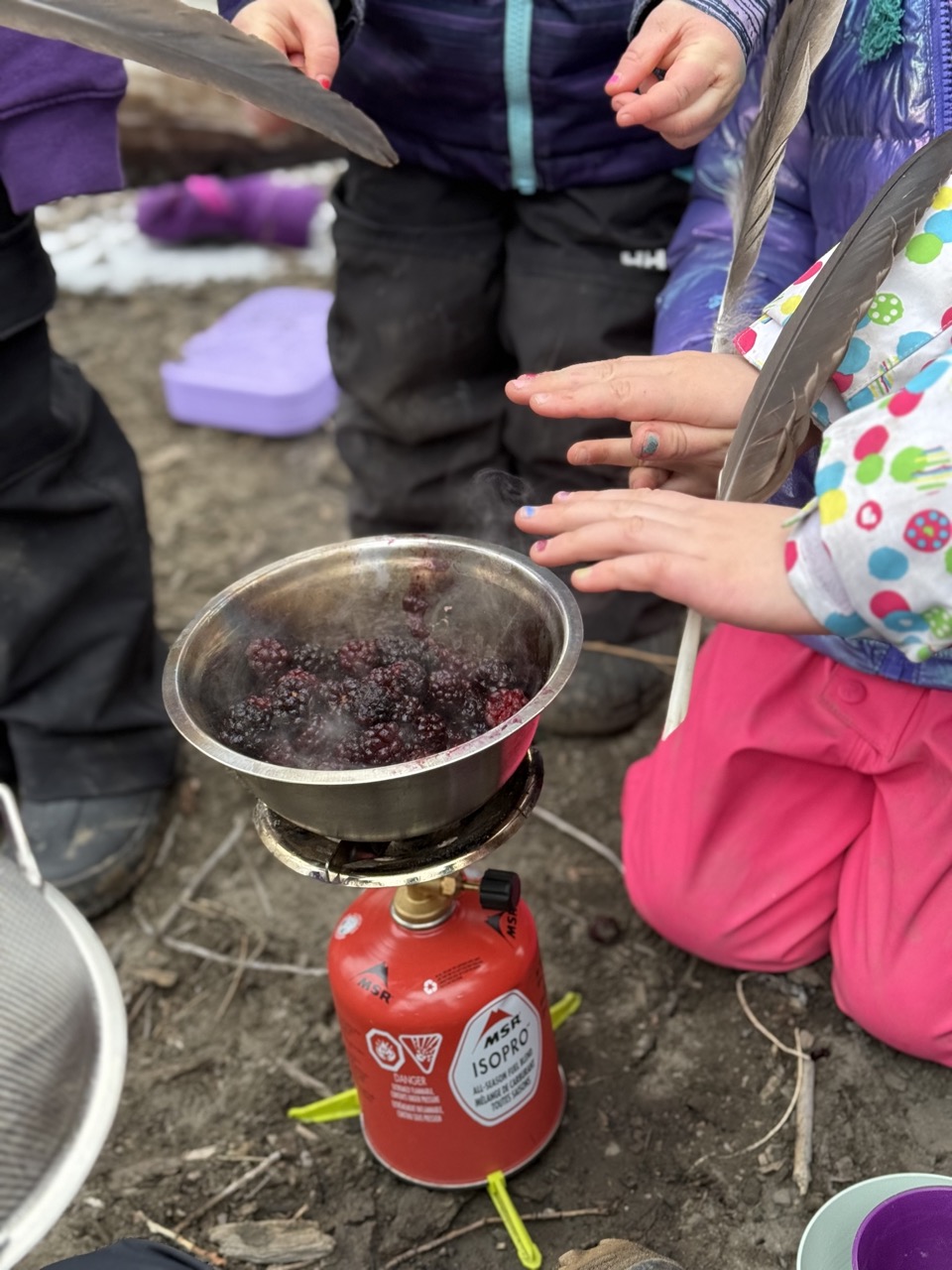Looking for wild edibles in winter isn’t always easy, but these kids were determined! We ended up making a foraged tea using mullein, grass, cambium, wormwood, and spruce.