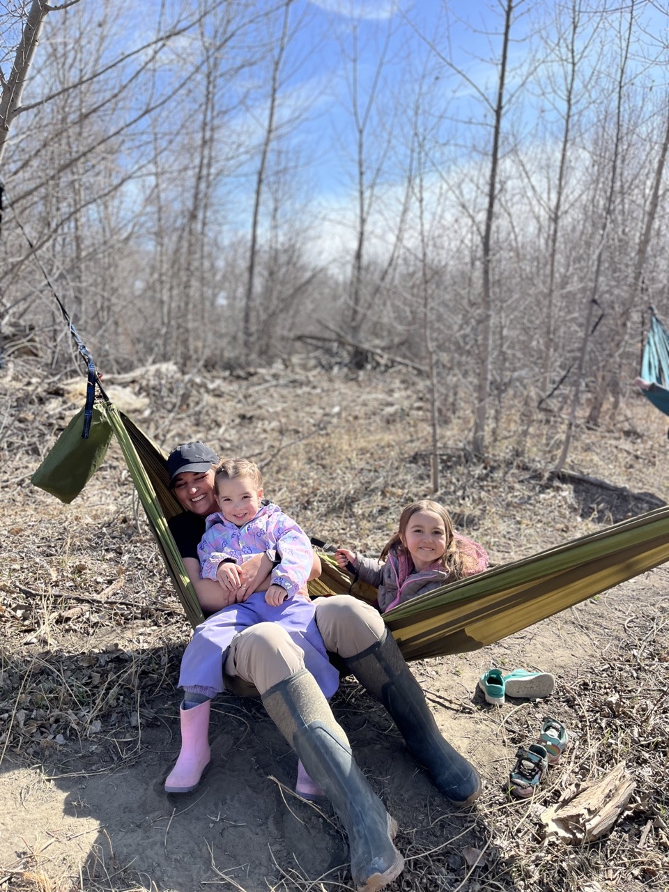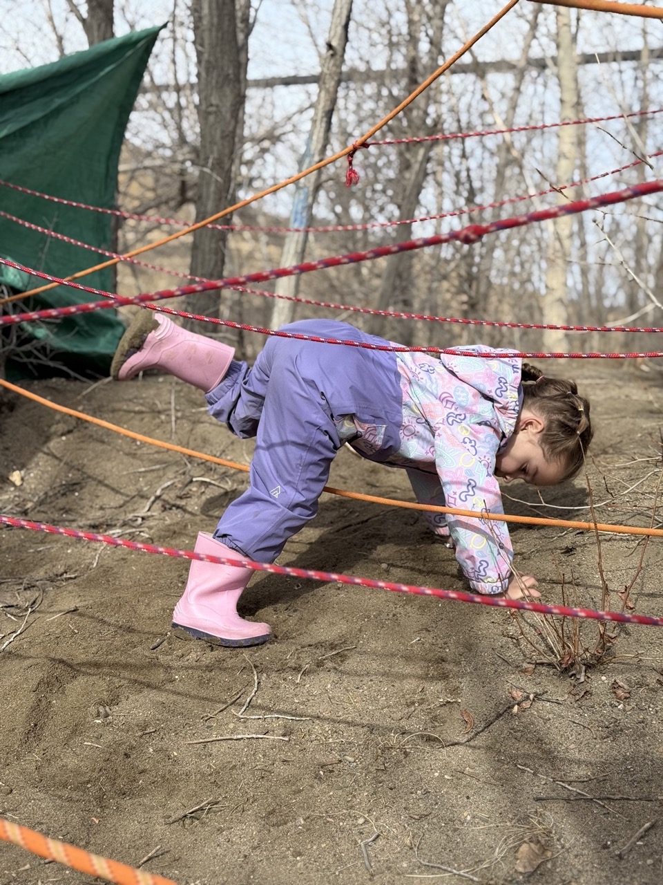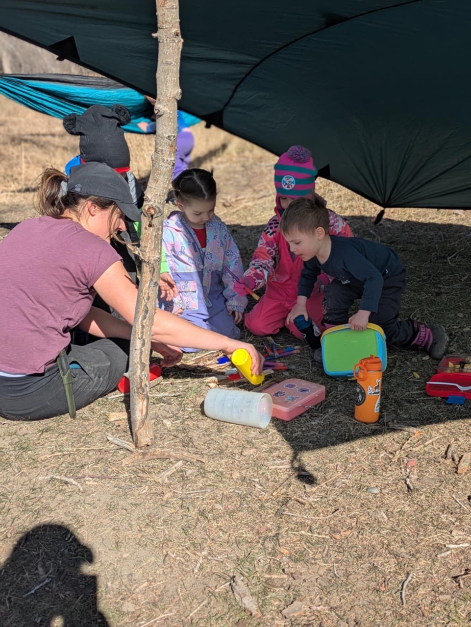 It was a beautiful day ahead, and the kids were eager to get going! With the sounds of geese honking in the background, we settled in for a day filled with adventure—tackling a rope obstacle course, relaxing in hammocks, getting creative in the mud kitchen, playing in the sand, and painting.