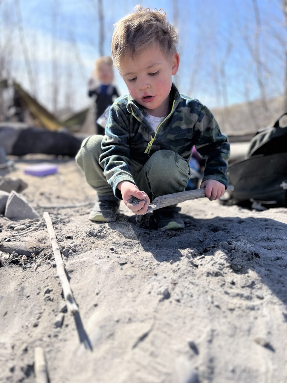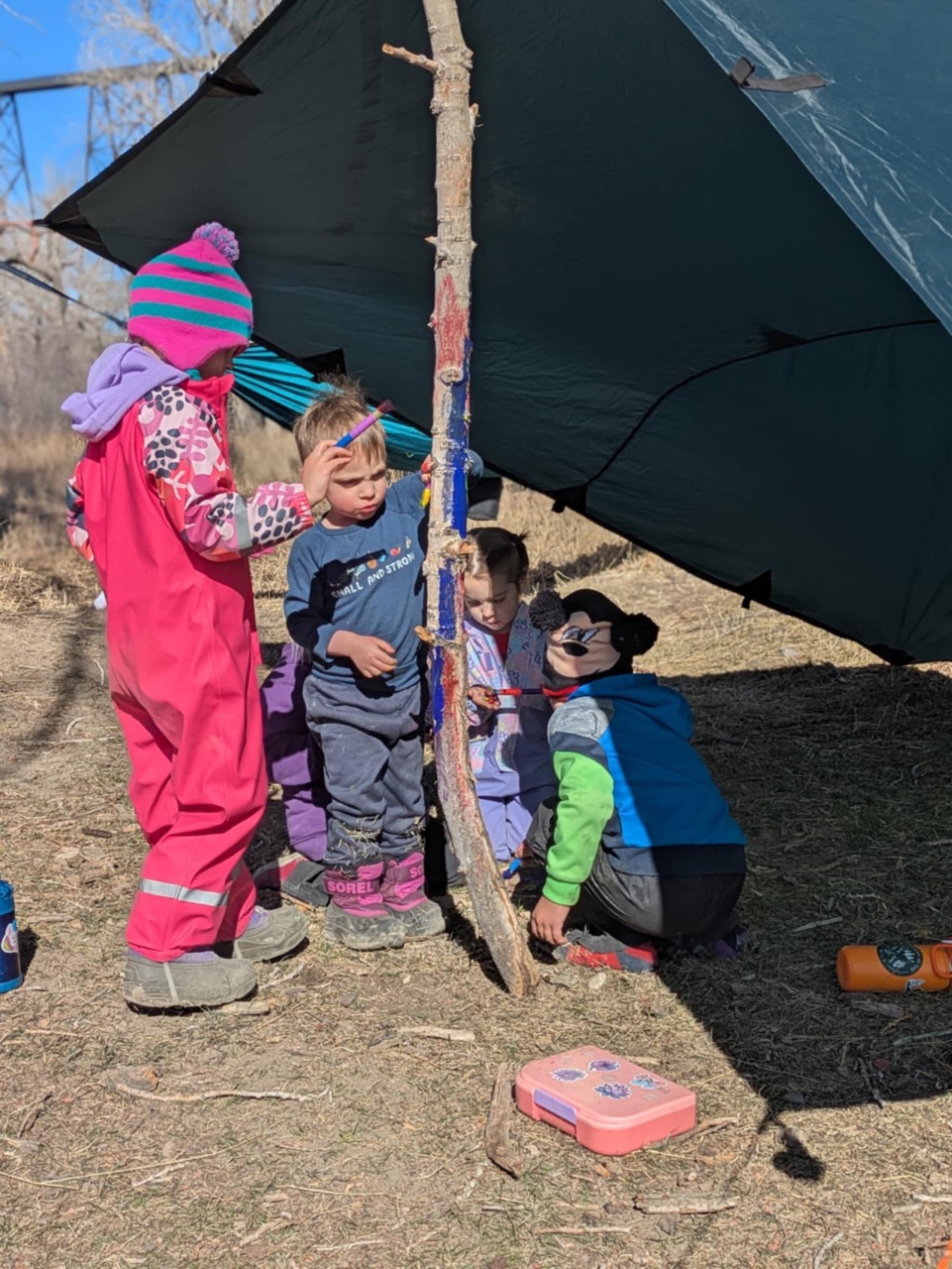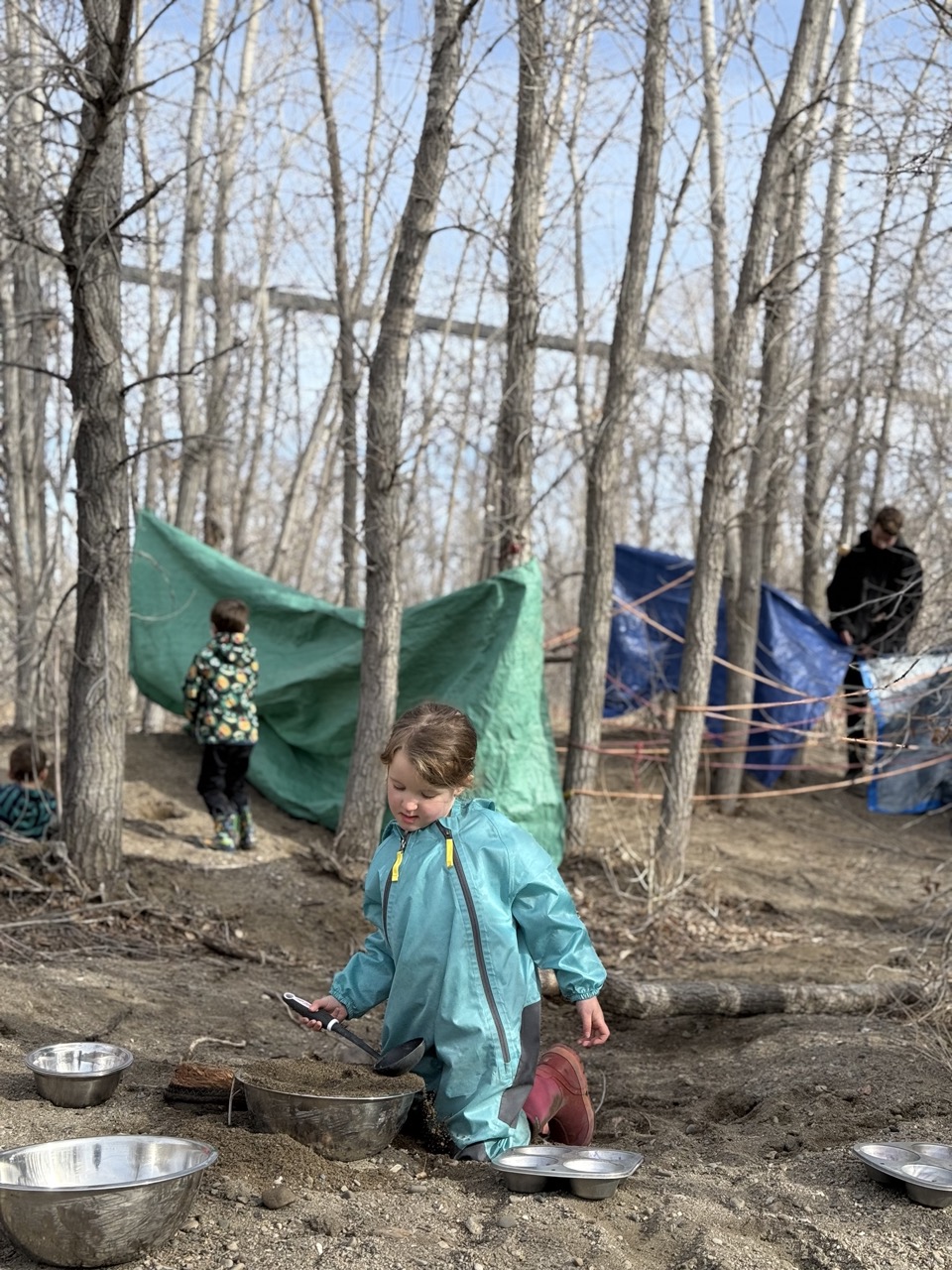 It was a beautiful day ahead, and the kids were eager to get going! With the sounds of geese honking in the background, we settled in for a day filled with adventure—tackling a rope obstacle course, relaxing in hammocks, getting creative in the mud kitchen, playing in the sand, and painting.