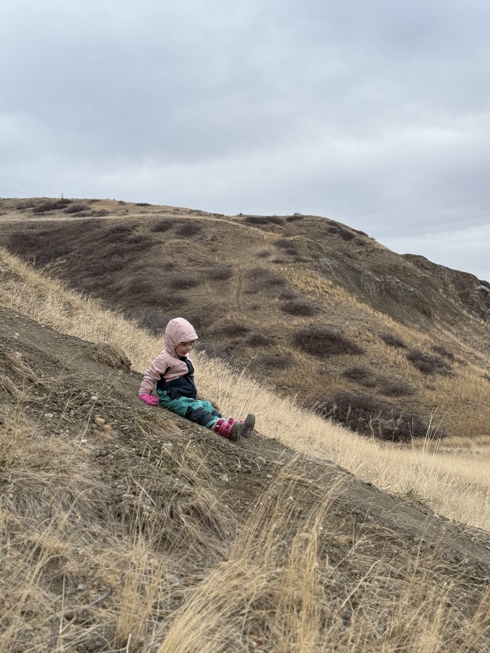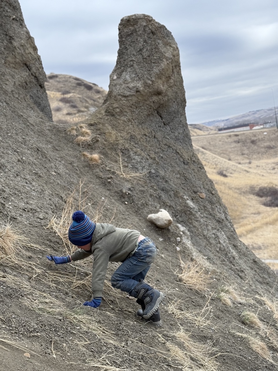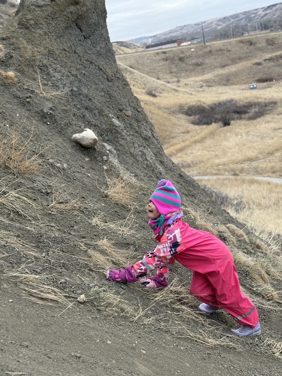 To stay warm, we kept moving all the way to the big hill! There, these wildlings worked their bodies hard—climbing up high, sliding down, and repeating the cycle again and again.