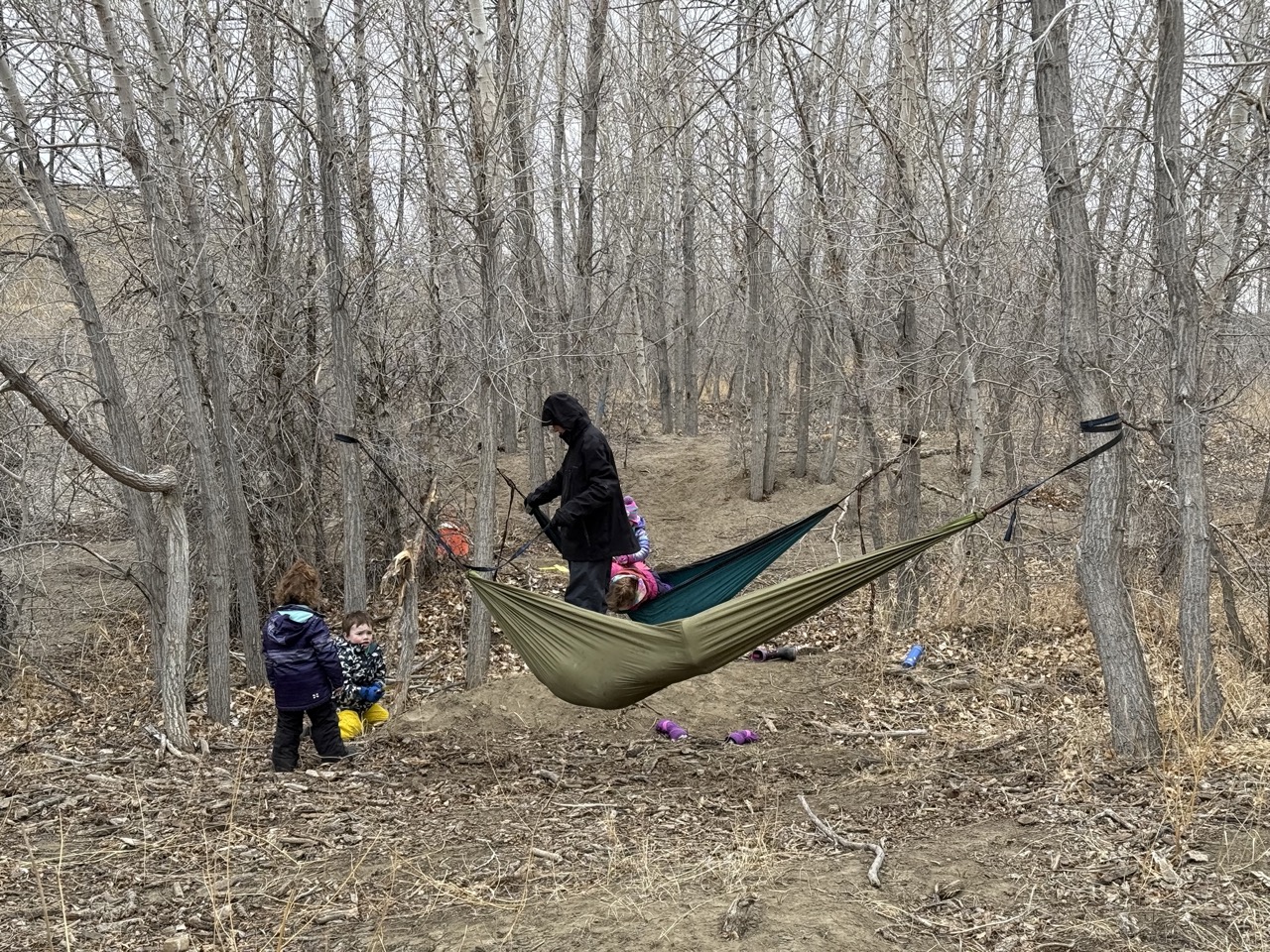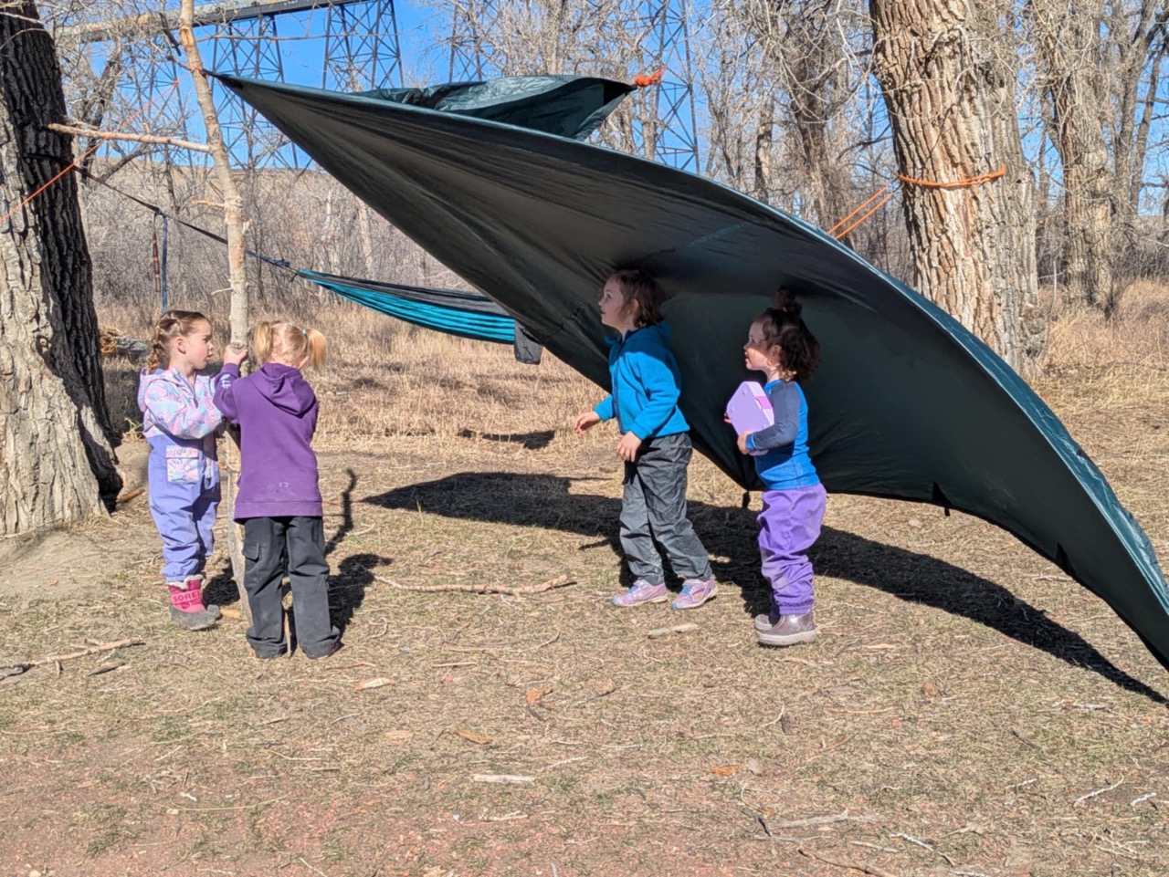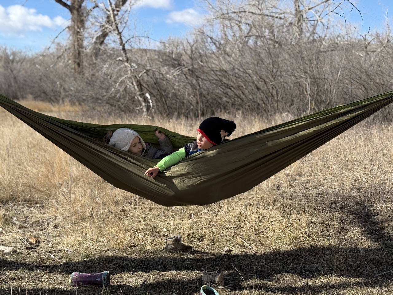We settled in with hot chocolate, snacks, hammocks, and a rope swing before ending the day with an adventure walk. Along the way, some of us even discovered a goose kill site, where we collected feathers to make quills soon!
