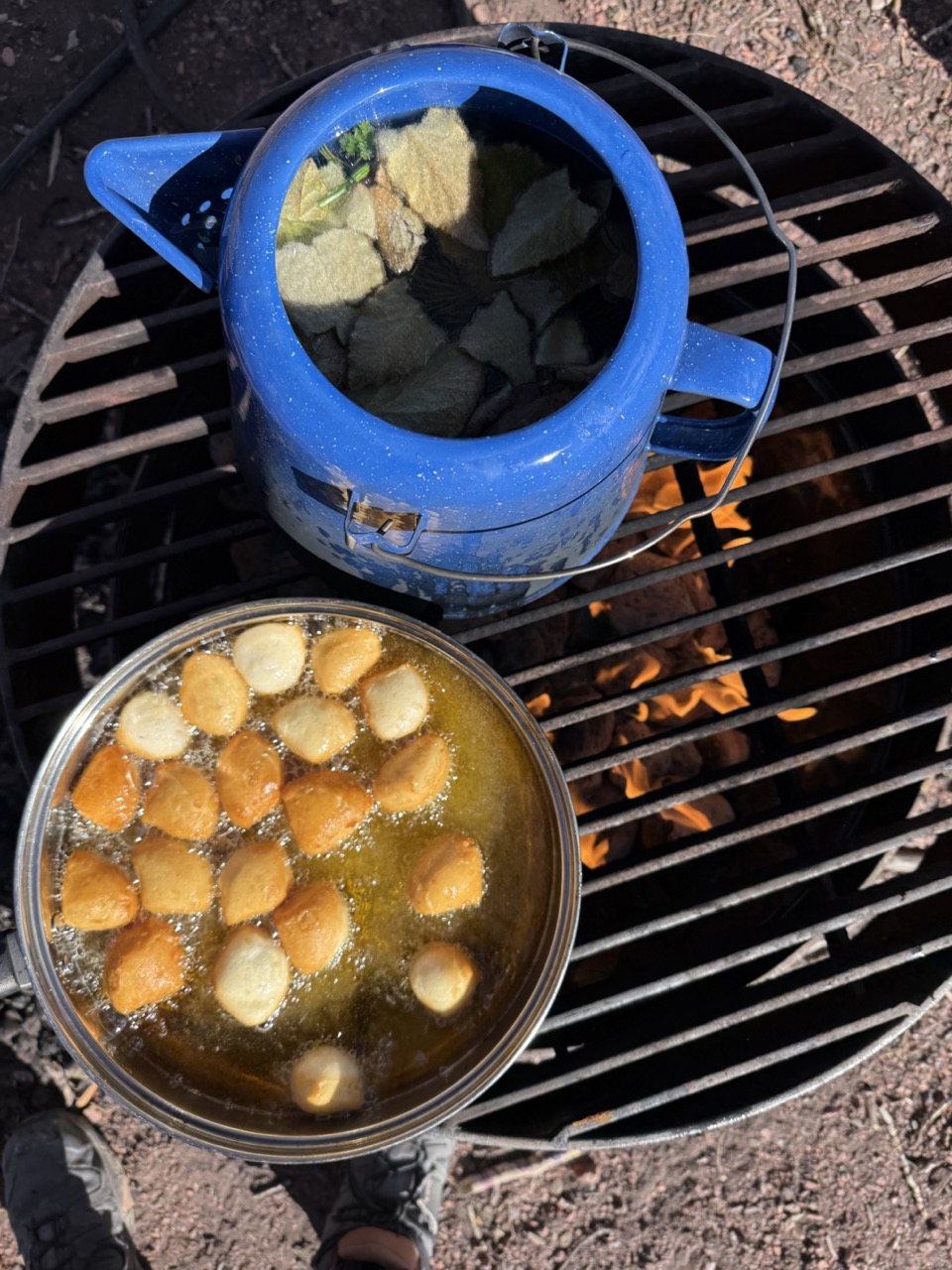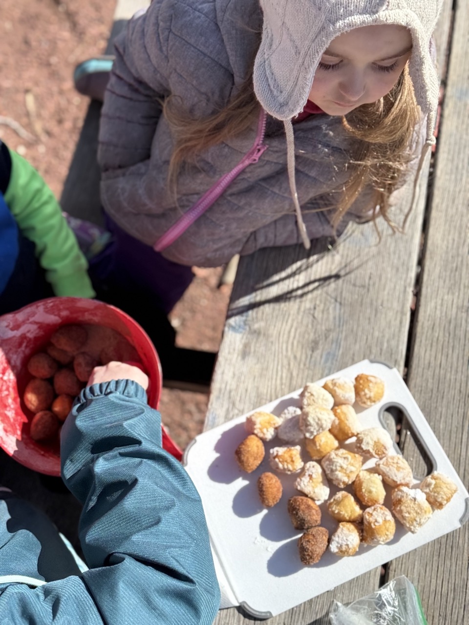 Unfortunately, a fire ban was put in place in the middle of February 👎, but we fired up our propane pit to heat the tea and make donuts!