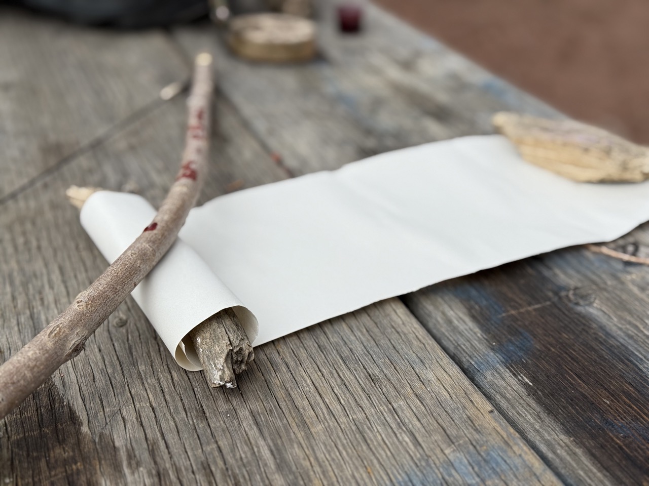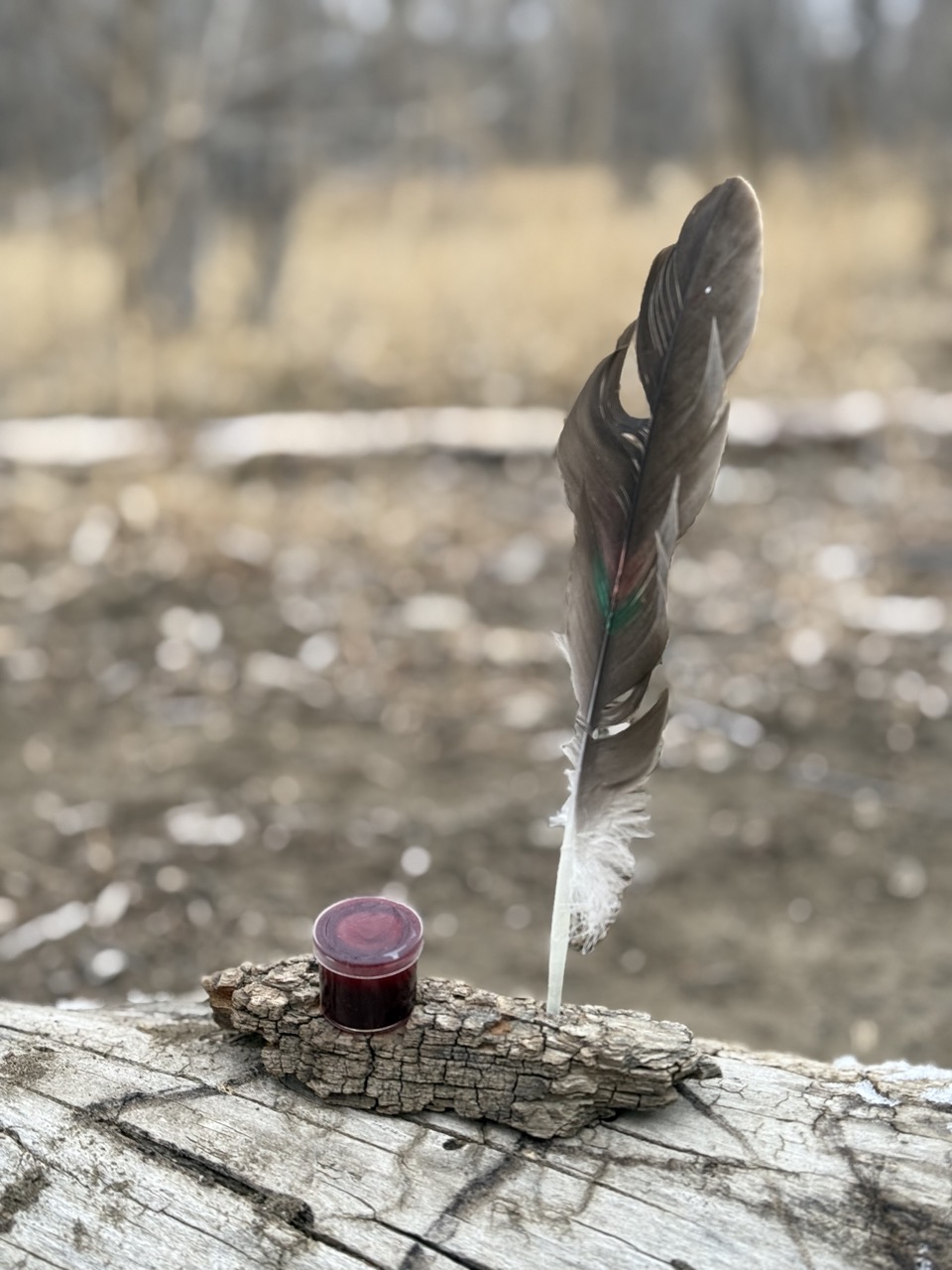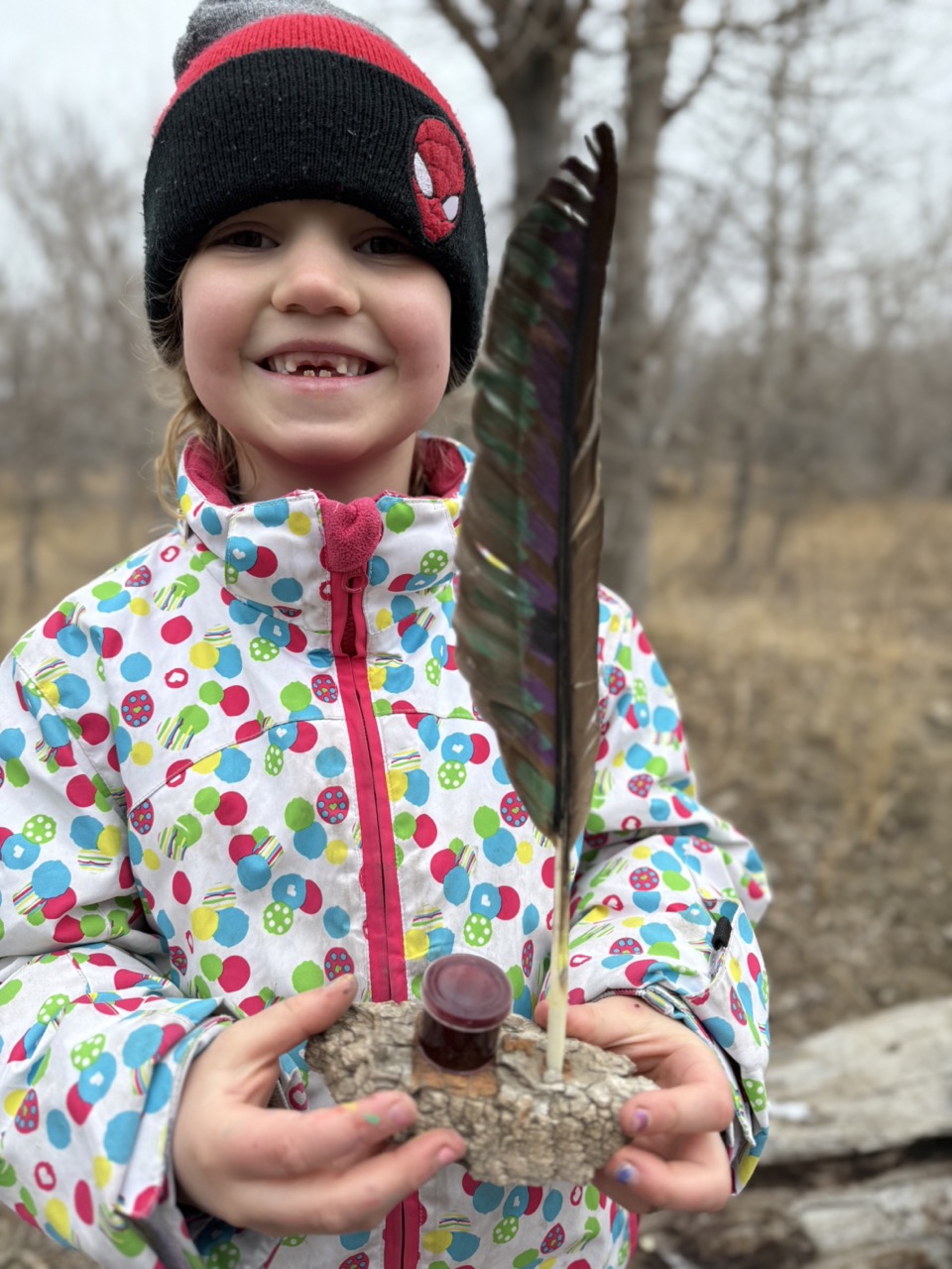 Then we became nature scribes, making our own quills from found goose feathers and ink from blackberries. From there, everyone branched out to follow their own interests—whether it was making bows and arrows, swinging in hammocks, decorating their quills, or sawing dead branches.