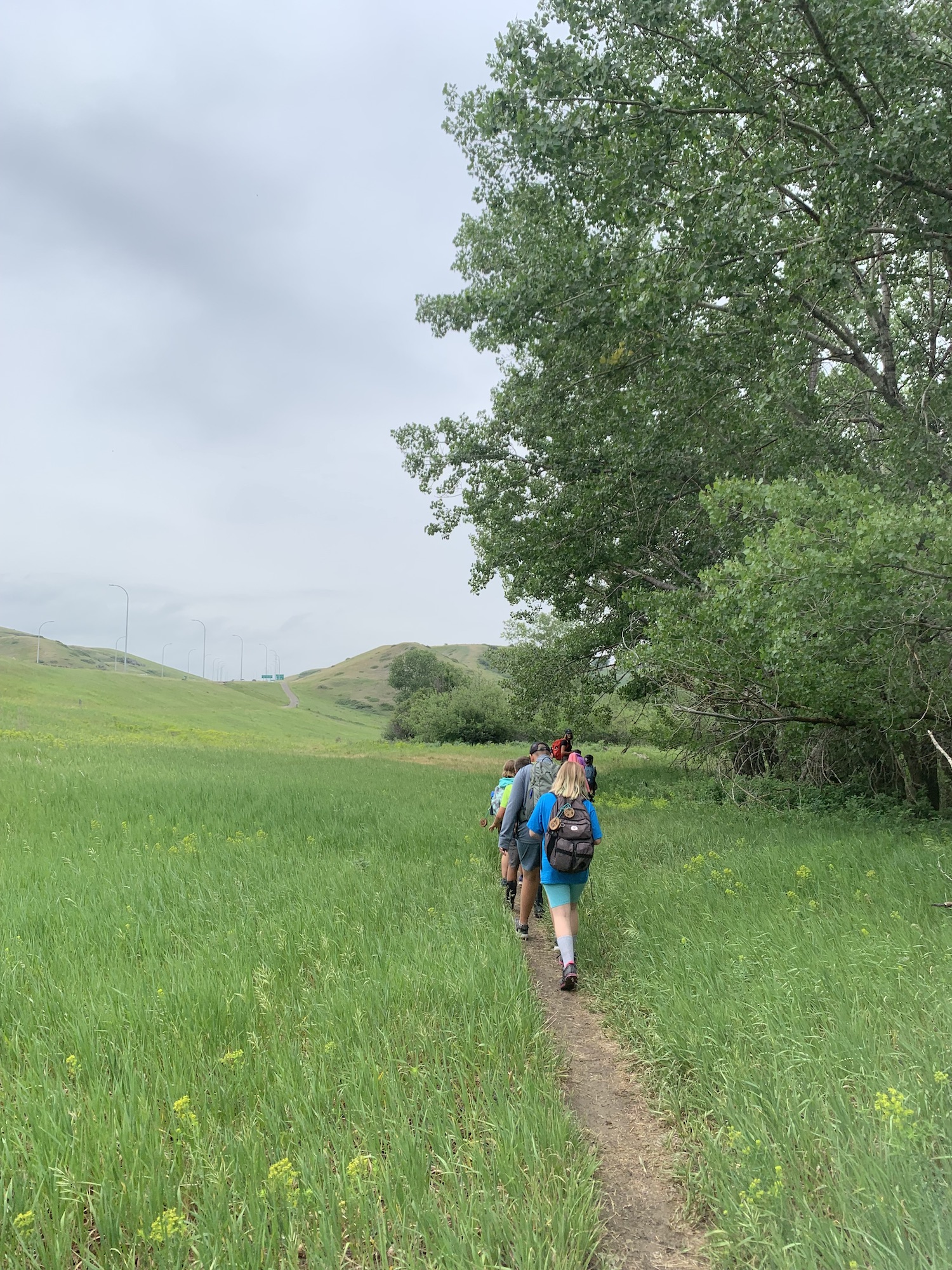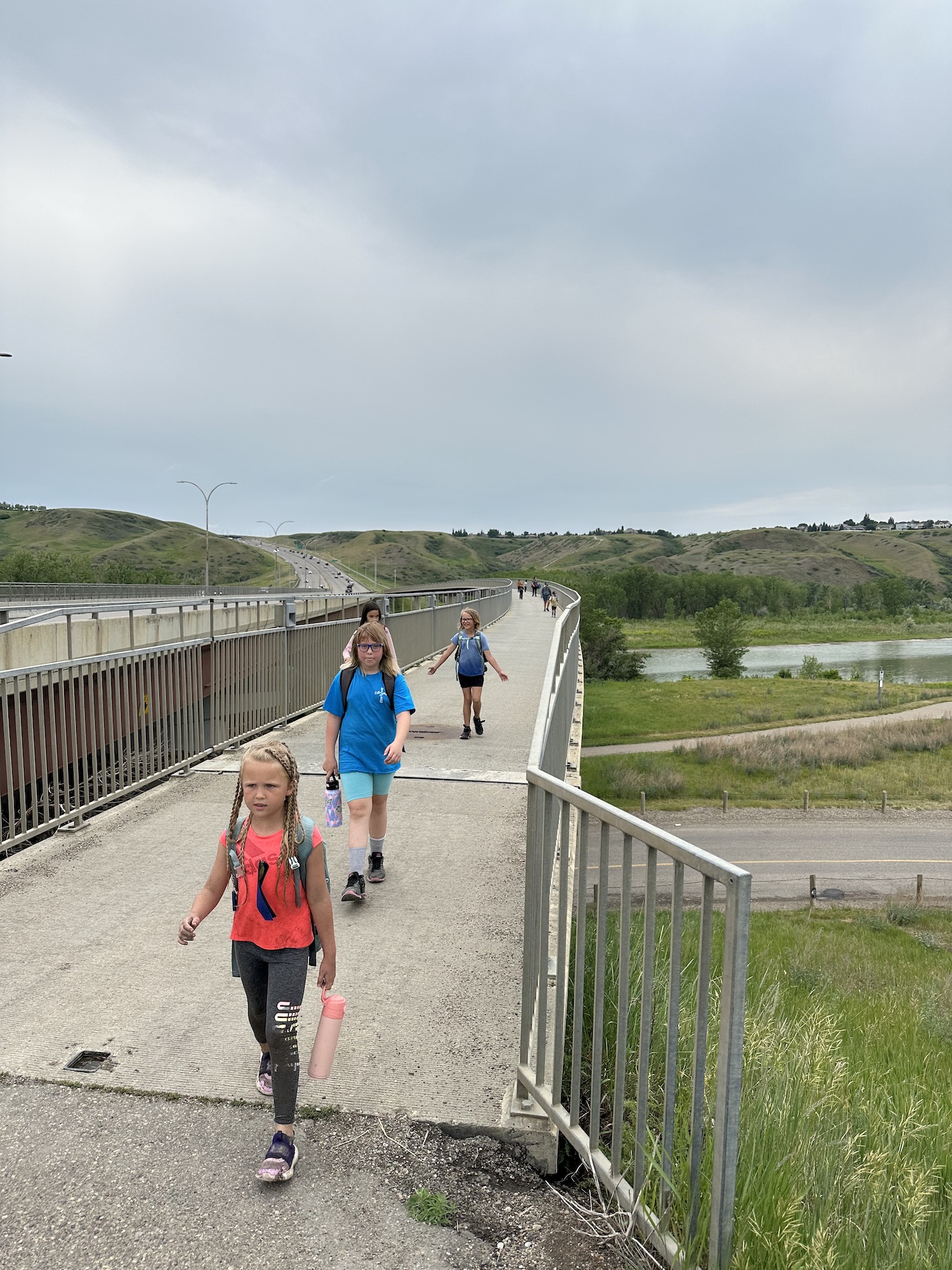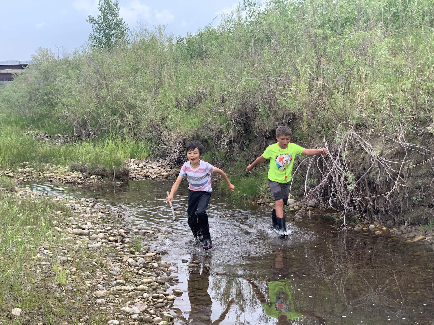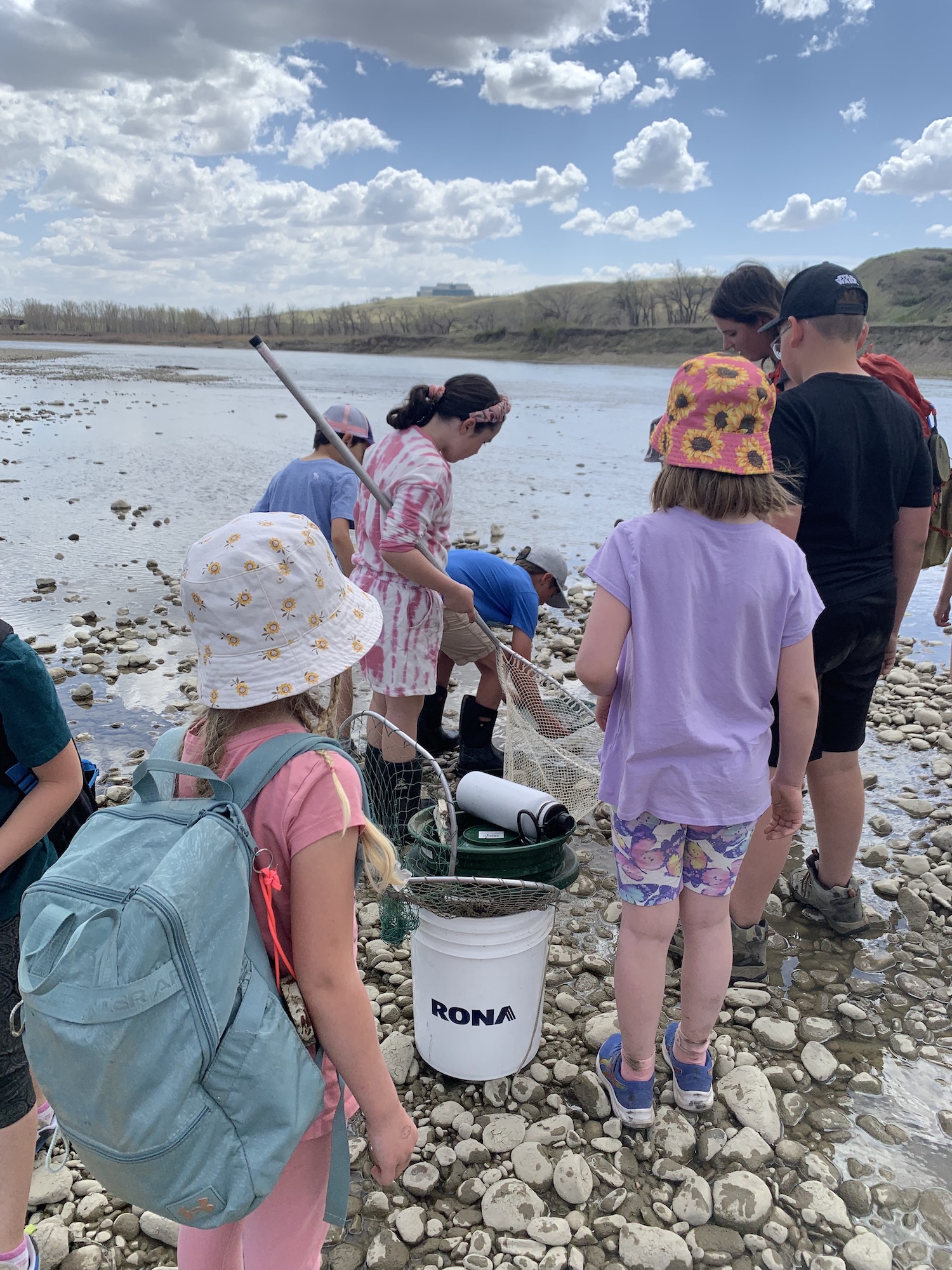 It was a building resilience kind of day, as we fought through some discomfort on our hike, but the destination was well worth it! We went to our favourite place in all of the coulees, where tad poles, minnows, frogs, and beaver dams reside. These wildlings observed tadpoles up close wondering how they turned into the frogs at the other end of the pond. We saw our normal forest school site from a whole new perspective up high on the bridge, and noticed different plants that grew on the other side of the river.