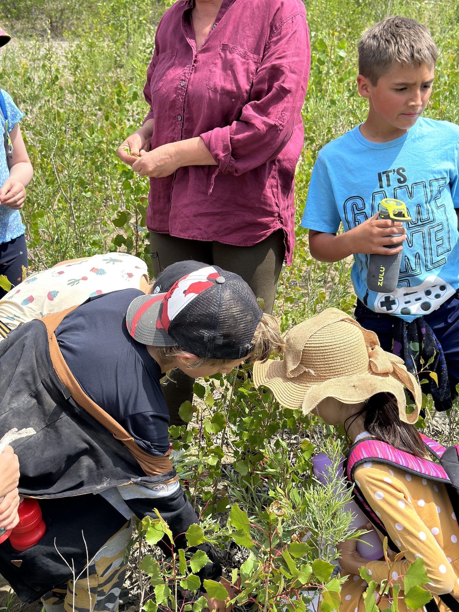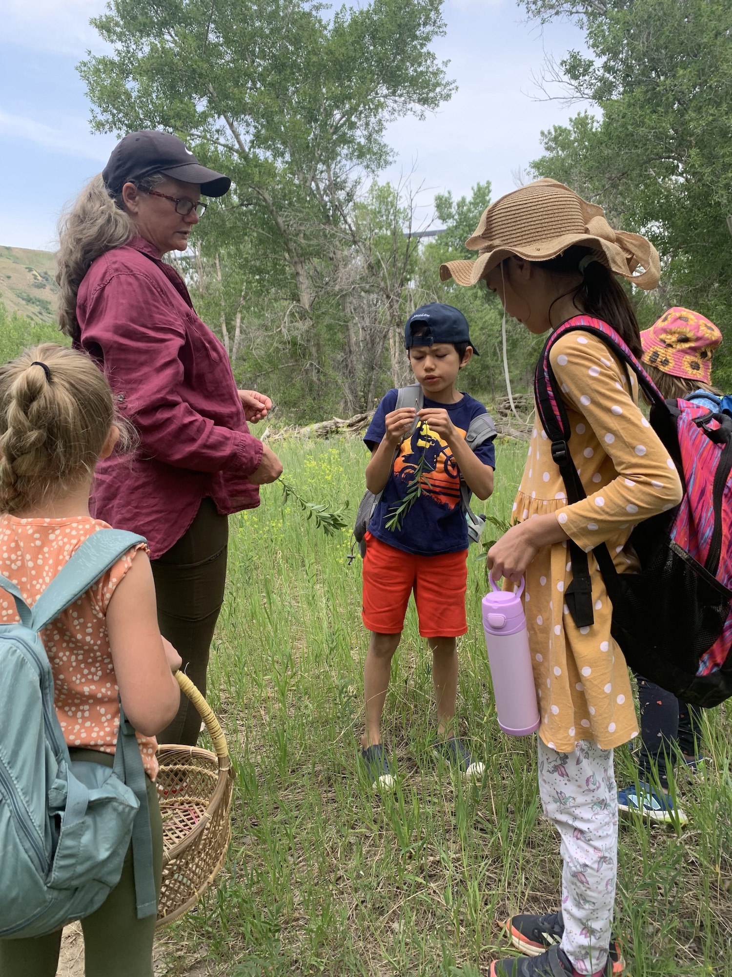Herbologist, Becky Murry, and her awesome teacher husband Larry came to visit us today as we explored the Coulee bottom learning about the different edibles and medicinal plants. We ate wild licorice, plantain, golden rod, thistles… and our most favourite the prickly pear cactus! We made a nature infused lemonade and it was a majority vote that the nature one tasted better than the regular lemonade!