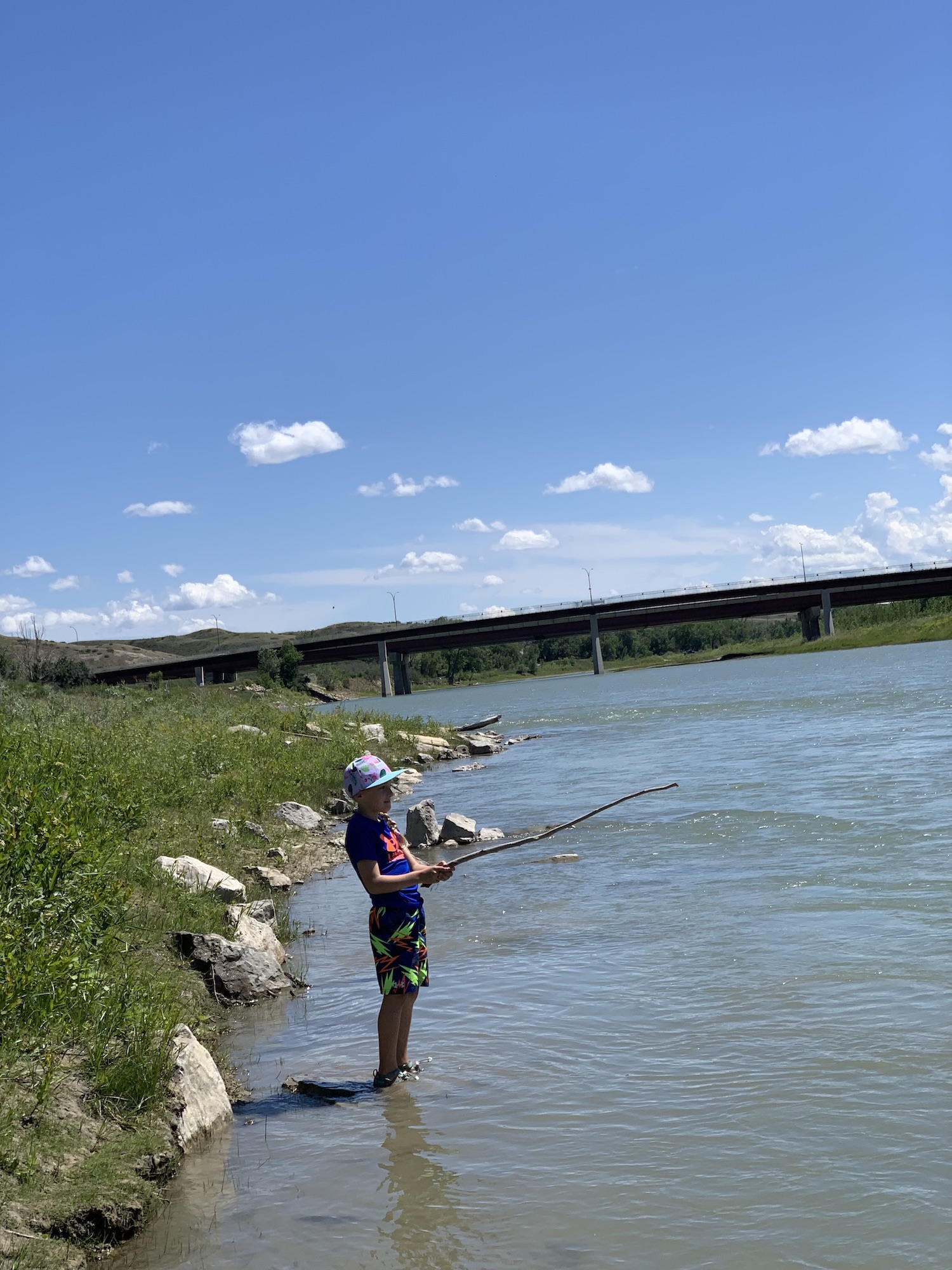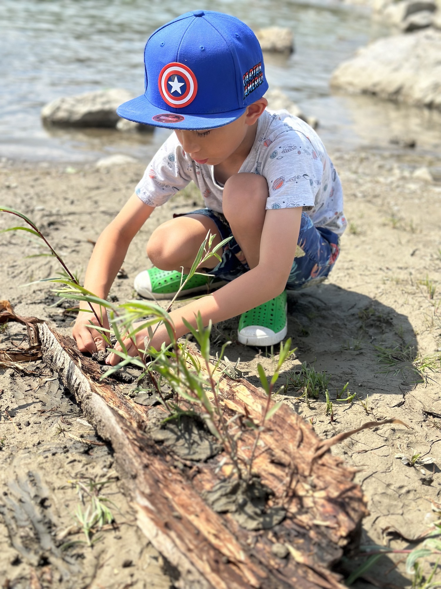 We took to the river to cool down, trying to catch minnows, throwing mud bombs and watching them shatter, getting unstuck from muddy situations, and simply wading in the water. Something about water calms the mind and body.