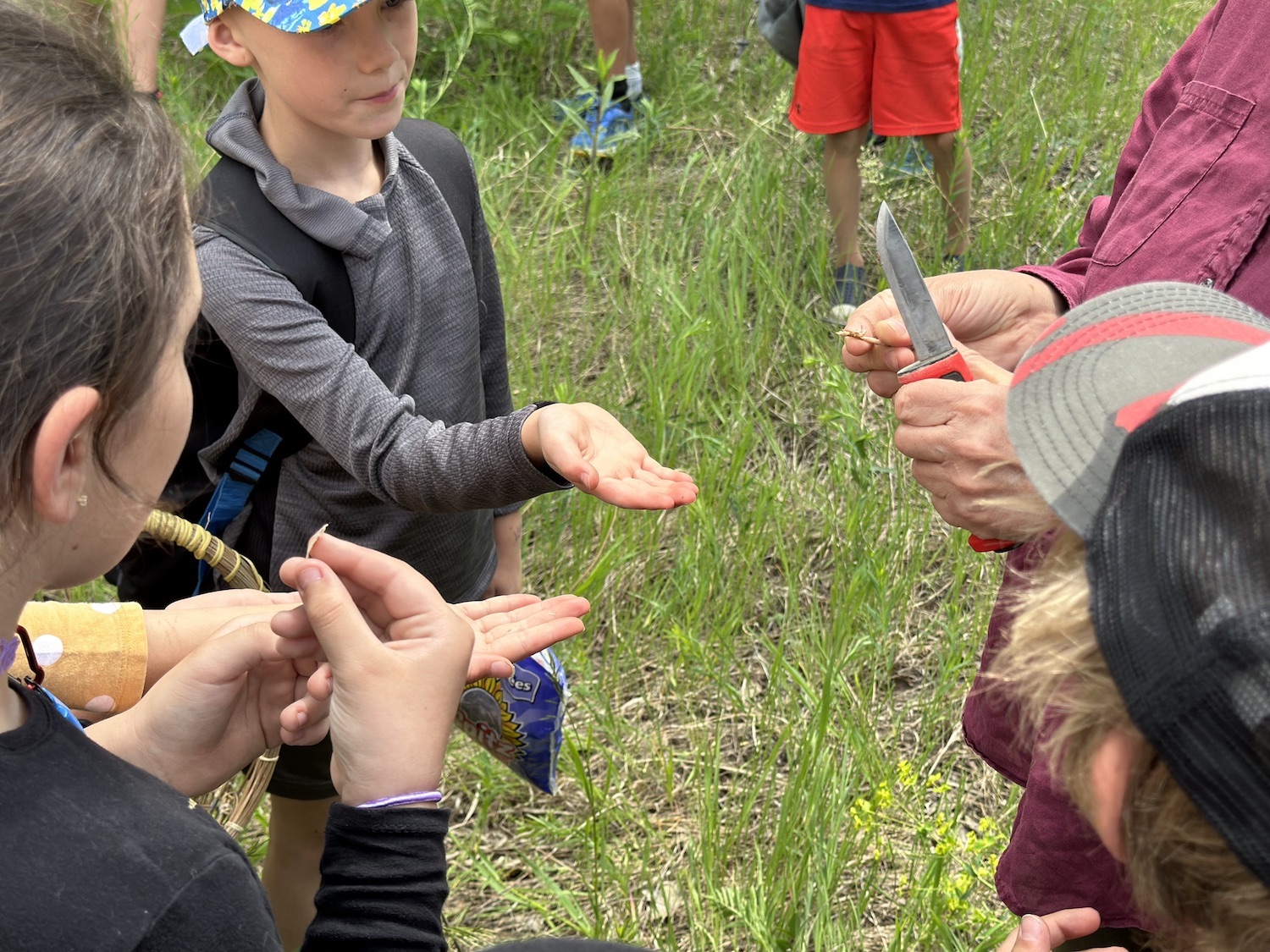While we went over knife safety and skills, only a handful actually stayed to whittle due to the heat, others headed back to cool by the river.