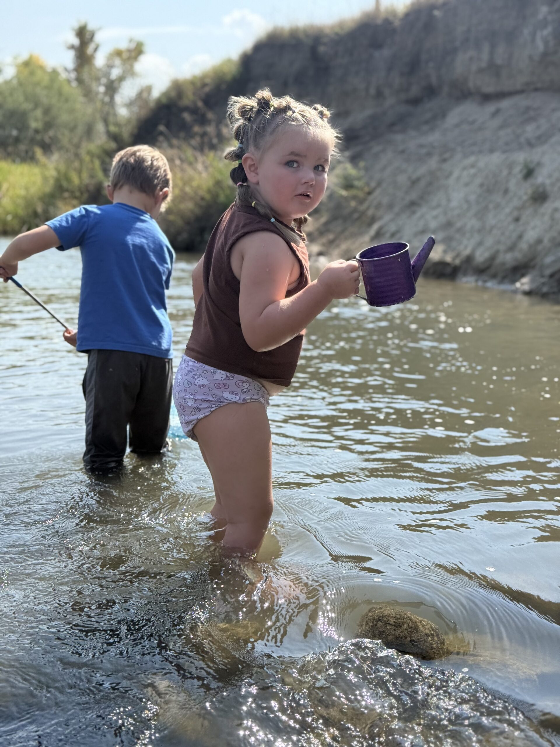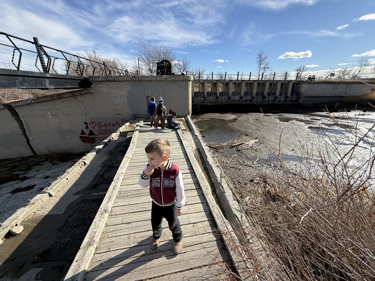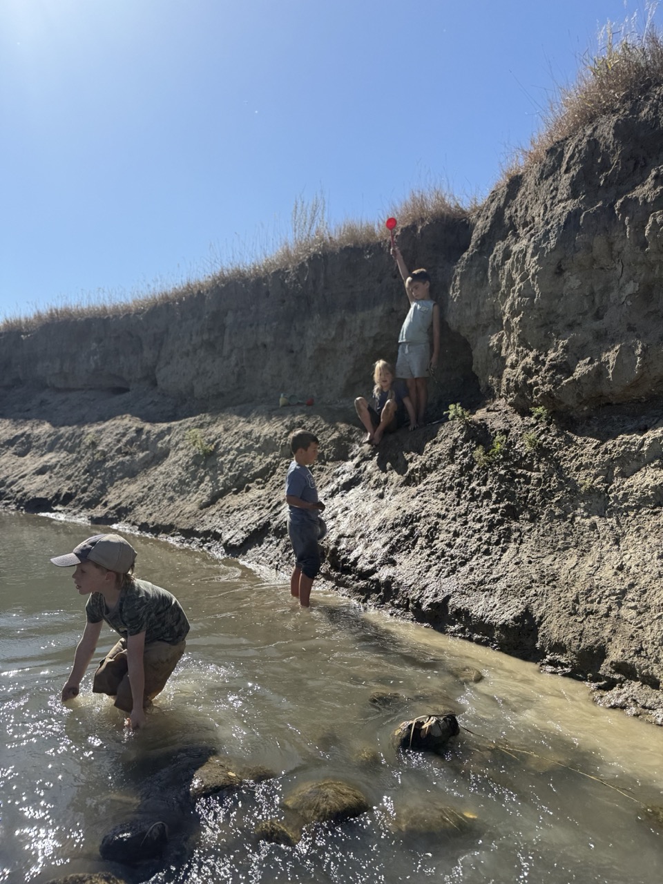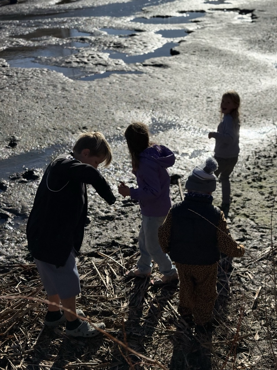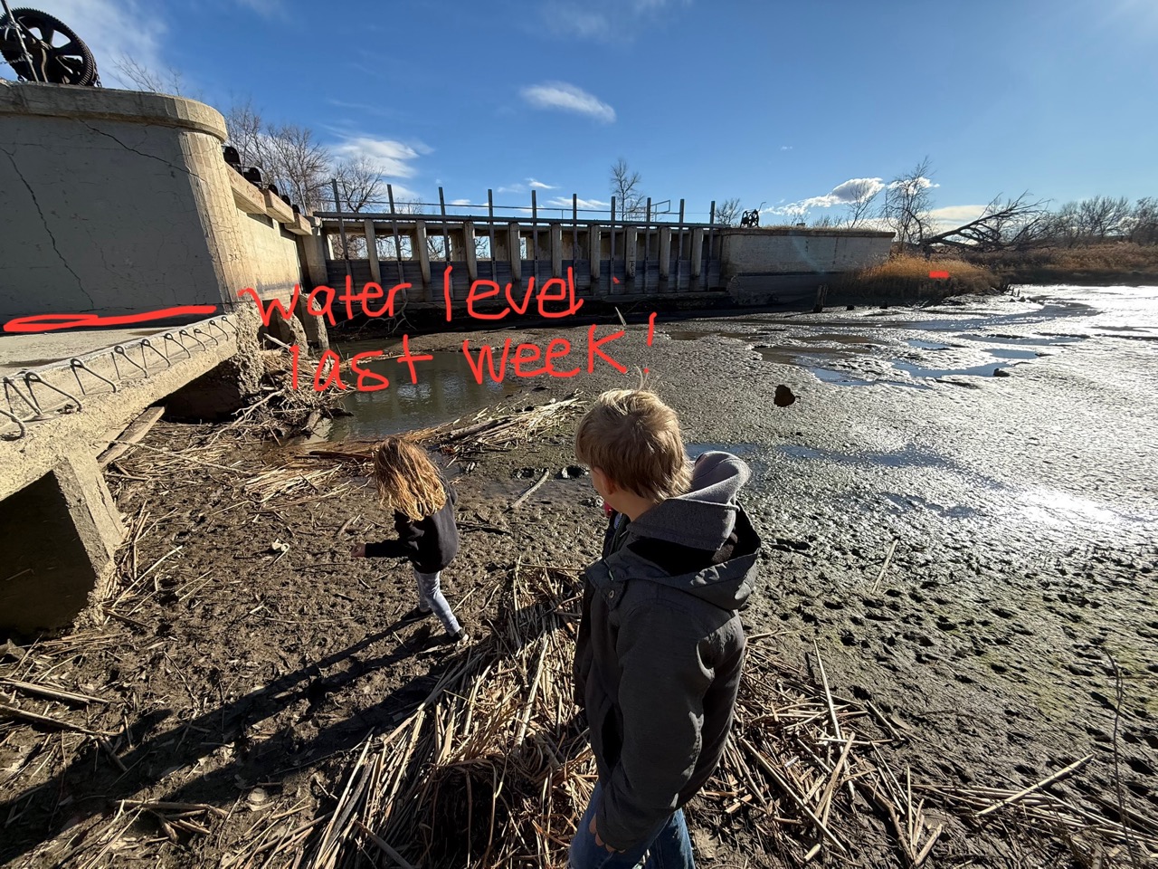 After last week’s insanely high river levels, we were curious to see what the river was doing today. We weren’t disappointed! Behind the dam, the water had dropped about 5 to 7 feet, revealing a muddy playground that was perfect for exploring and getting stuck in. It turned into a hilarious adventure.