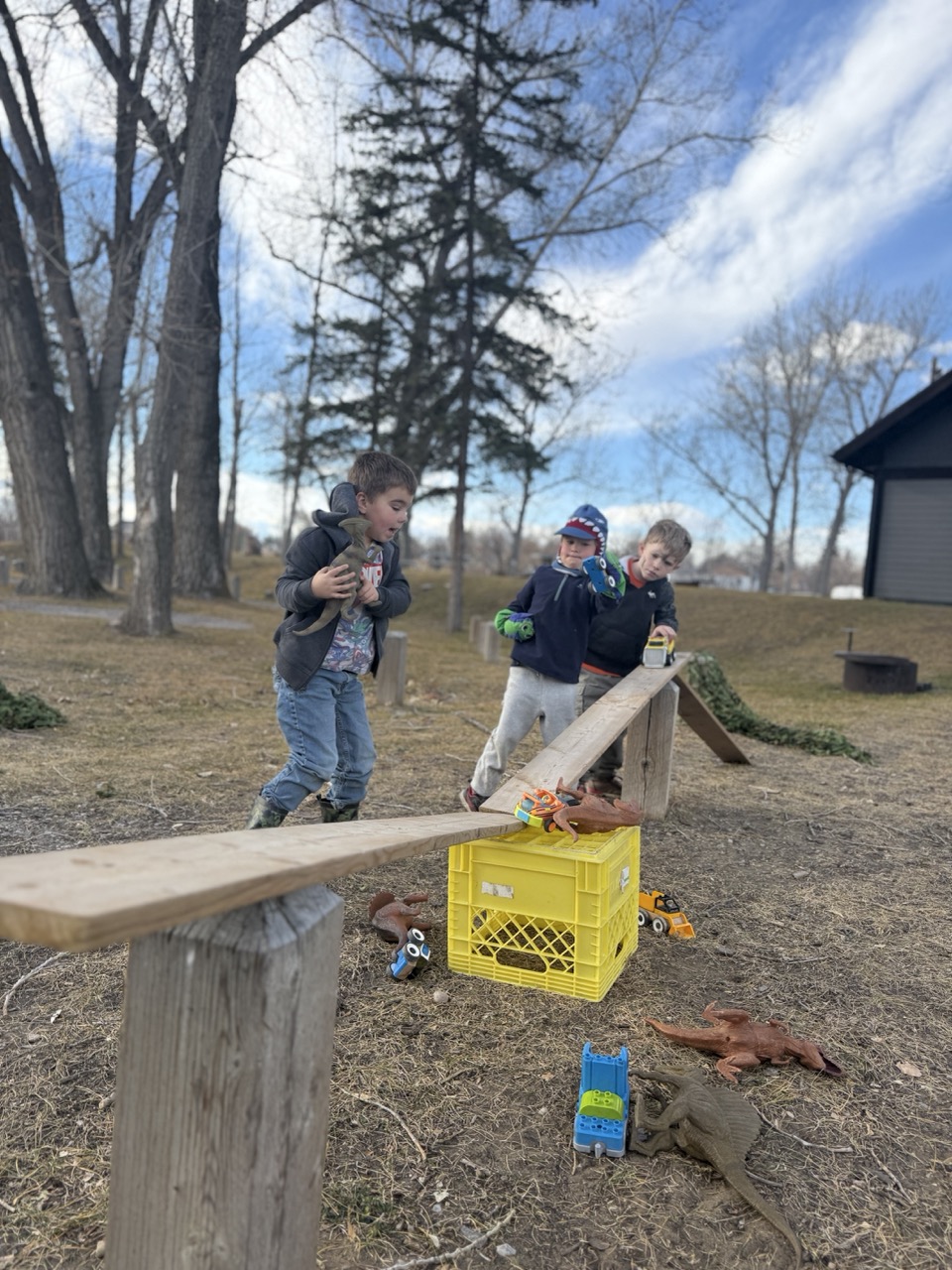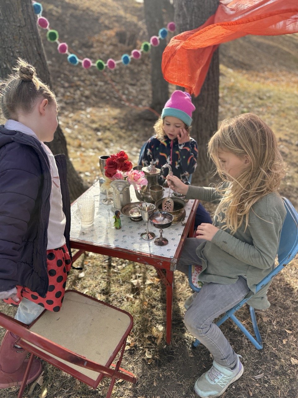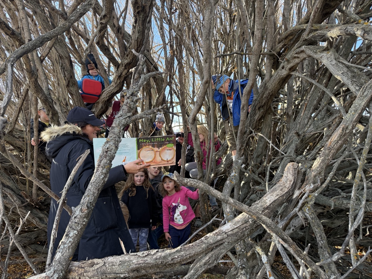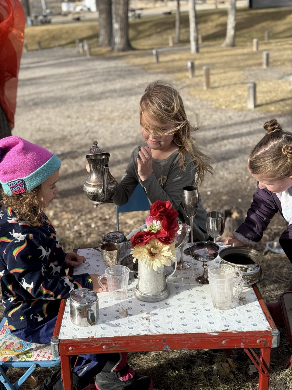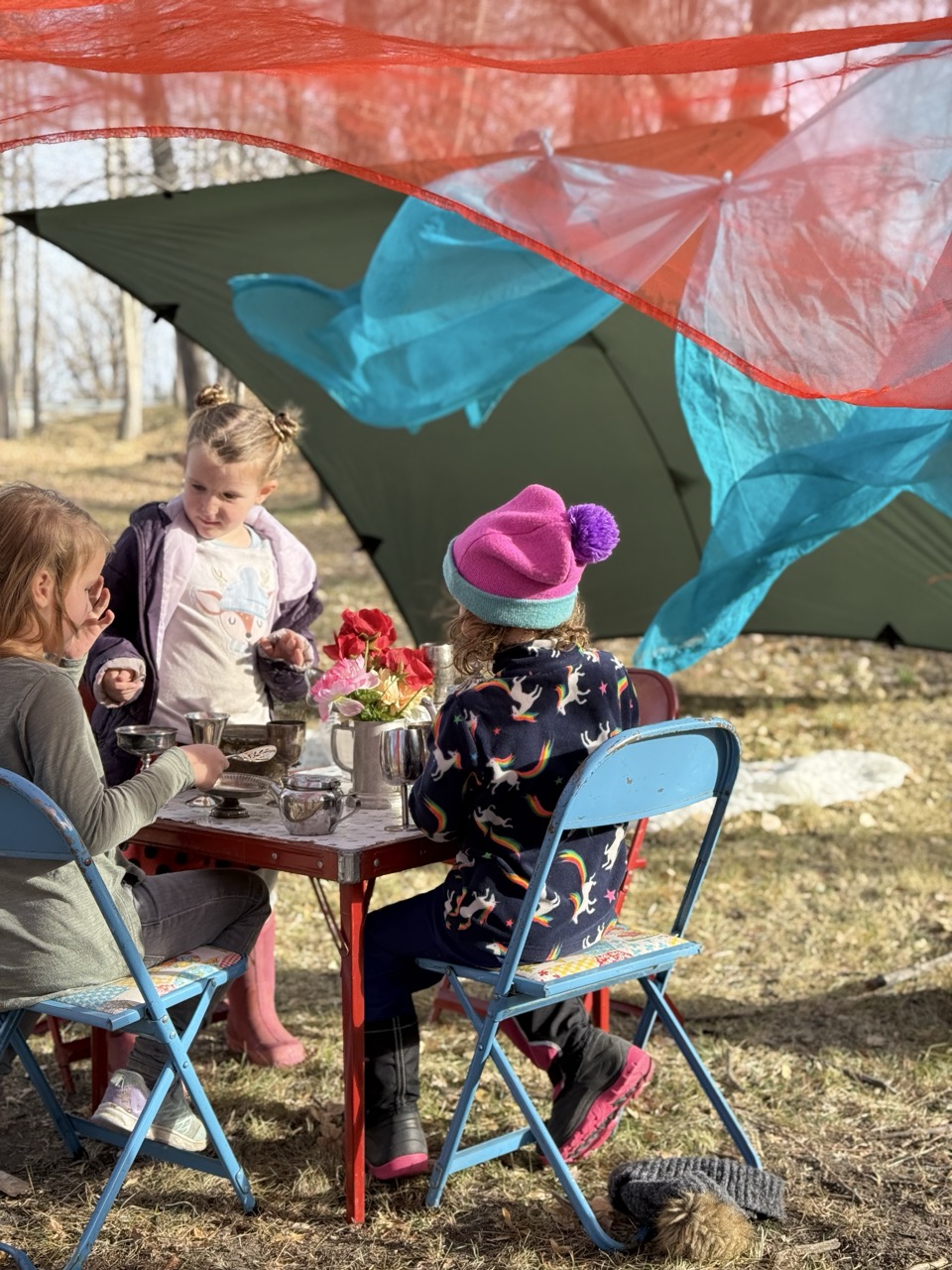 The kids were also excited to revisit our “jungle tree,” spending much of the day perfecting their rooms in it and relaxing on the branches while being read to. We wrapped up the day with a fun game and a story about a lake, a fishing village, Indigenous people, and a bear. It is a true story, ask your wildlings if they remember it and can tell it to you.