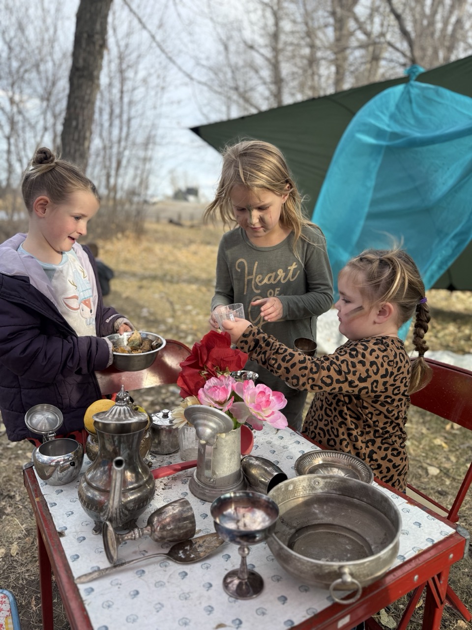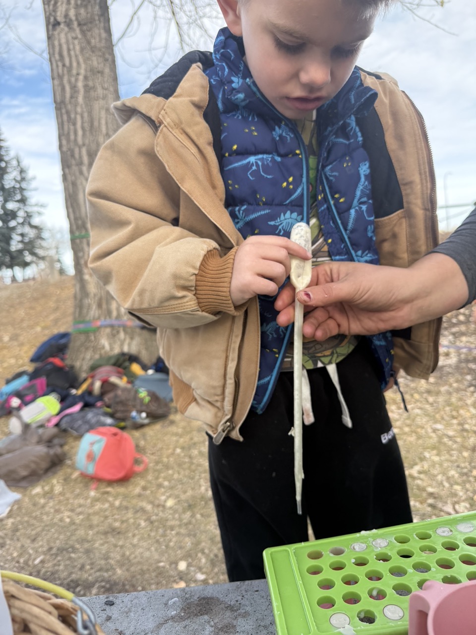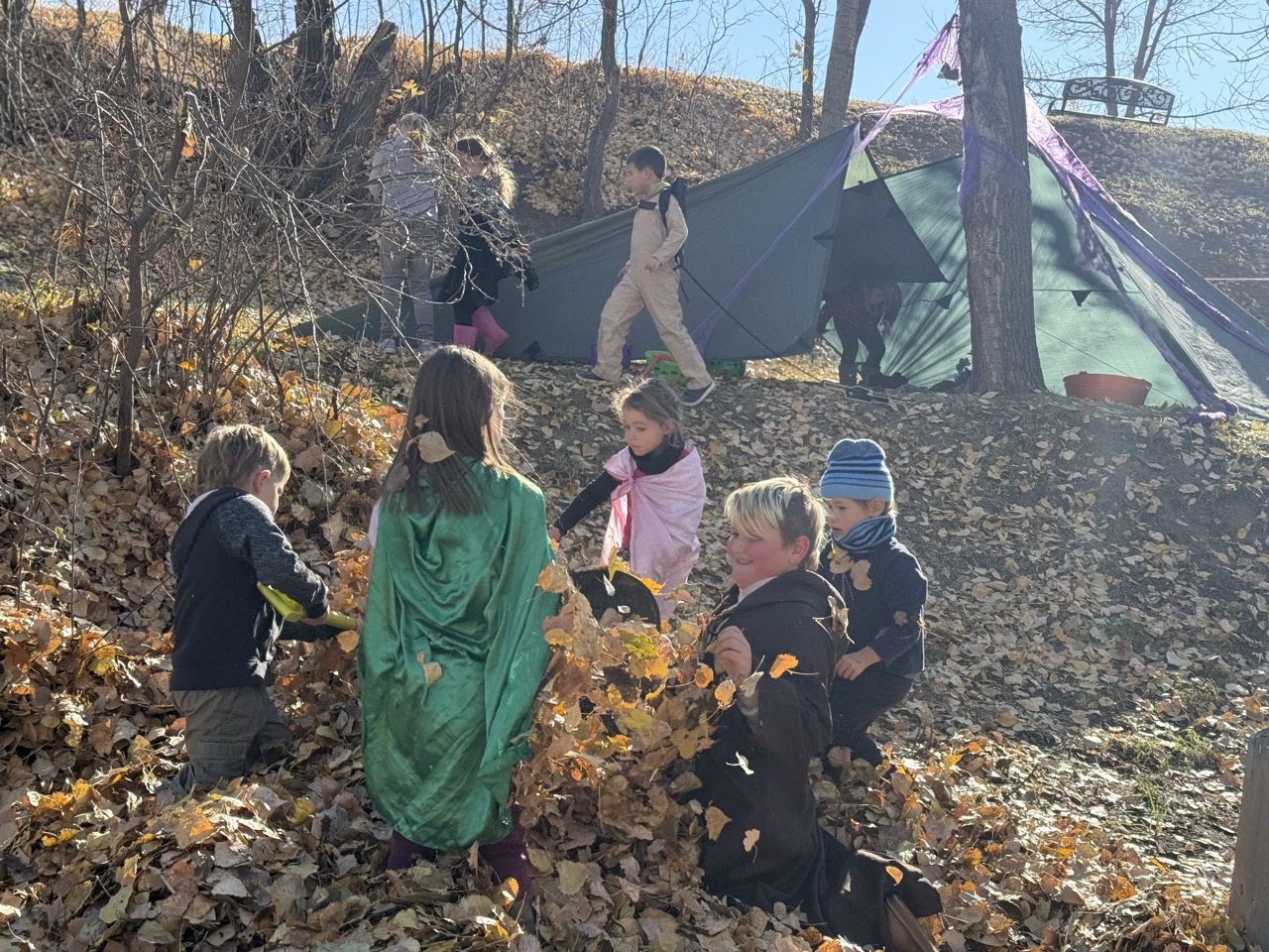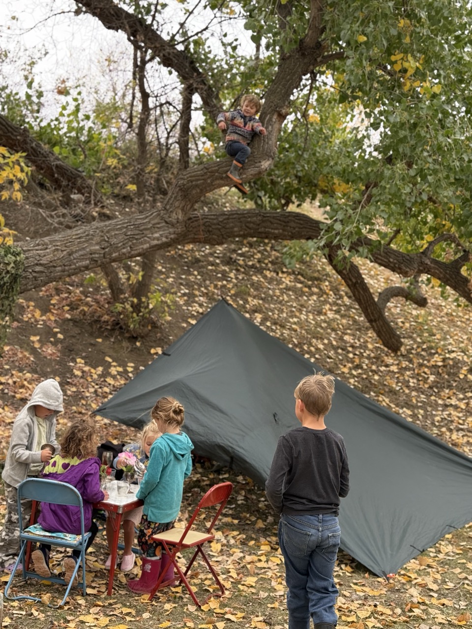 The kids were also excited to revisit our “jungle tree,” spending much of the day perfecting their rooms in it and relaxing on the branches while being read to. We wrapped up the day with a fun game and a story about a lake, a fishing village, Indigenous people, and a bear. It is a true story, ask your wildlings if they remember it and can tell it to you.