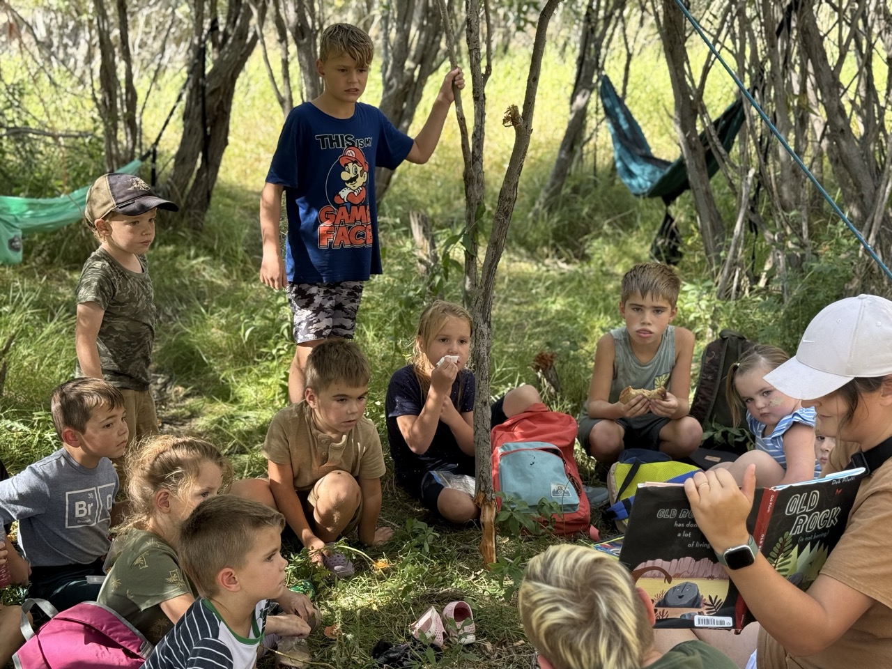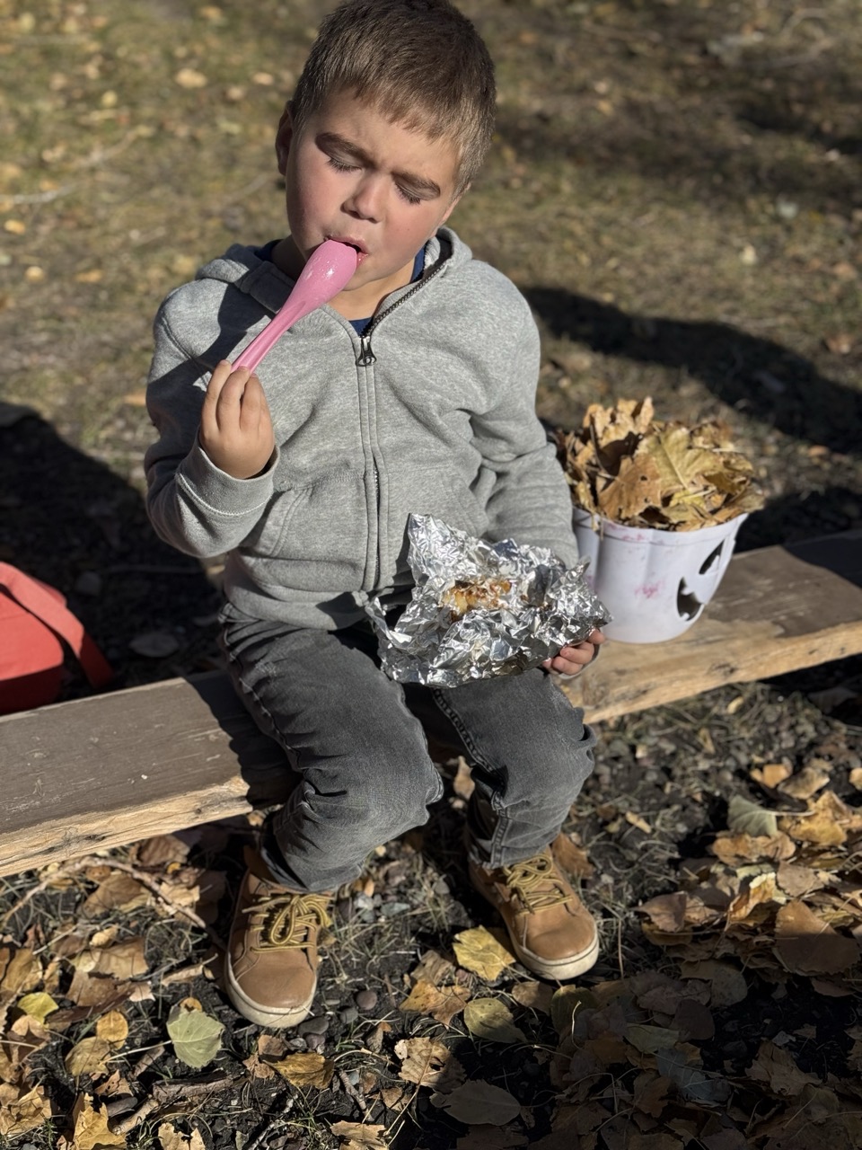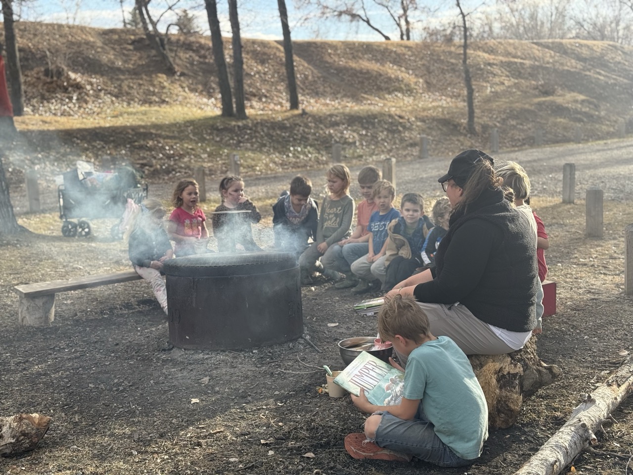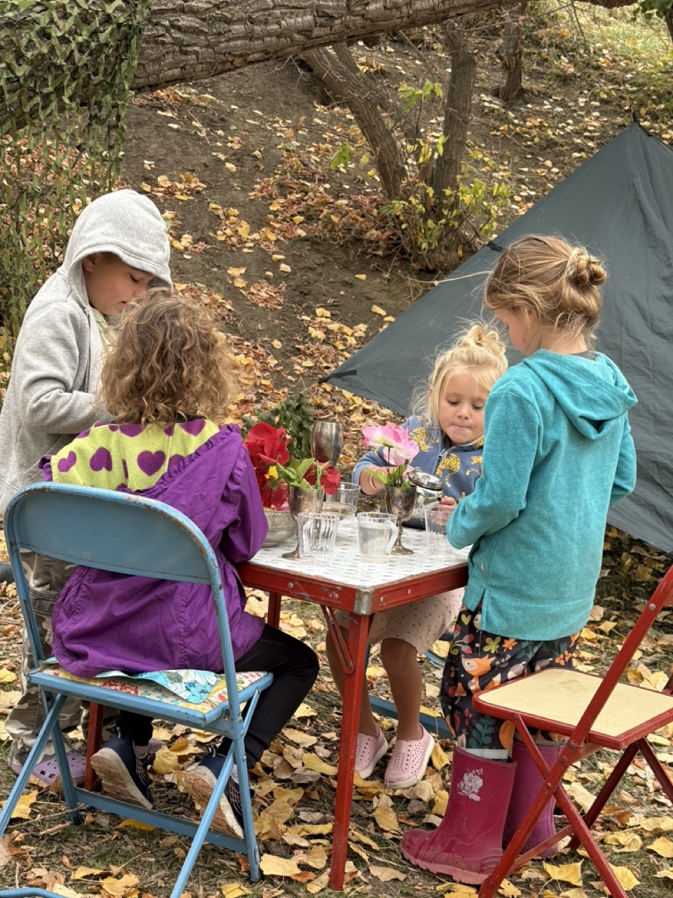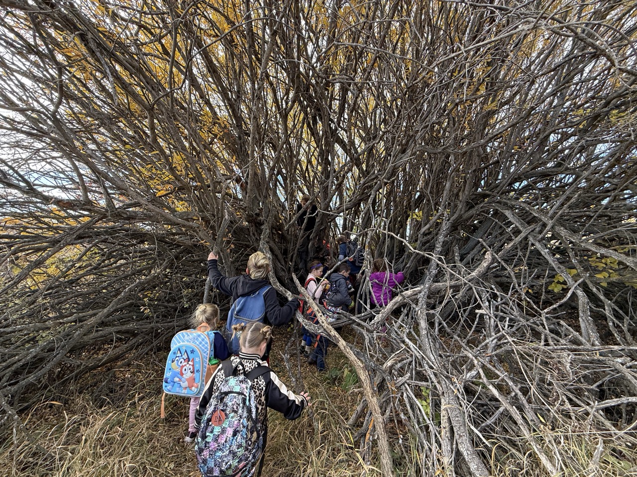 The kids were also excited to revisit our “jungle tree,” spending much of the day perfecting their rooms in it and relaxing on the branches while being read to. We wrapped up the day with a fun game and a story about a lake, a fishing village, Indigenous people, and a bear. It is a true story, ask your wildlings if they remember it and can tell it to you.