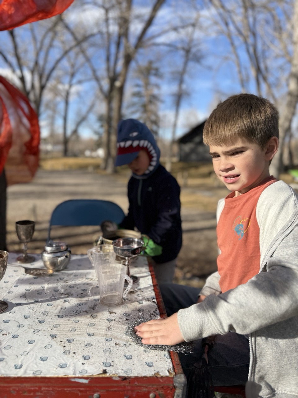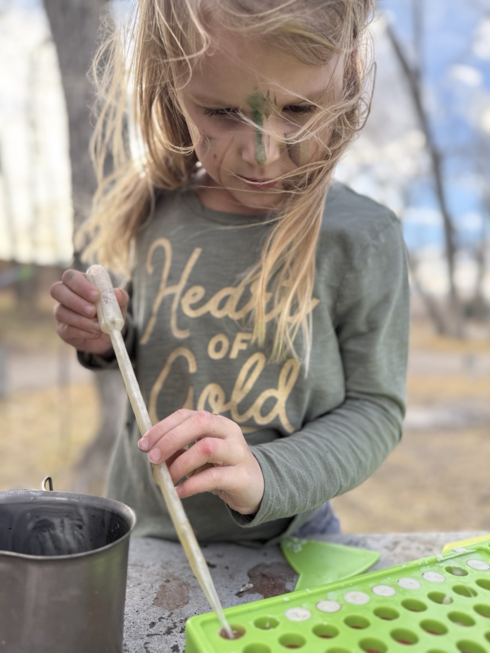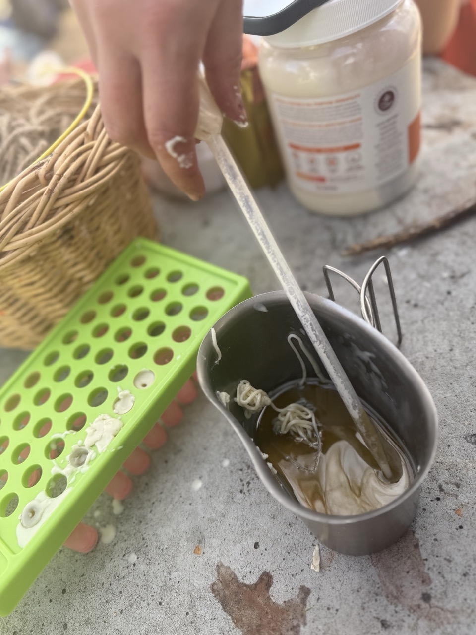This last day was a rush! With stone soup and donuts on the menu, then lip balm and bath balms on the craft side, we were working hard. These wildlings chose clove as their scent for lip chap and lavender for the bath balms, and they were pretty proud of it. They played hard too, building a fort, hosting tea parties, and diving deep into the Dino world.
