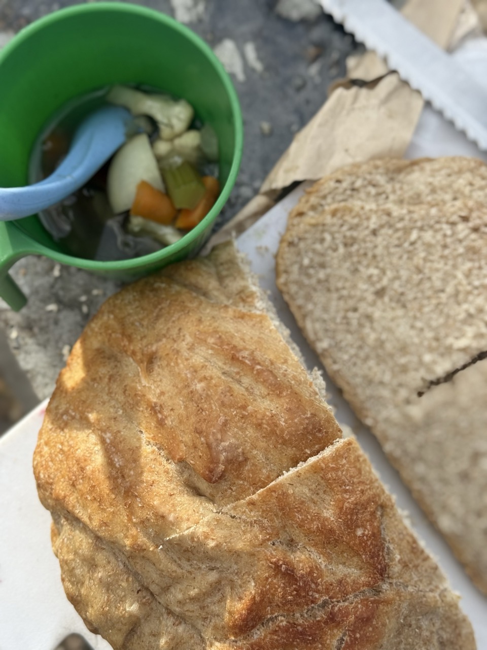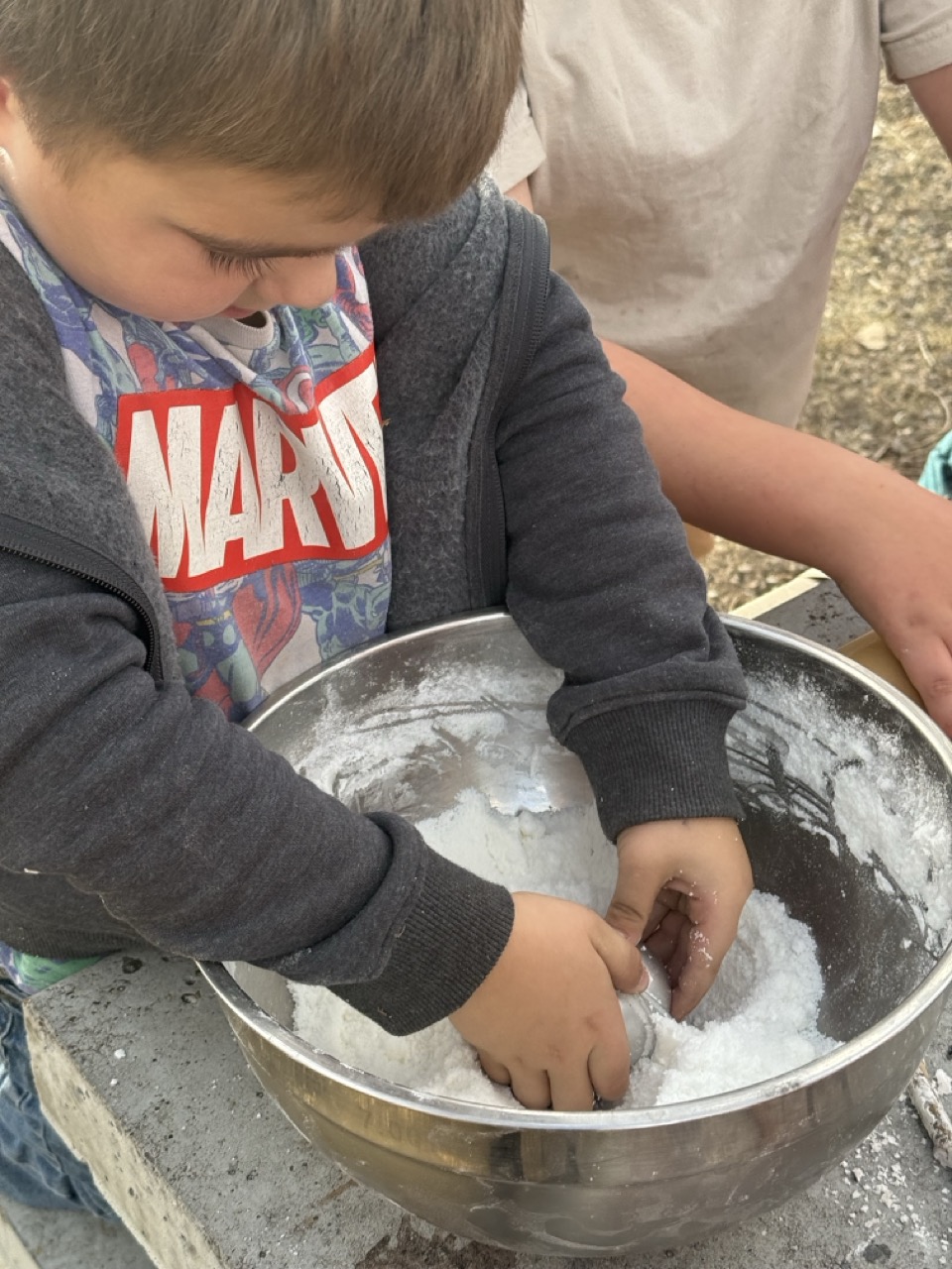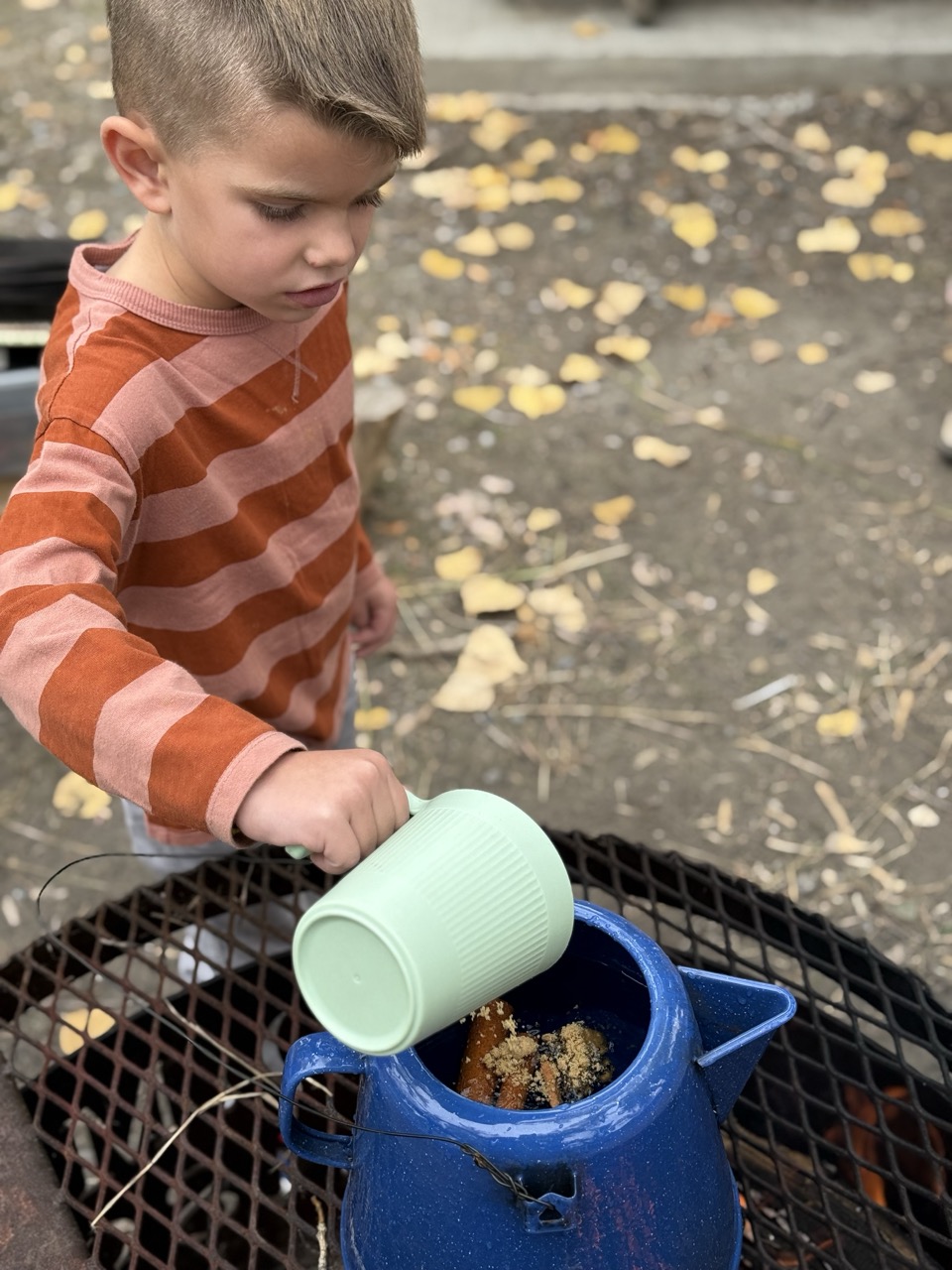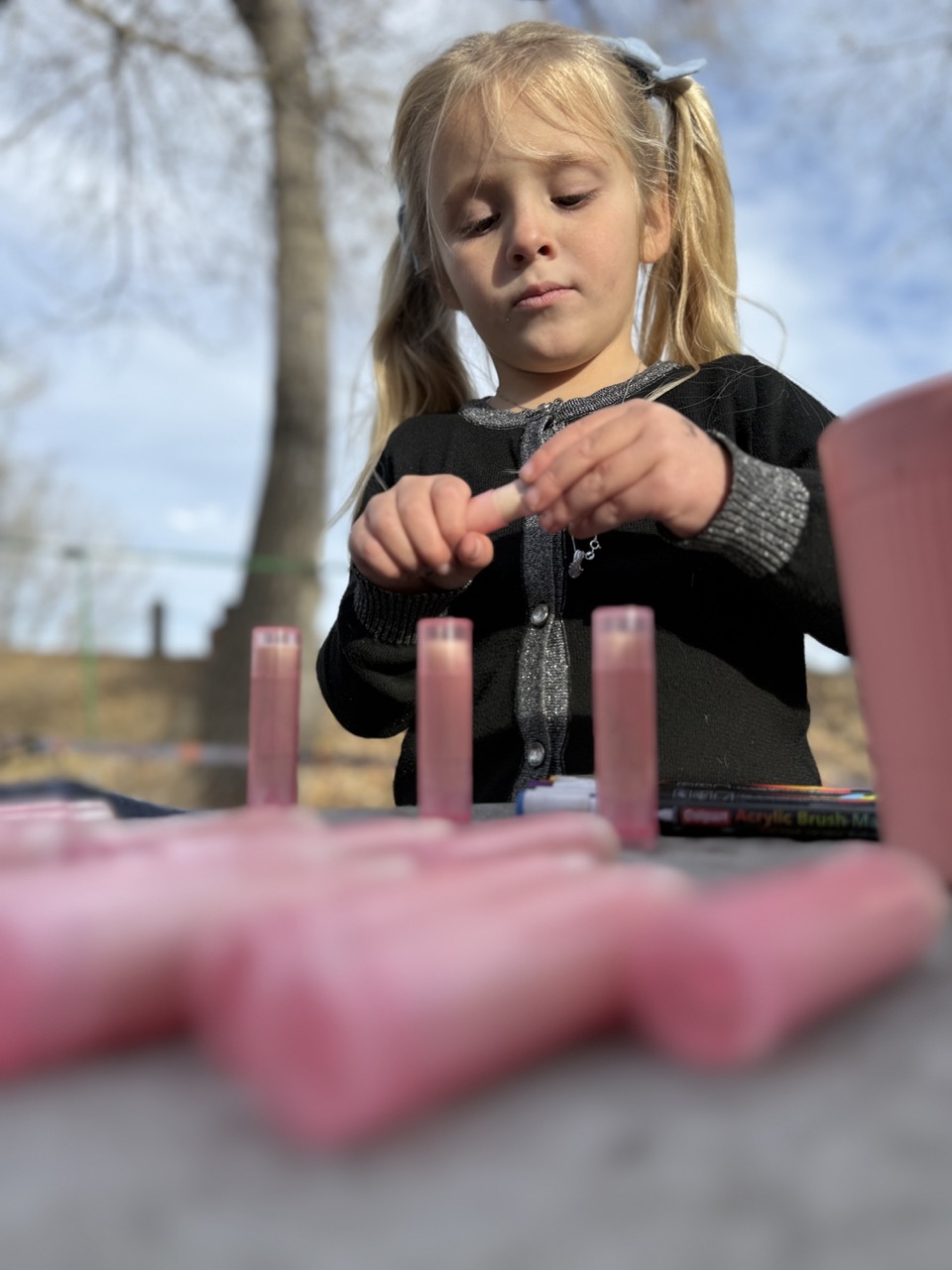 This last day was a rush! With stone soup and donuts on the menu, then lip balm and bath balms on the craft side, we were working hard. These wildlings chose clove as their scent for lip chap and lavender for the bath balms, and they were pretty proud of it. They played hard too, building a fort, hosting tea parties, and diving deep into the Dino world.