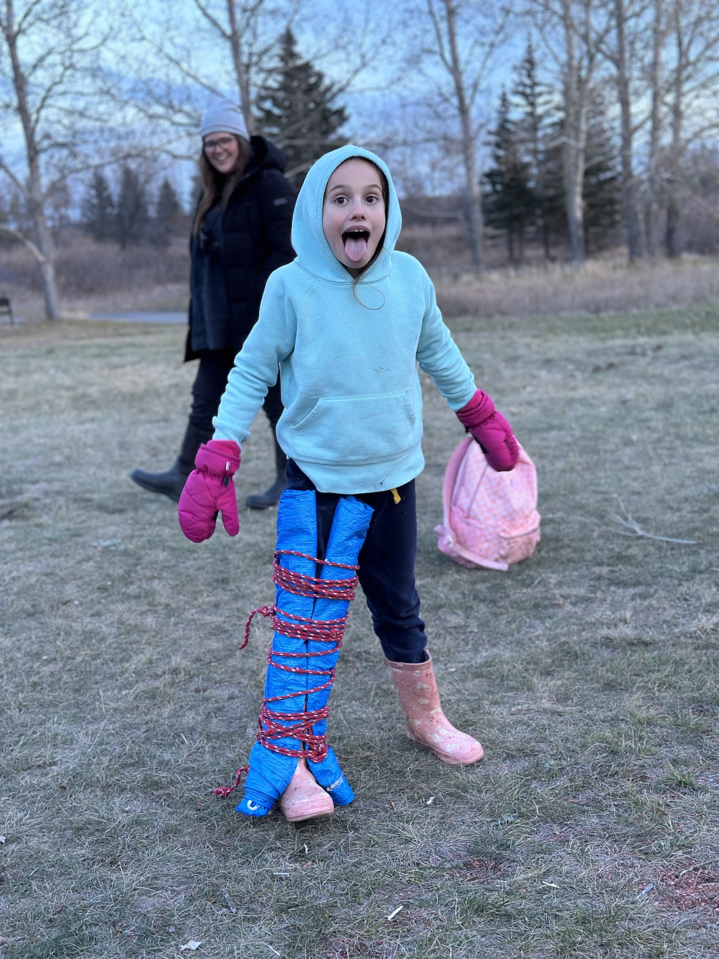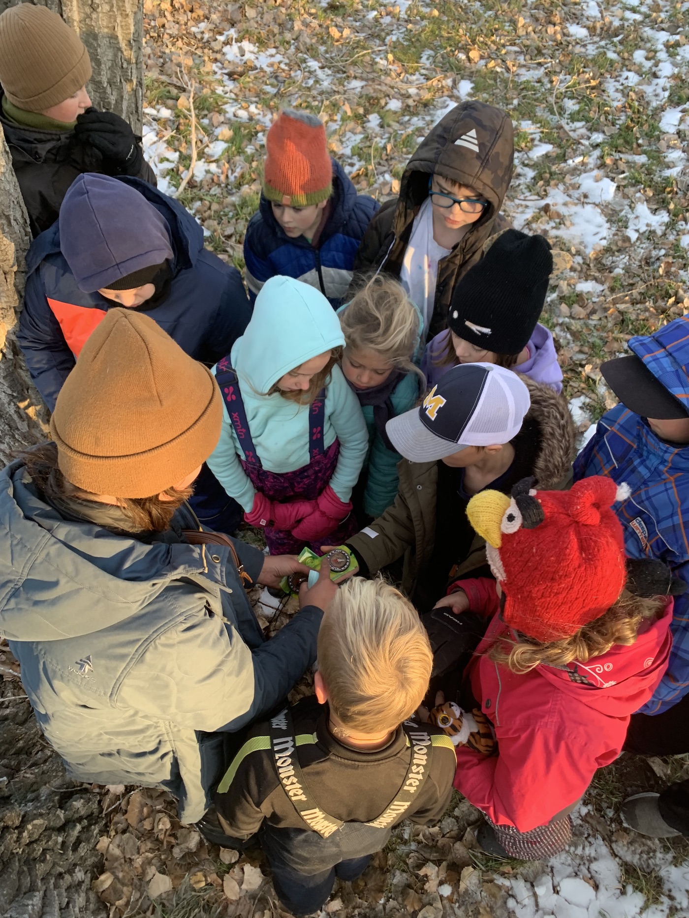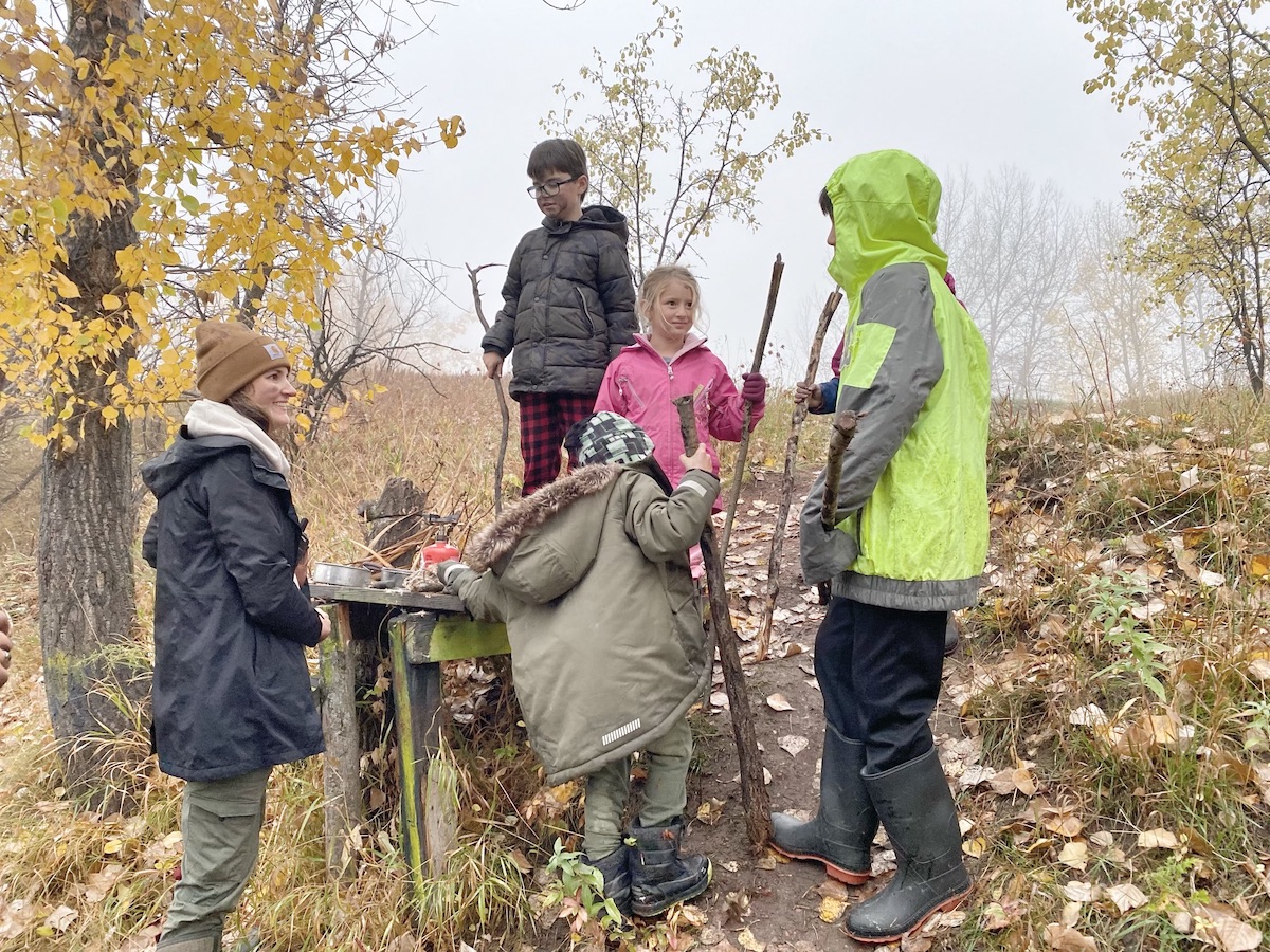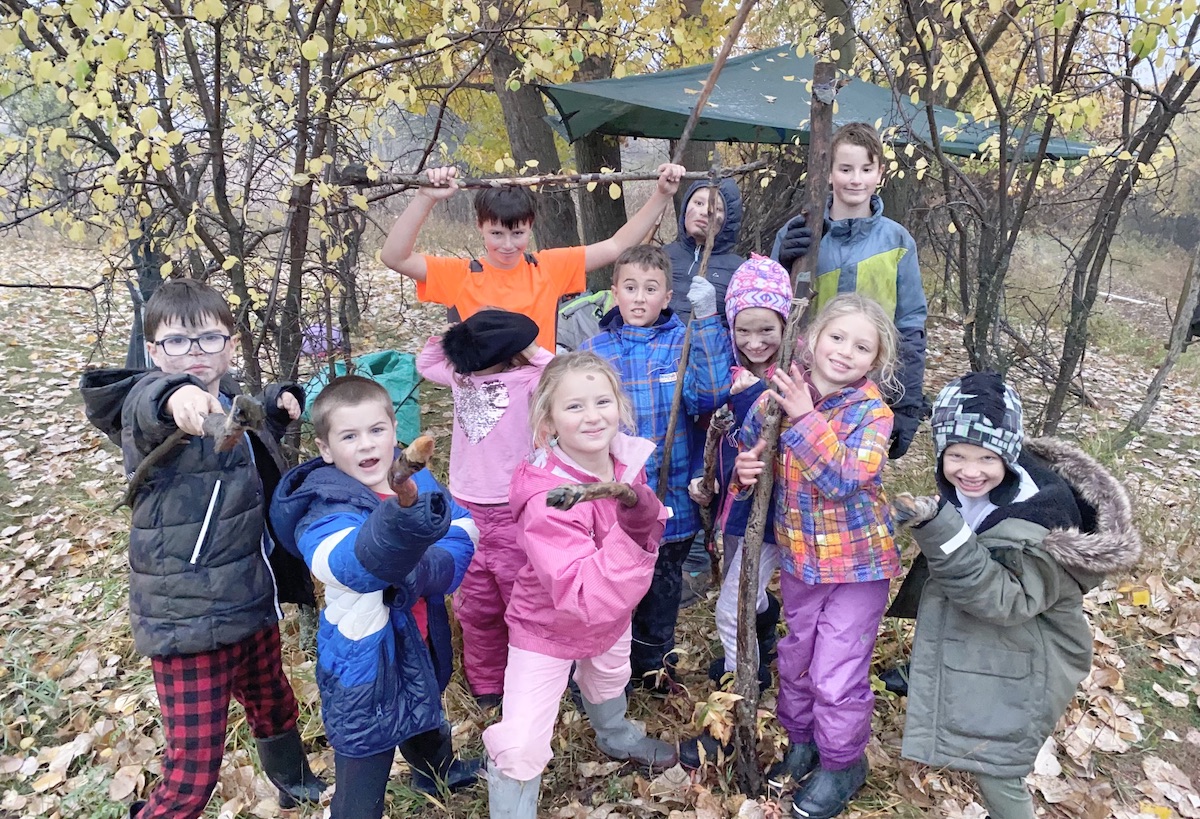 What an awesome day to learn a new wilderness skill and become a little more resilient in the cold and rain. We set off to find the perfect stick, collect sap and crush charcoal to make natural adhesive and spears. These kids will never look at sap the same way!