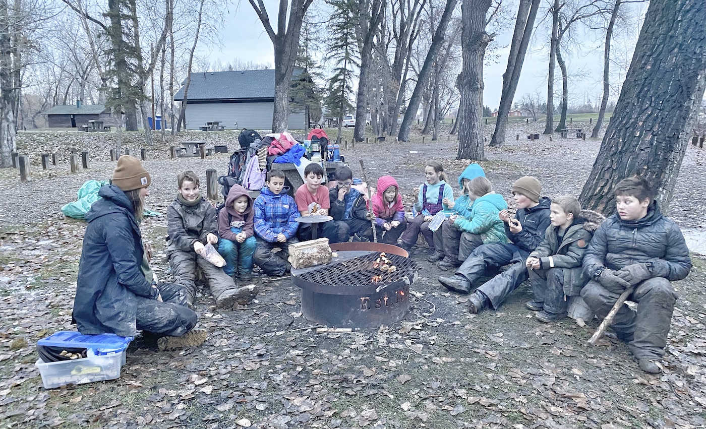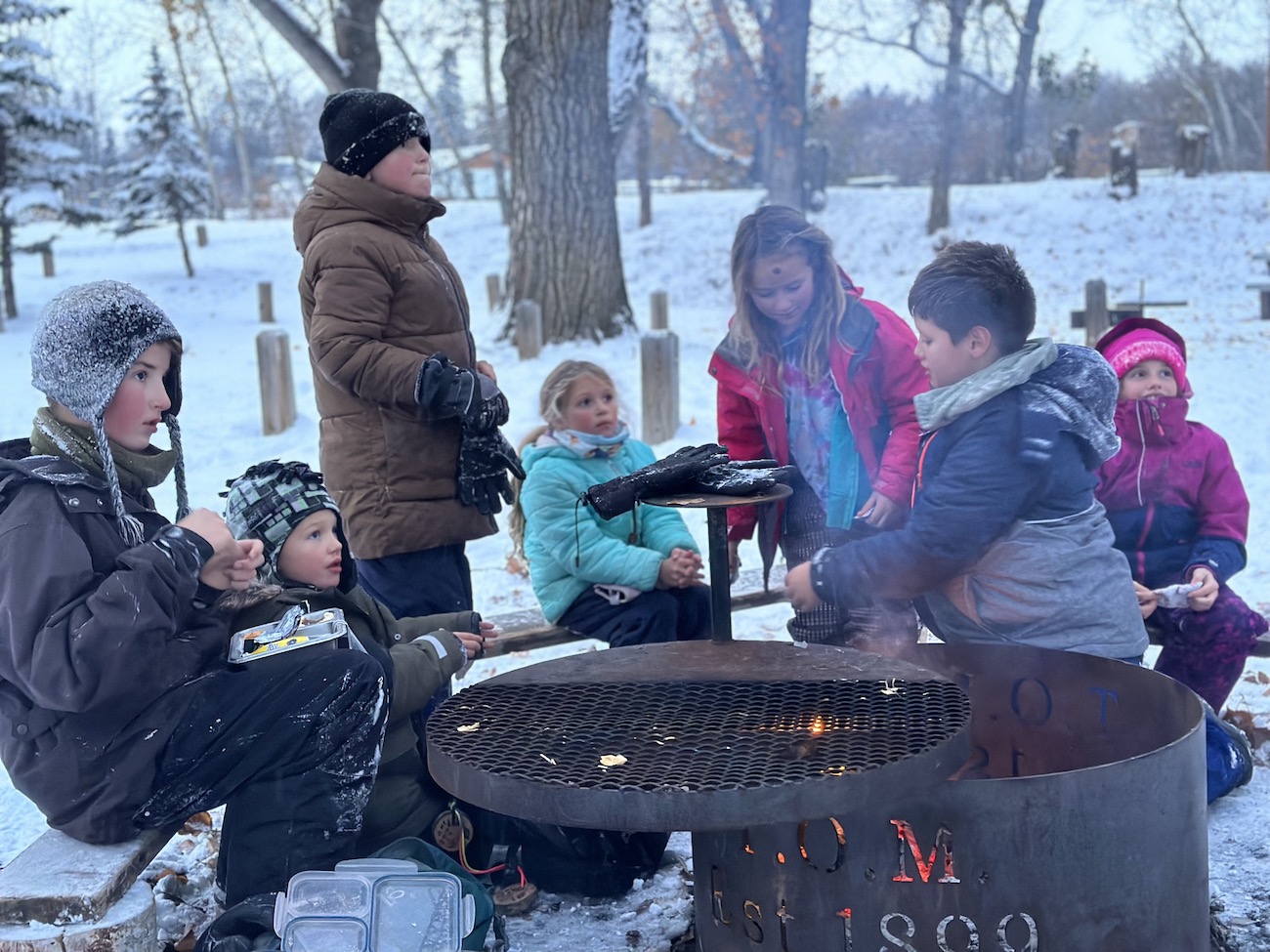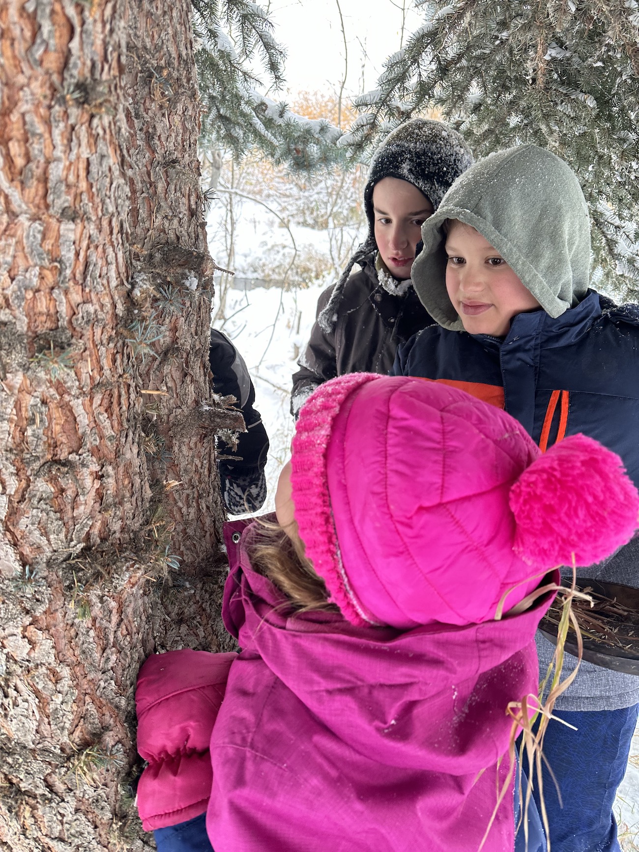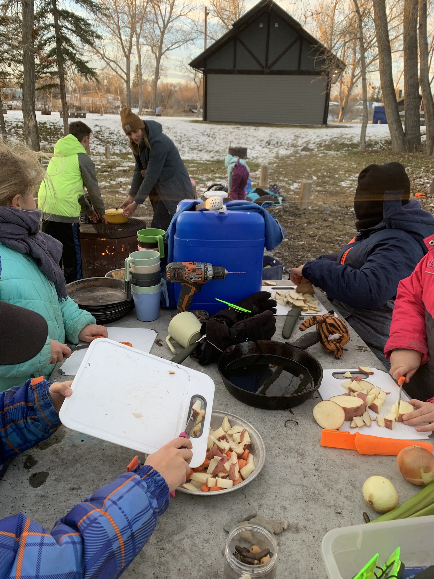 We took on the hard task of learning how to forage for fire starting supplies, in lots of snow! No better time to teach fire starting than in terrible fire weather! Collecting dried roots, and fat wood we truly hit natures gold! After coming back to start fires we roasted Oreo s’mores, hotdogs and enjoyed hot coco!