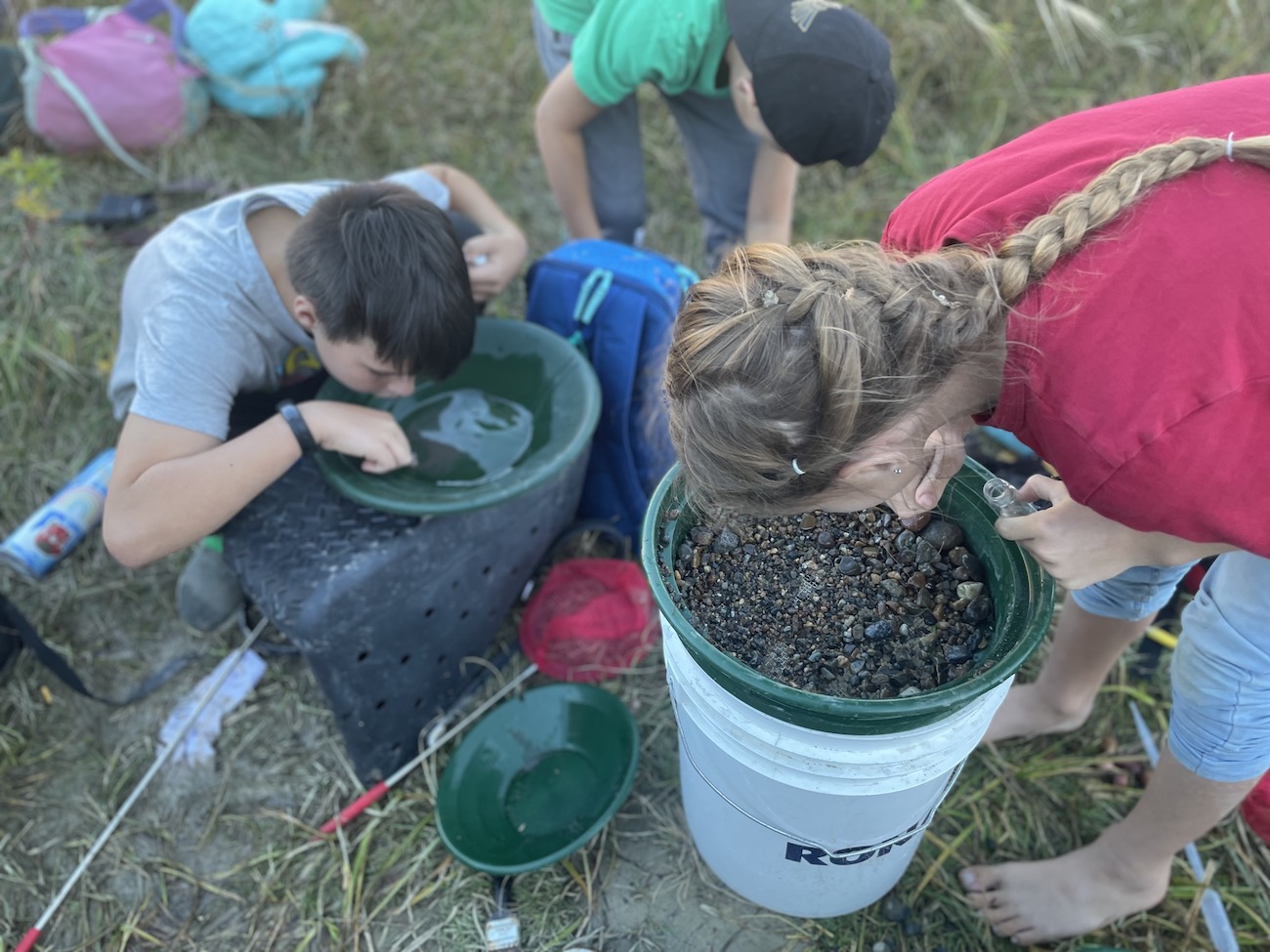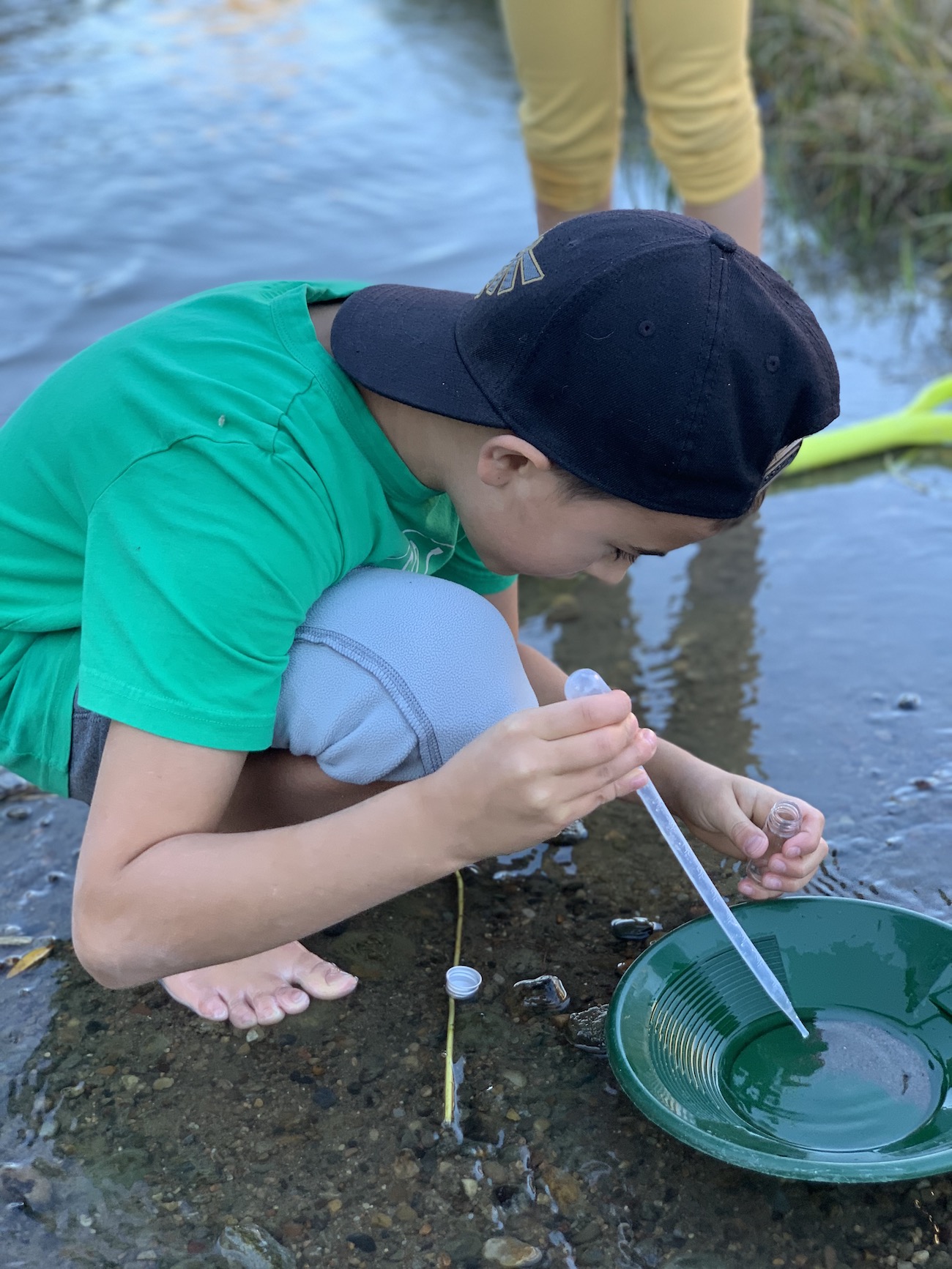 After a demo/discussion on how to pan for gold we dove into the world of panning. even though we don’t have much or any gold here, we still find lots of interesting rocks and garnets. Opening up very natural conversations about minerals and the rock cycle.