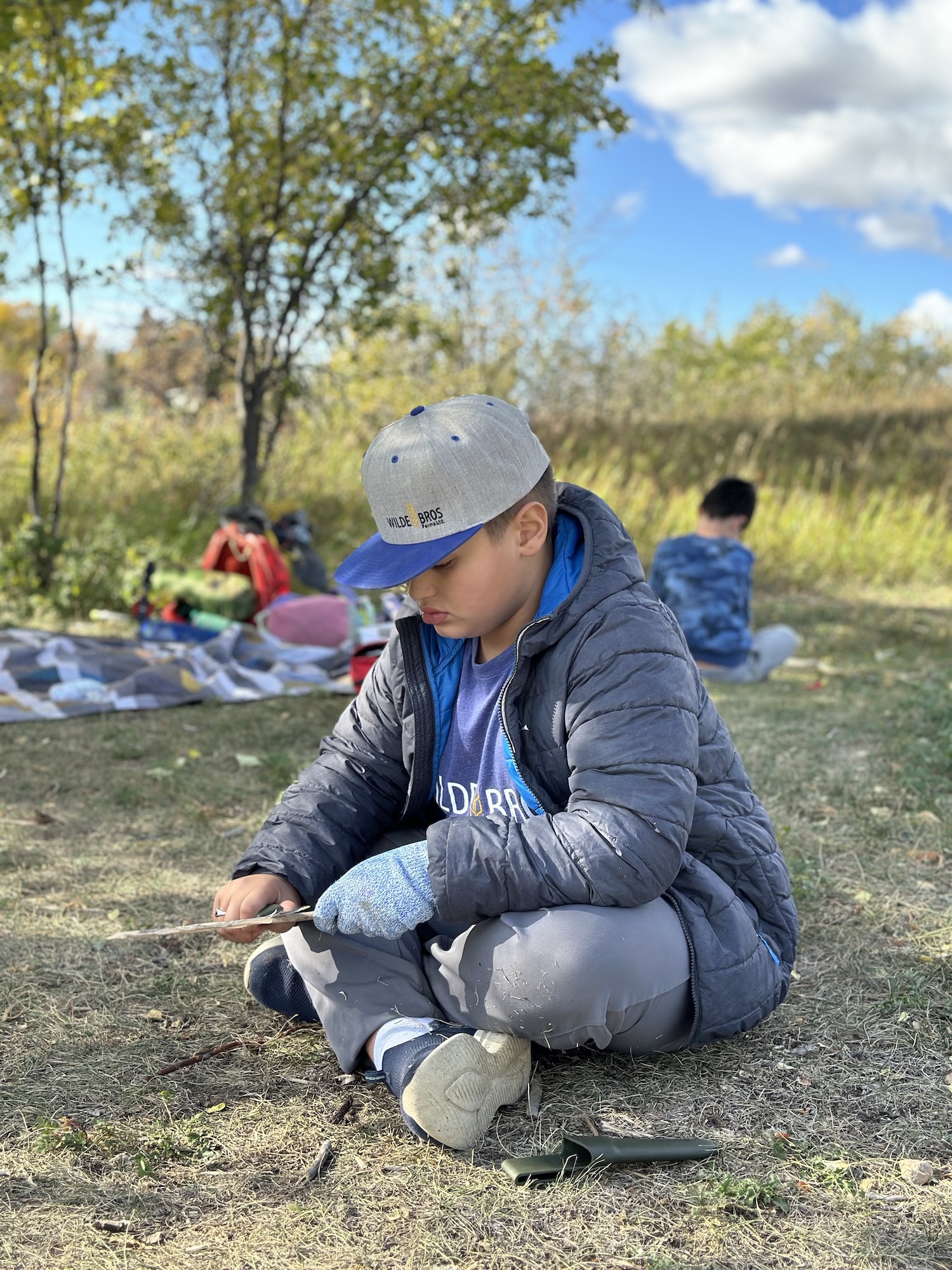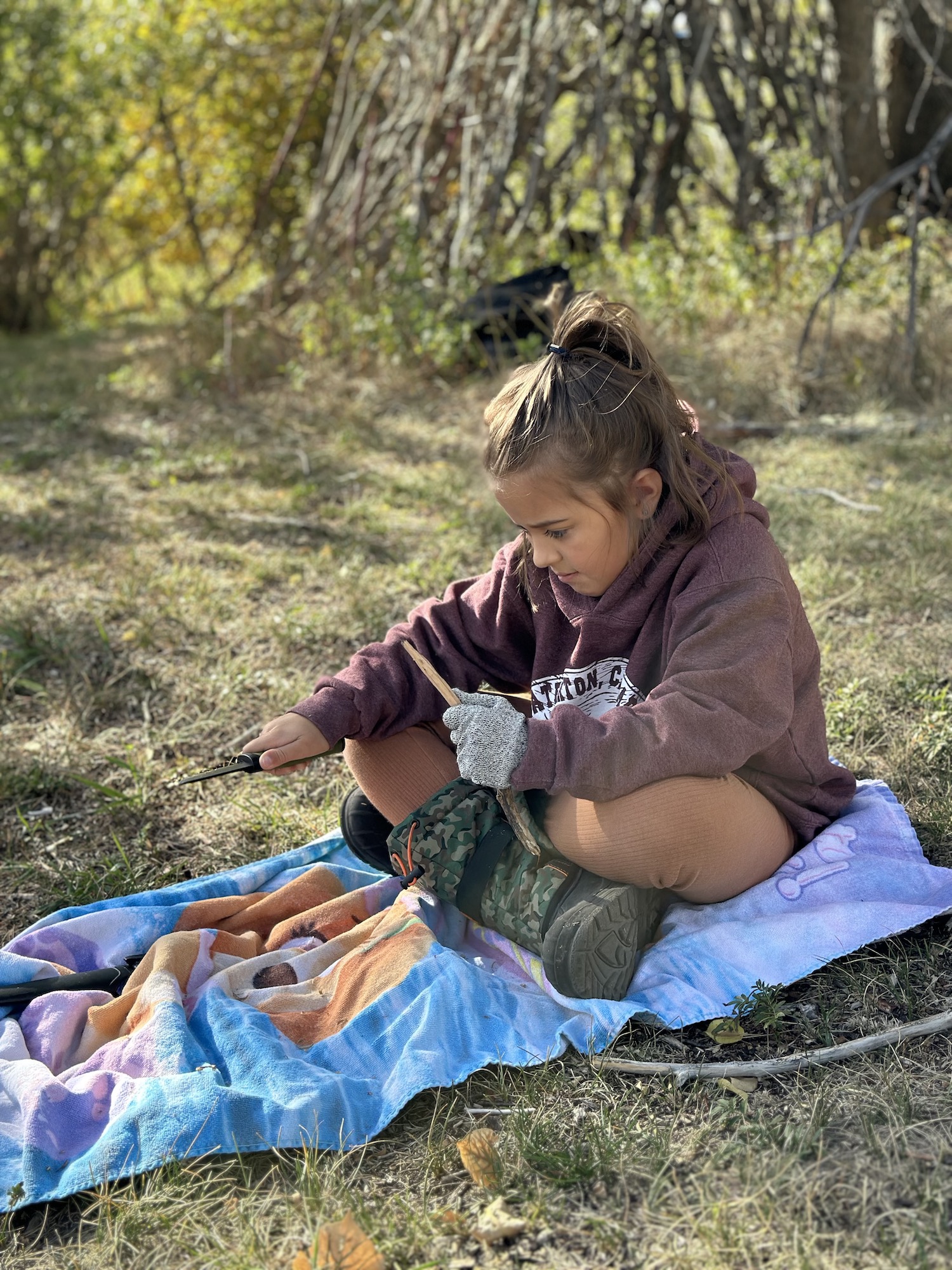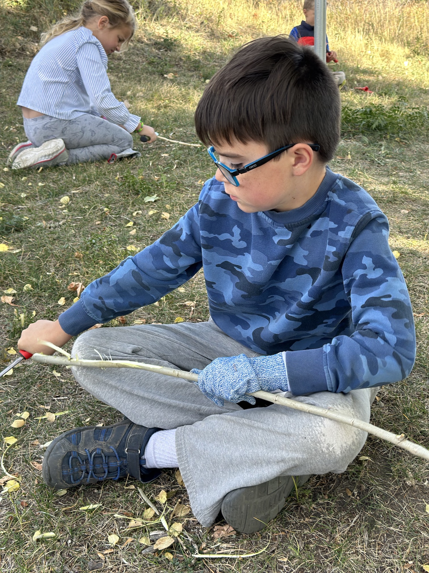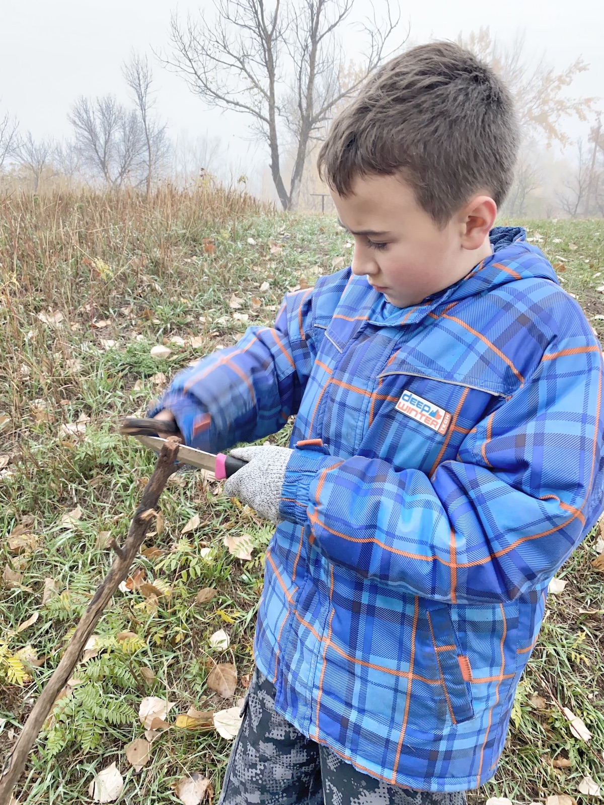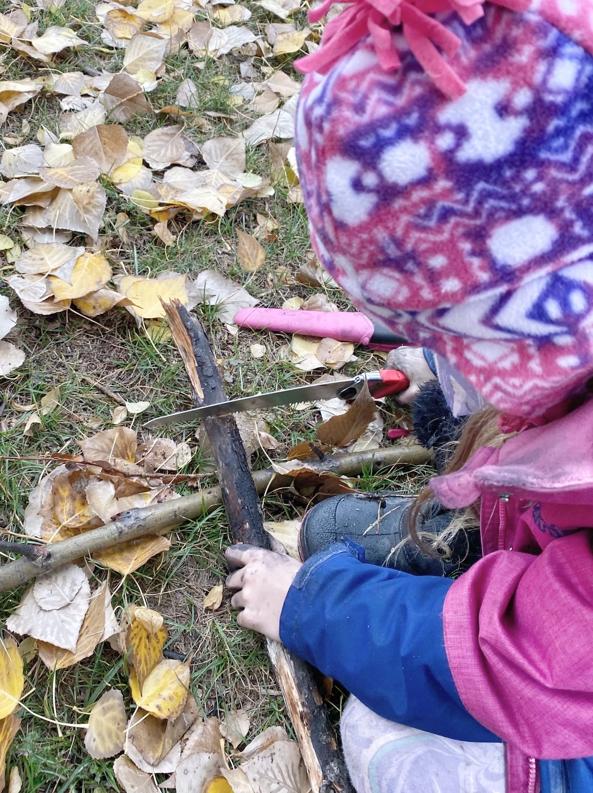 With the wind as our constant welcomed friend today, we settled in to learn knife and saw safety and went to work with many excited wildlings whittling away.