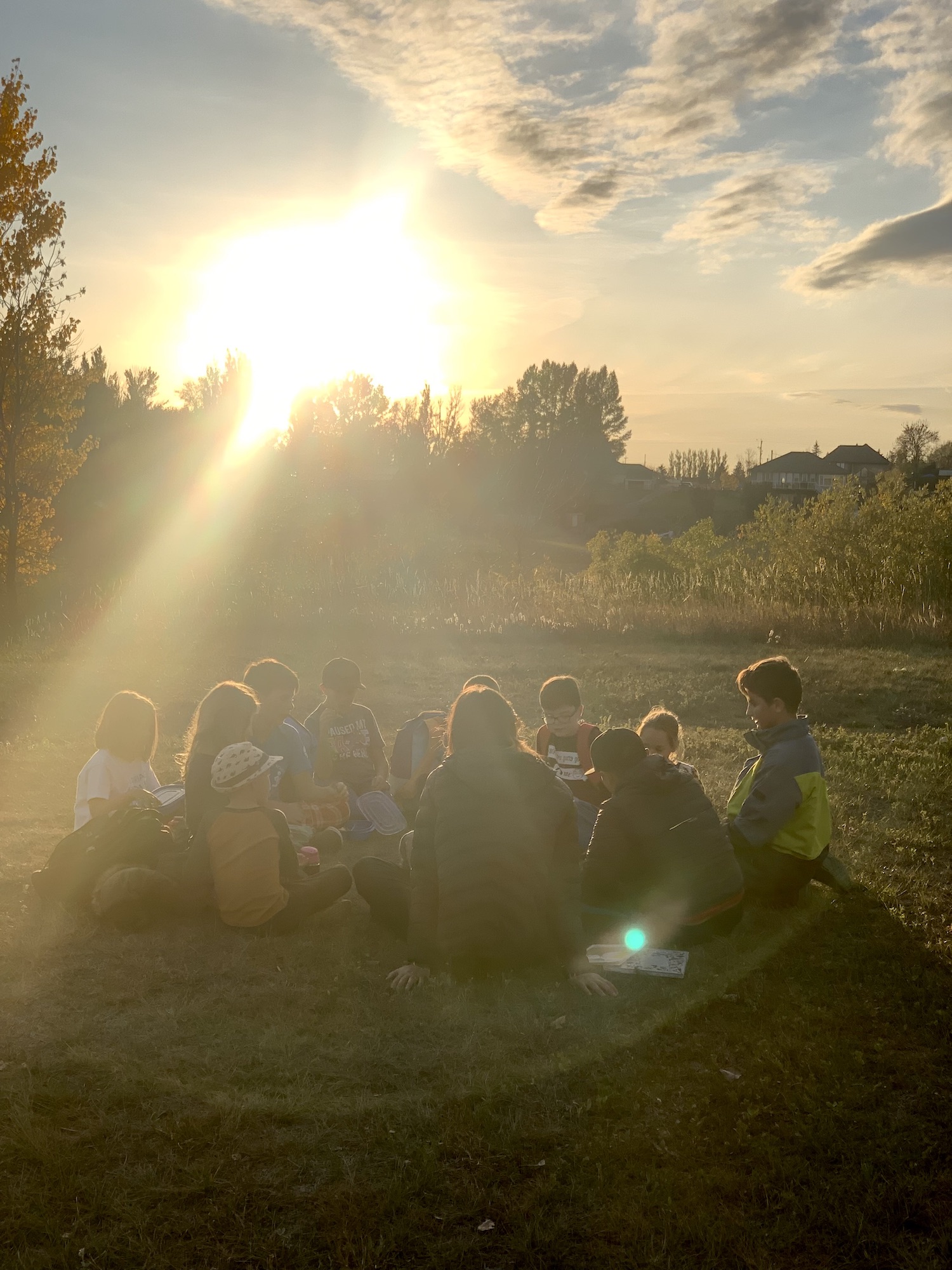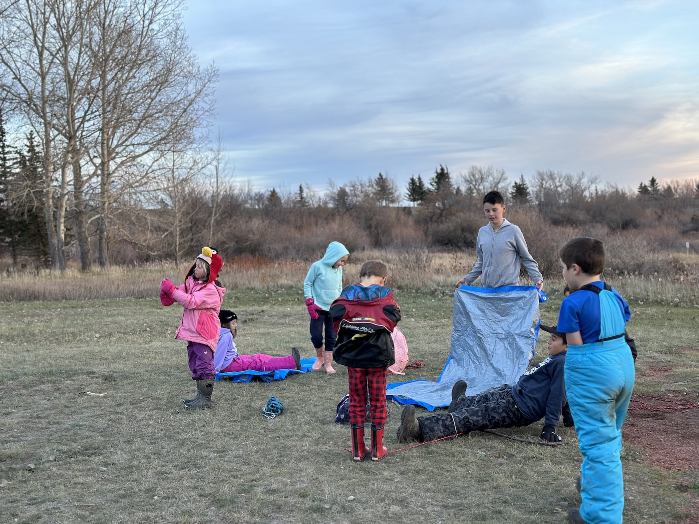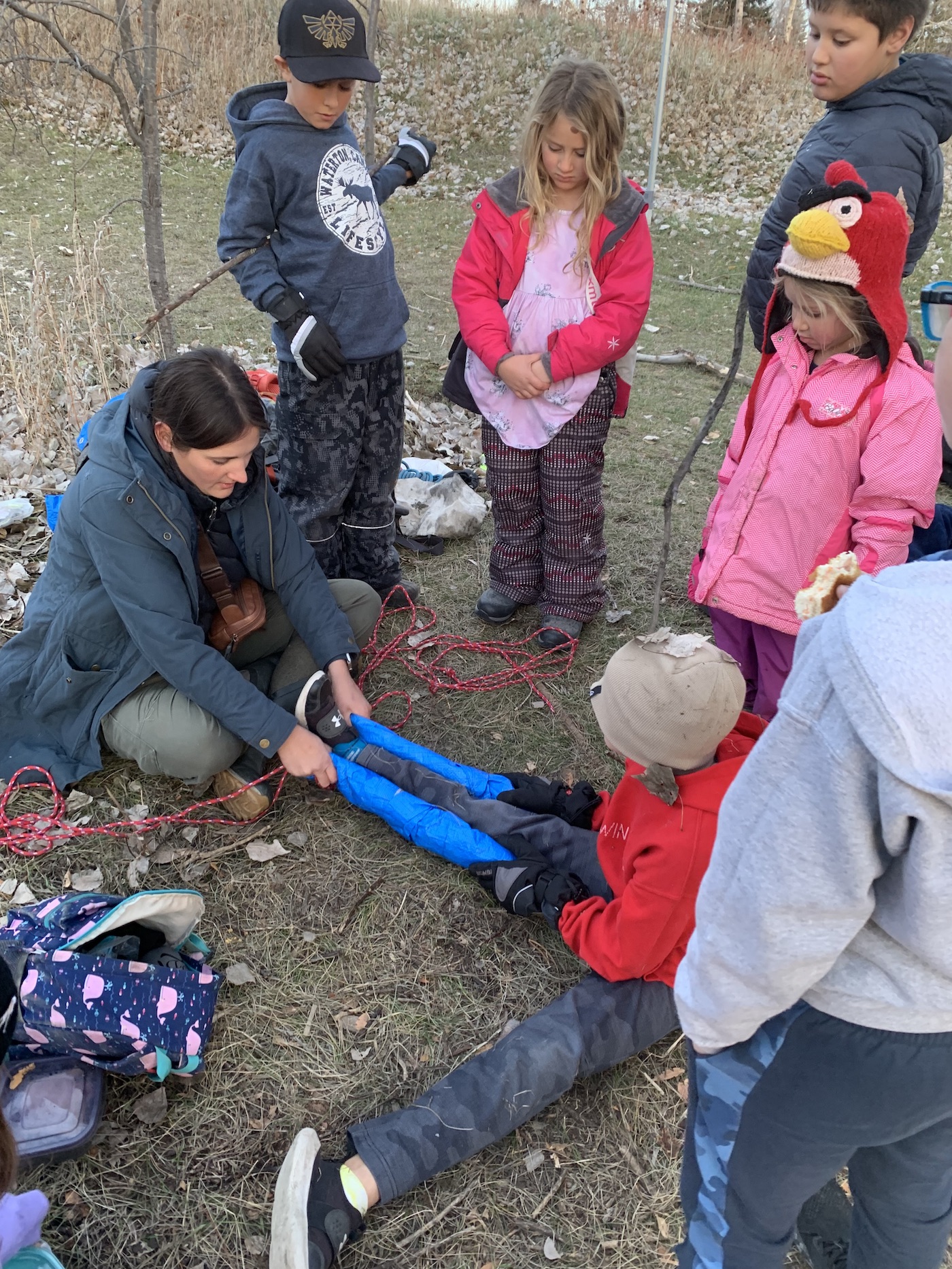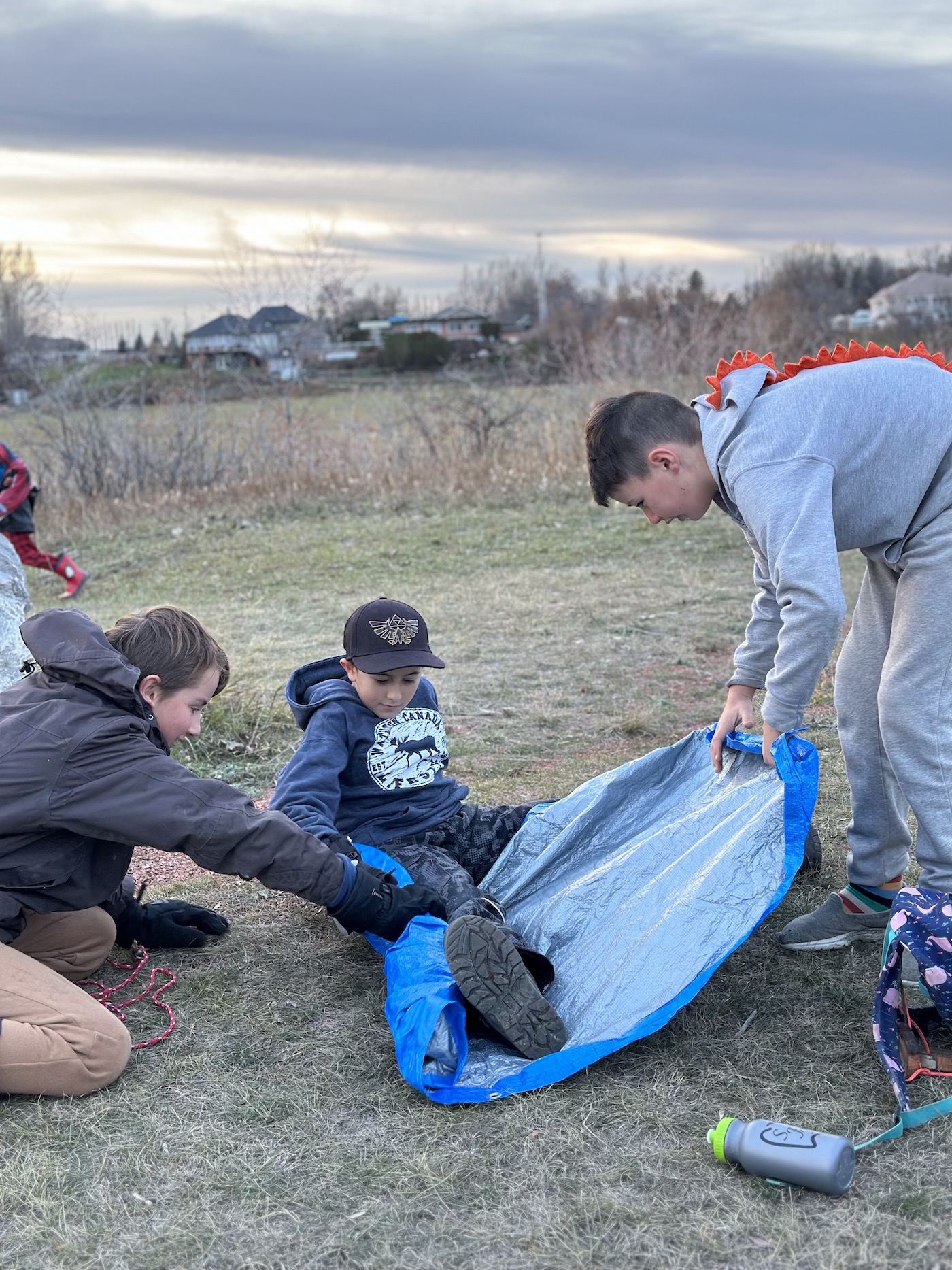 After diving into learning about the most important things to pack on a hiking trip and the five c’s of survival, we learned how to make a remote first aid stretcher and splint, along with a lot of natural discussions about what to do if a hiking partner gets injured. We then tried to get in some time to play one of our favourite games man tracker before the sun light was out of reach. Once the dark set, we took to the field for some glow in the dark frisbee and an awesome new game ‘graveyard’!