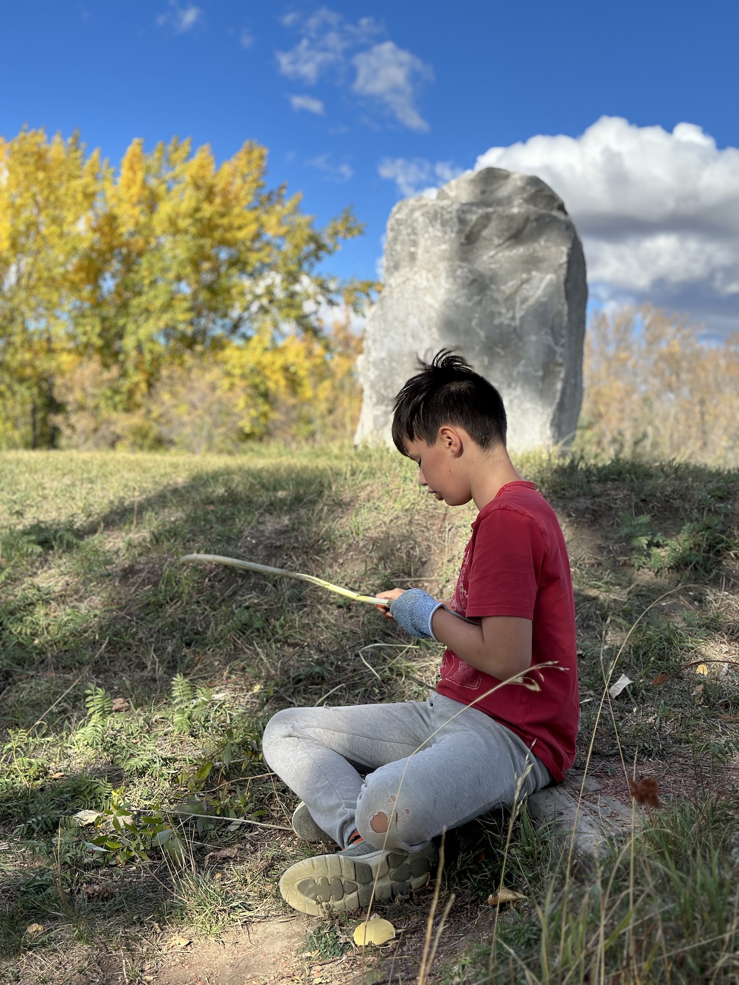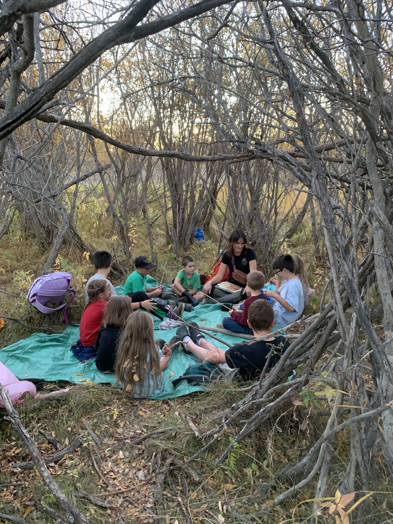 We ended the day listening to an indigenous story I was told then given permission to share. Then whittling till the very last second reading Blackfoot Legends of different animals.