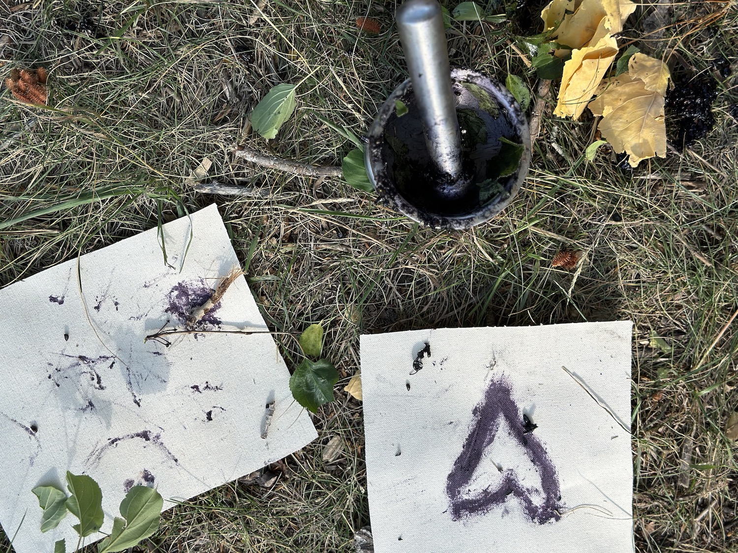 Some wildlings experimented with making buckberry paint, while others used hammers and drills on our “deck”.