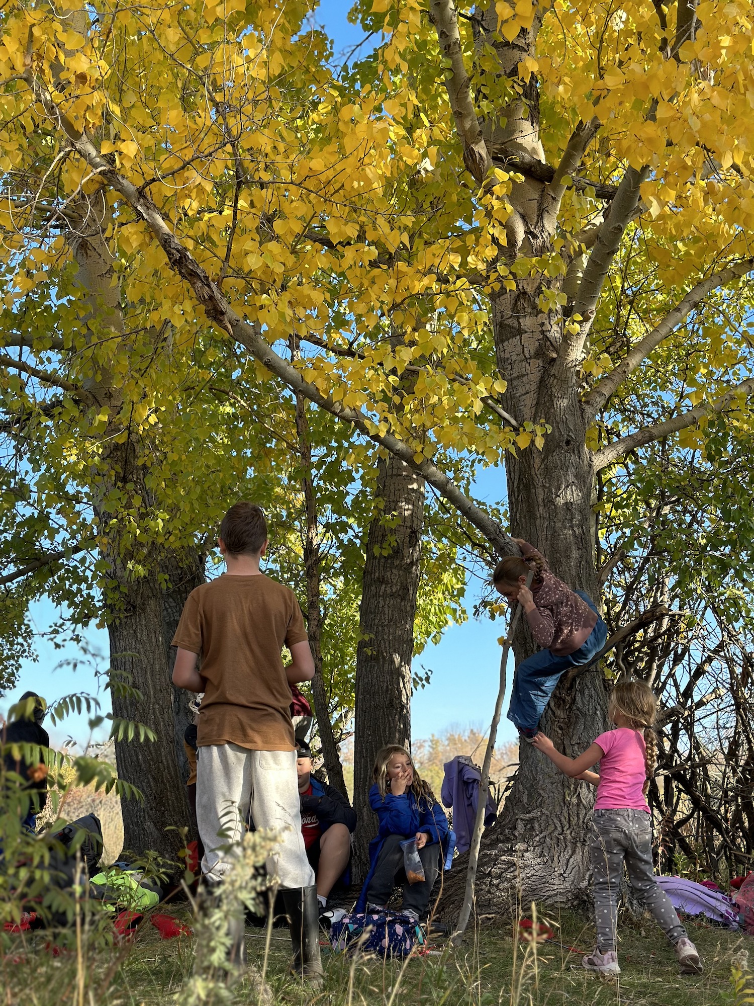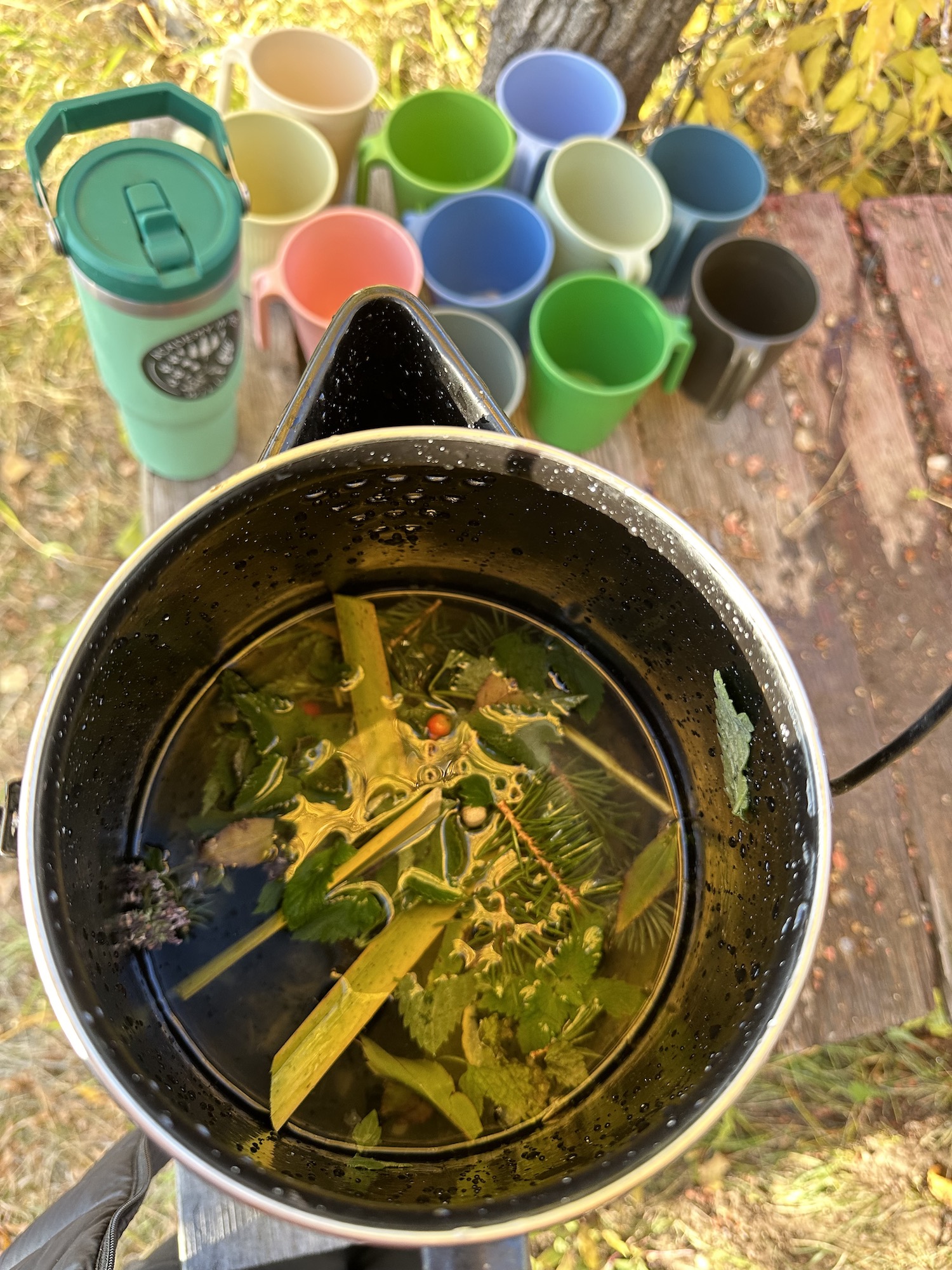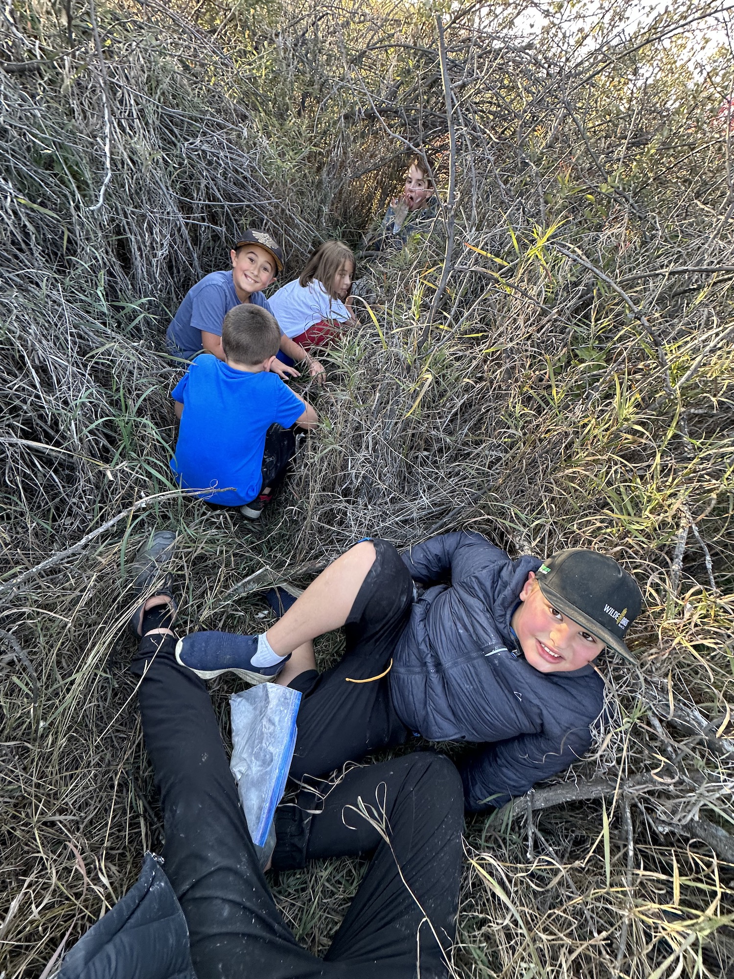 We sure have some foraging enthusiasts in this group! On our forging/exploring walk, we collected many different edibles and talked about how to be a responsible forager. We explored and collected seashells and crawfish skeletons down at the dry riverbed. We sadly came across a dying animal on the dam’s pavement. With all the kids feeling sad, i wrapped it and scooped it up to take to a safer and more comfortable place to pass away which made everyone feel a little bit better. Returning back after our long walk we settled in to make our foraged tea, play games, and listen to stories.