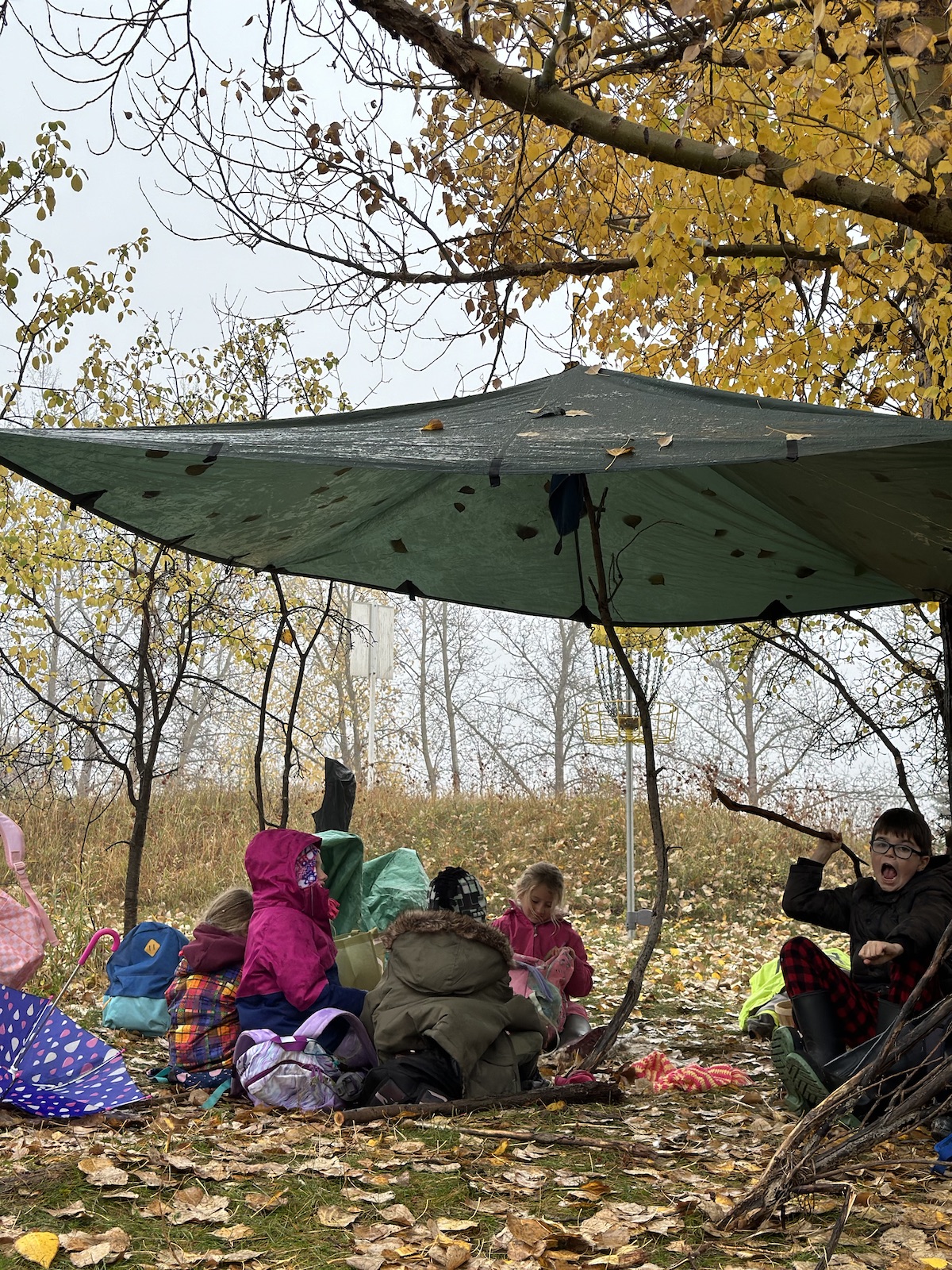 We ended the day huddled under the tarp with a gentle patter of rain over us listening to a story.