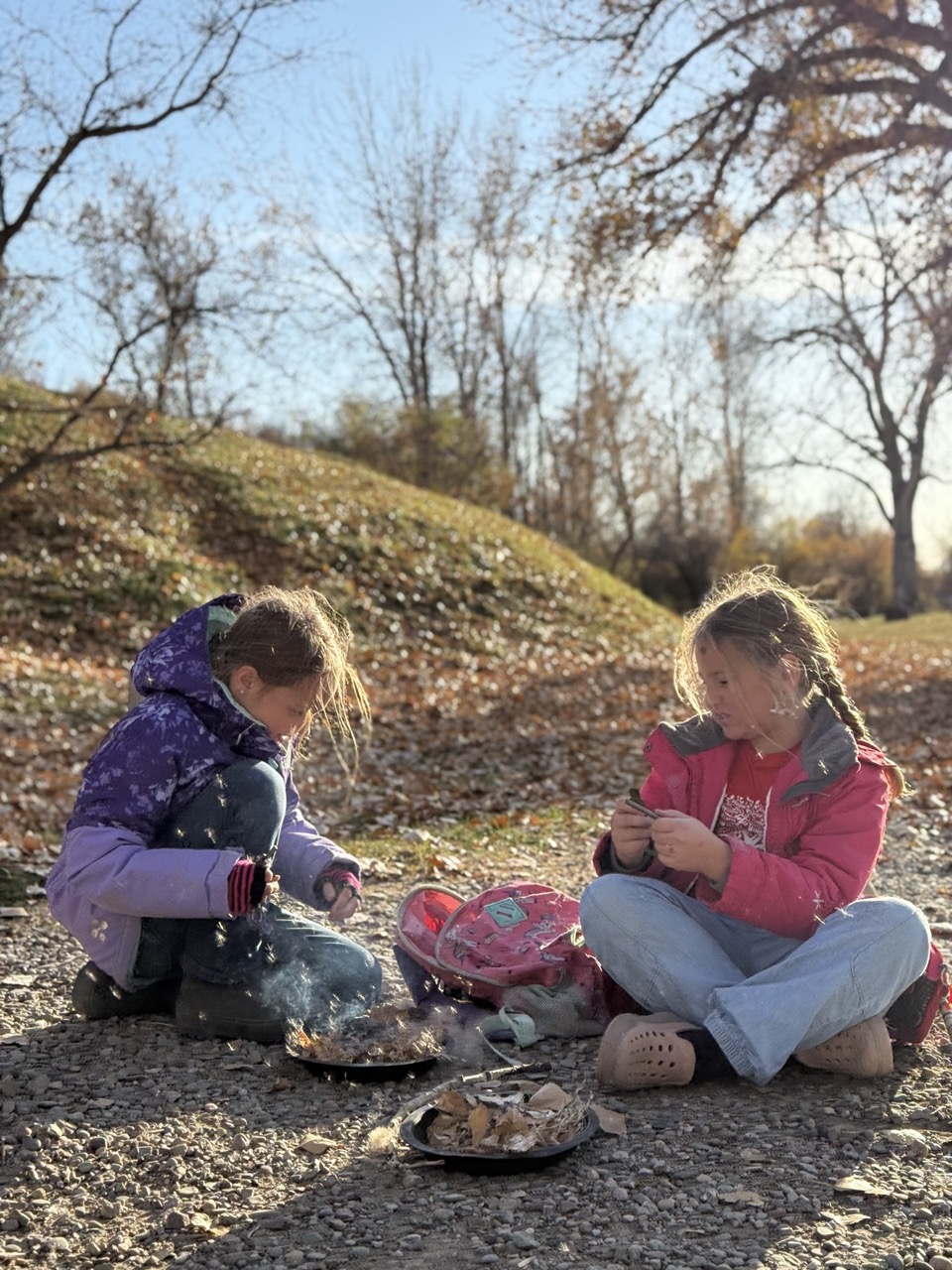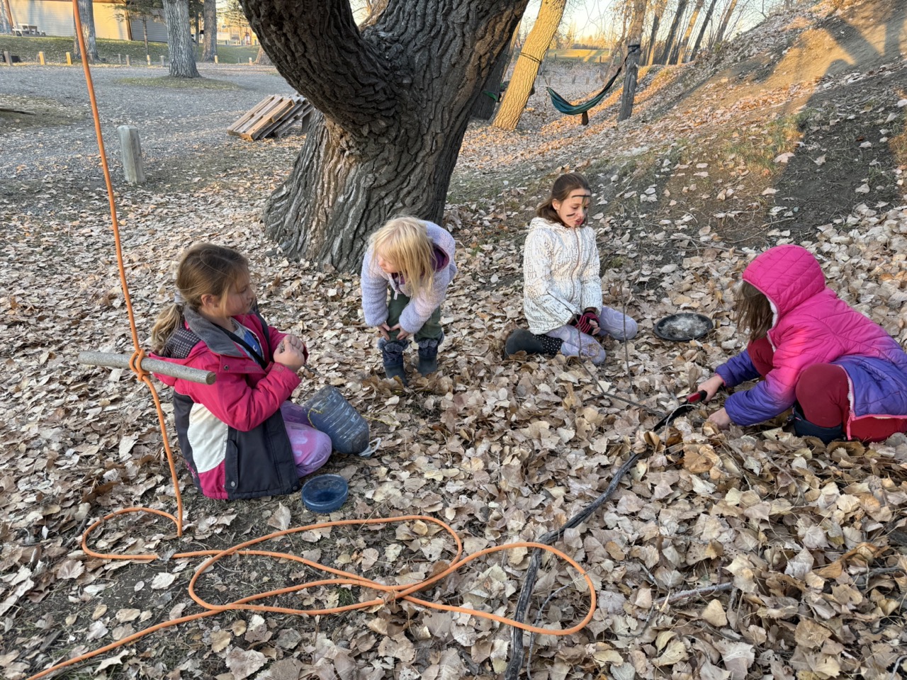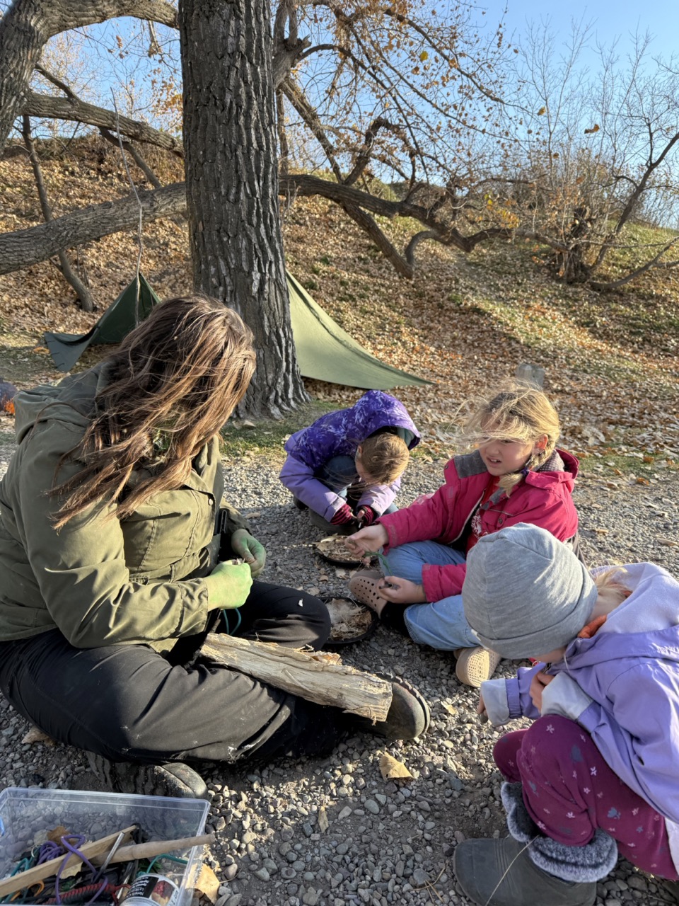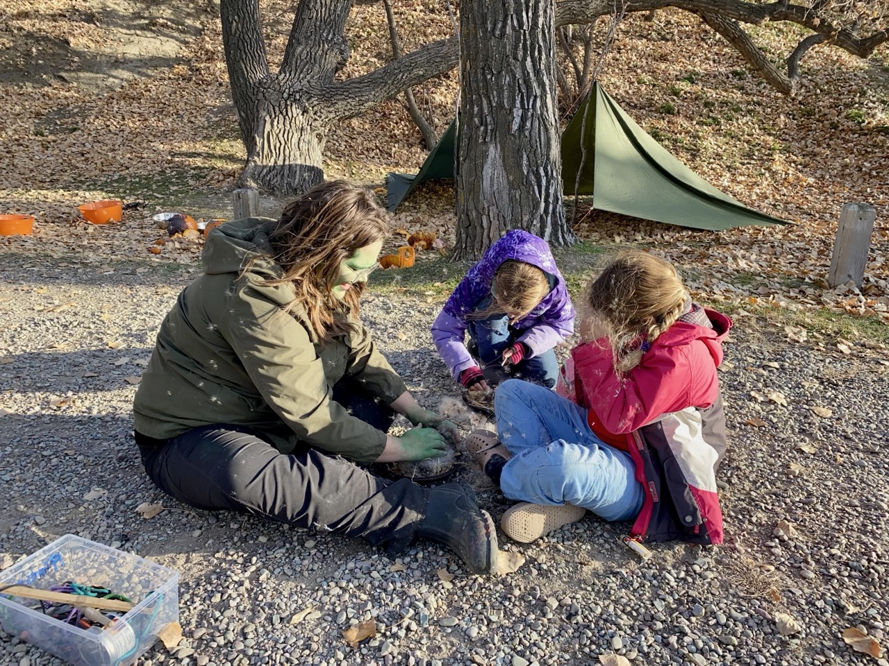 We kicked off today at full speed, chasing the remaining daylight hours! We acted as if we were lost, learning about the importance of always packing the five C’s of survival when hiking. These wildlings were then on their own to use the five C’s of survival that each team “packed.” They dove into erecting their shelters, making water filters and purifying their water, starting fires, and figuring out what they would do for food! Using some freshly picked mullein from Lethbridge, we made glycerine tinctures to support our health and help with any coughs this winter. We ended the day with donuts, hot chocolate, and a group storytelling session around the campfire!