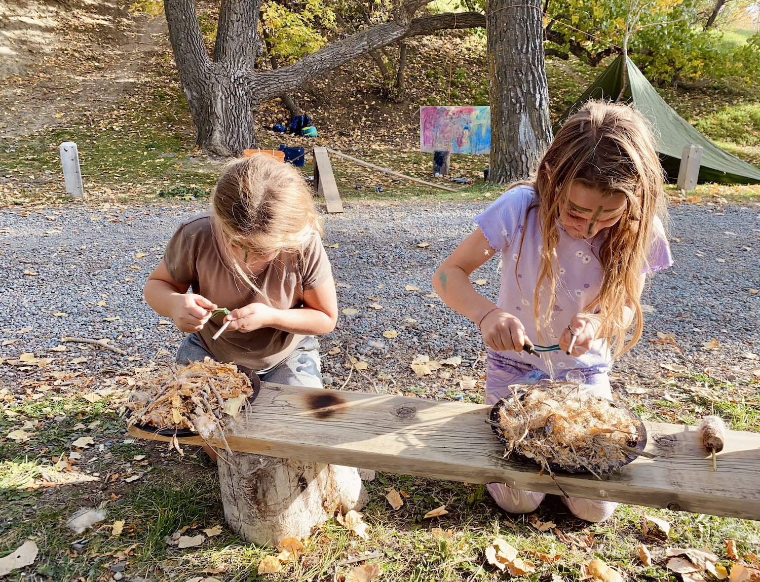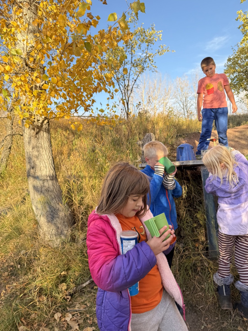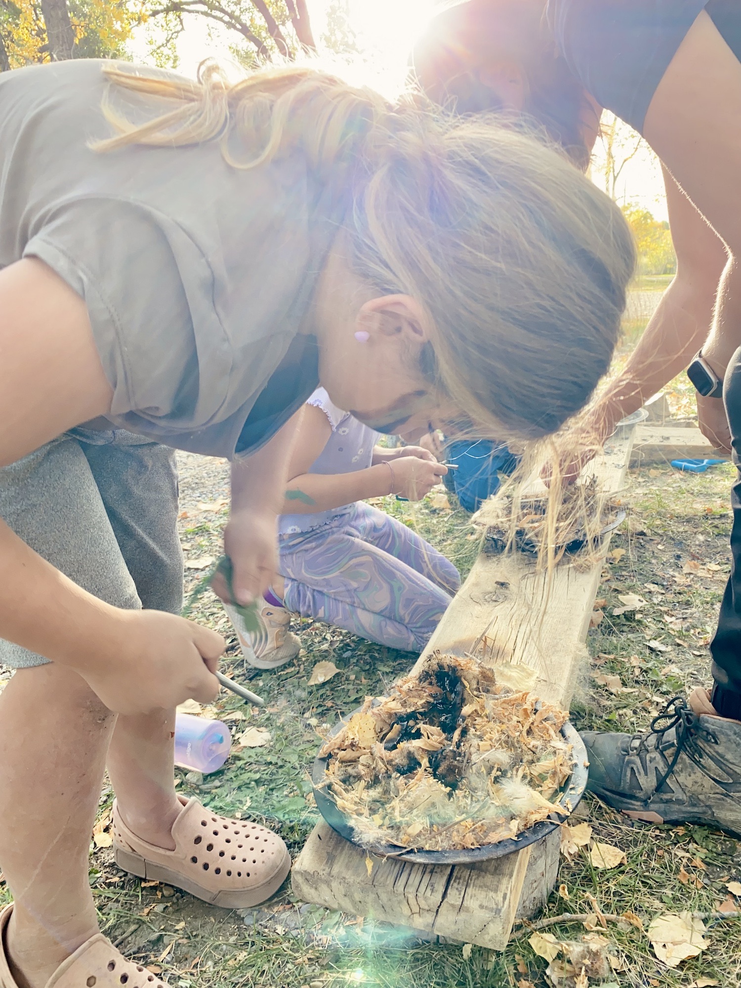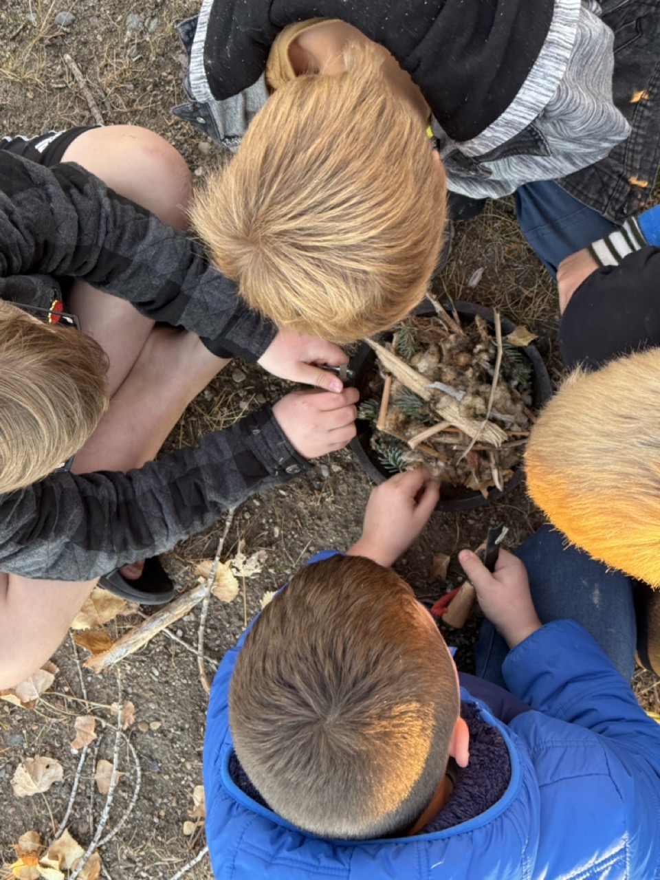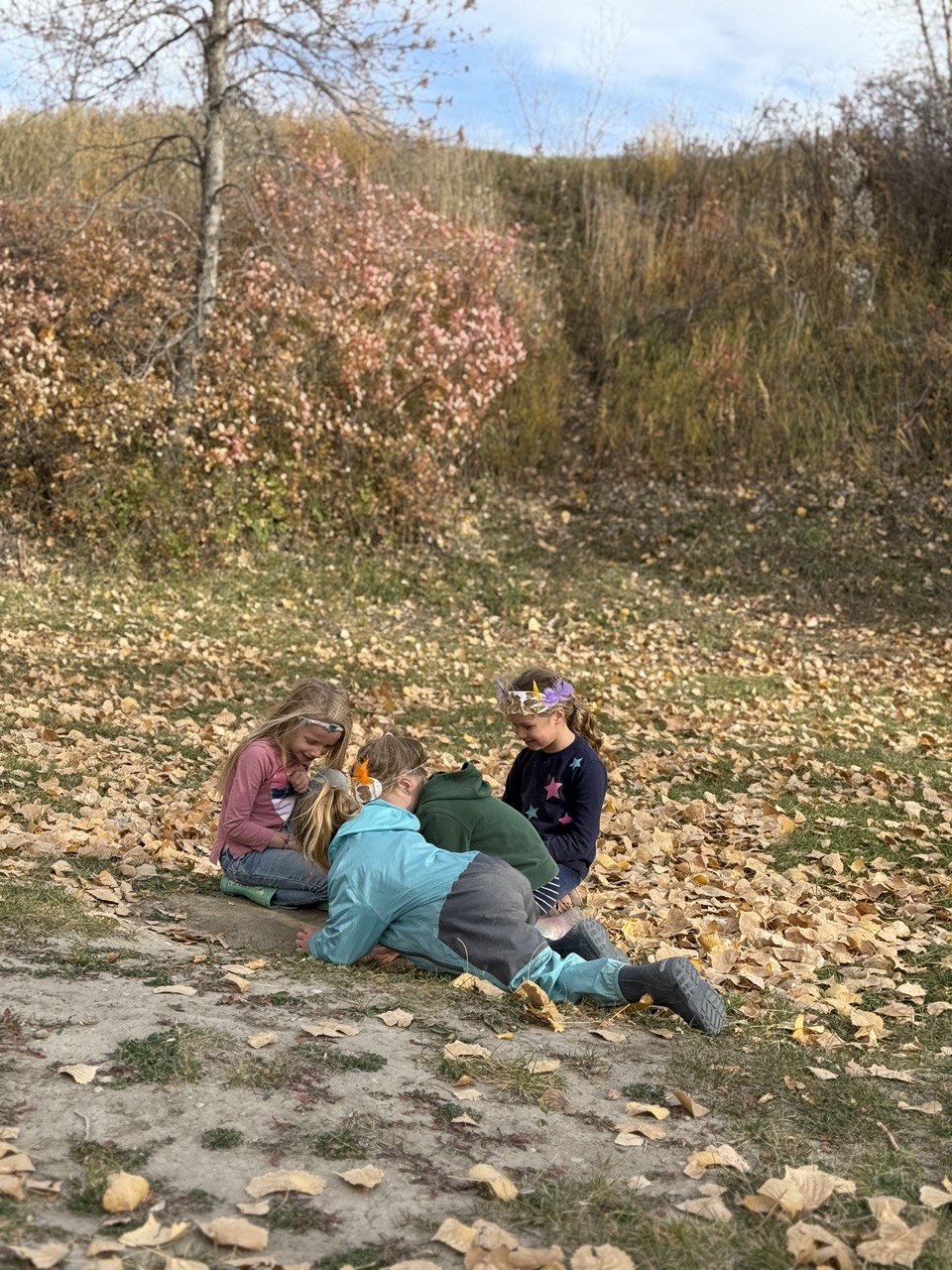 We kicked off today at full speed, chasing the remaining daylight hours! We acted as if we were lost, learning about the importance of always packing the five C’s of survival when hiking. These wildlings were then on their own to use the five C’s of survival that each team “packed.” They dove into erecting their shelters, making water filters and purifying their water, starting fires, and figuring out what they would do for food! Using some freshly picked mullein from Lethbridge, we made glycerine tinctures to support our health and help with any coughs this winter. We ended the day with donuts, hot chocolate, and a group storytelling session around the campfire!
