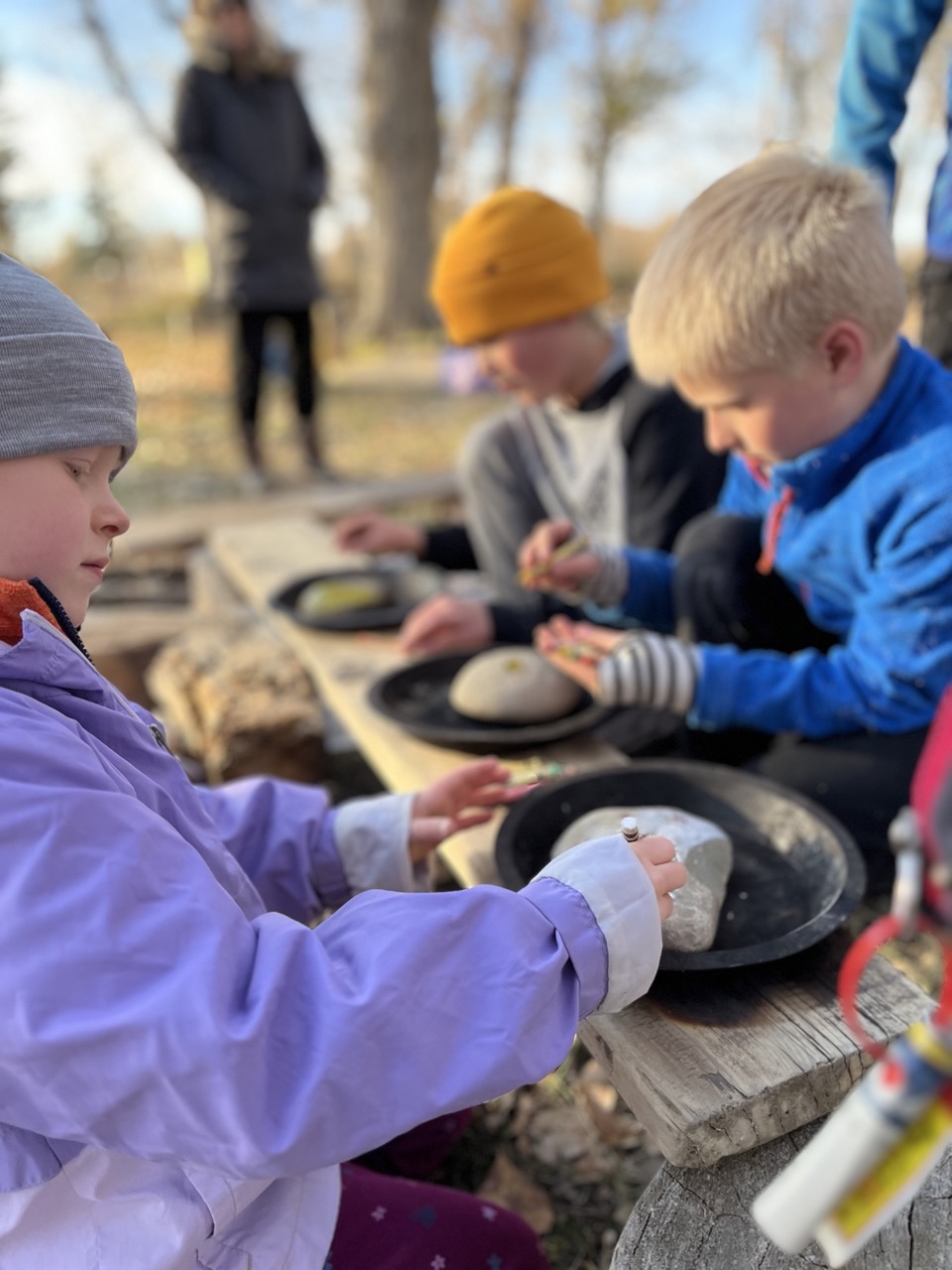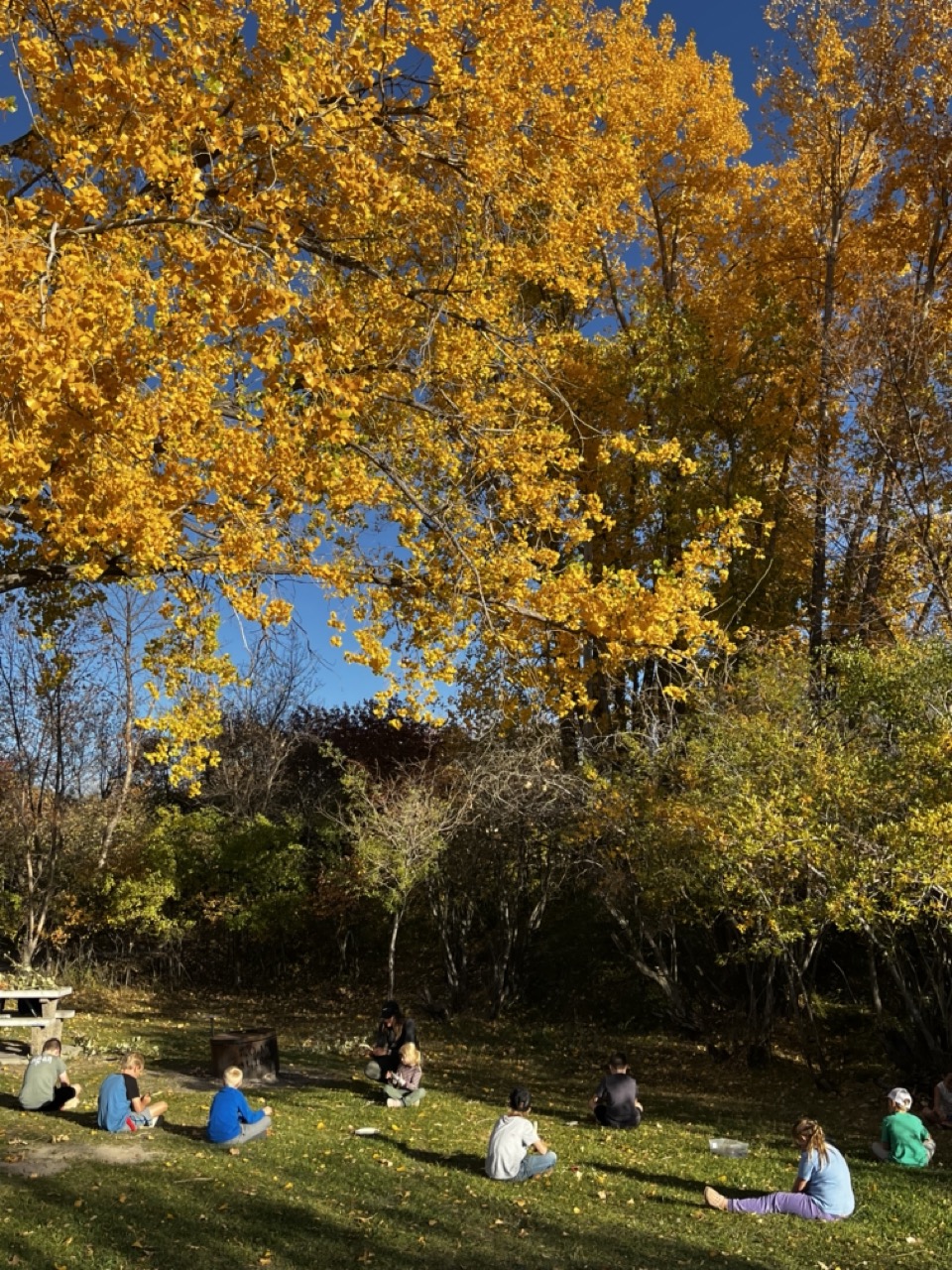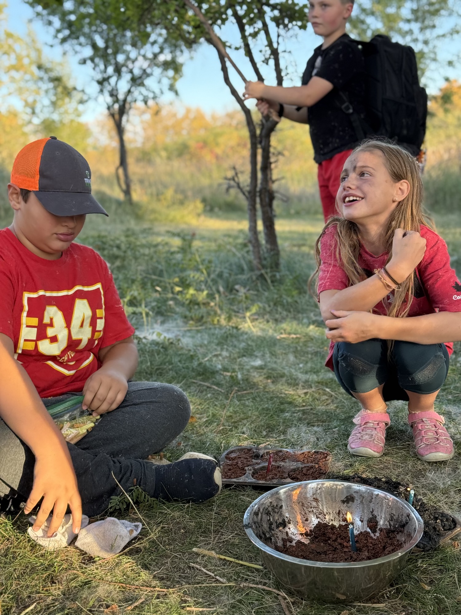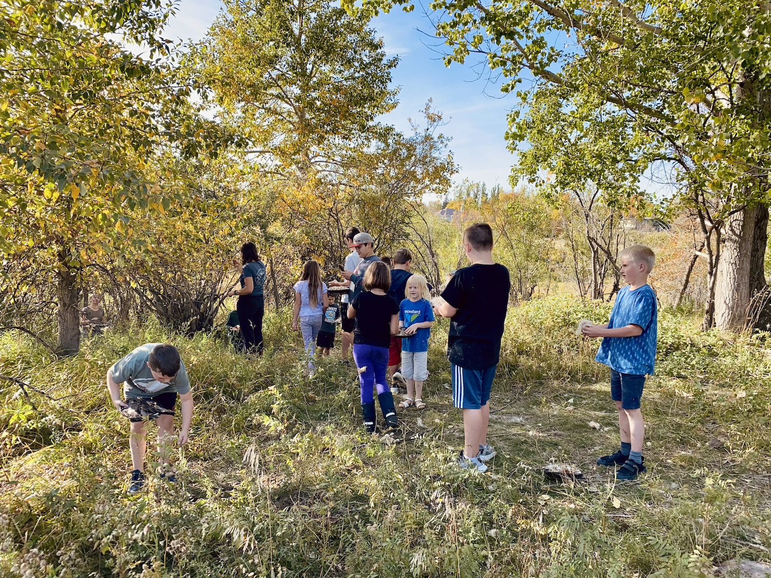 We kicked off today at full speed, chasing the remaining daylight hours! We acted as if we were lost, learning about the importance of always packing the five C’s of survival when hiking. These wildlings were then on their own to use the five C’s of survival that each team “packed.” They dove into erecting their shelters, making water filters and purifying their water, starting fires, and figuring out what they would do for food! Using some freshly picked mullein from Lethbridge, we made glycerine tinctures to support our health and help with any coughs this winter. We ended the day with donuts, hot chocolate, and a group storytelling session around the campfire!