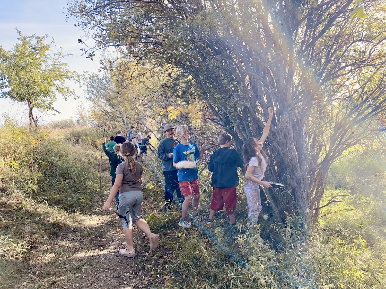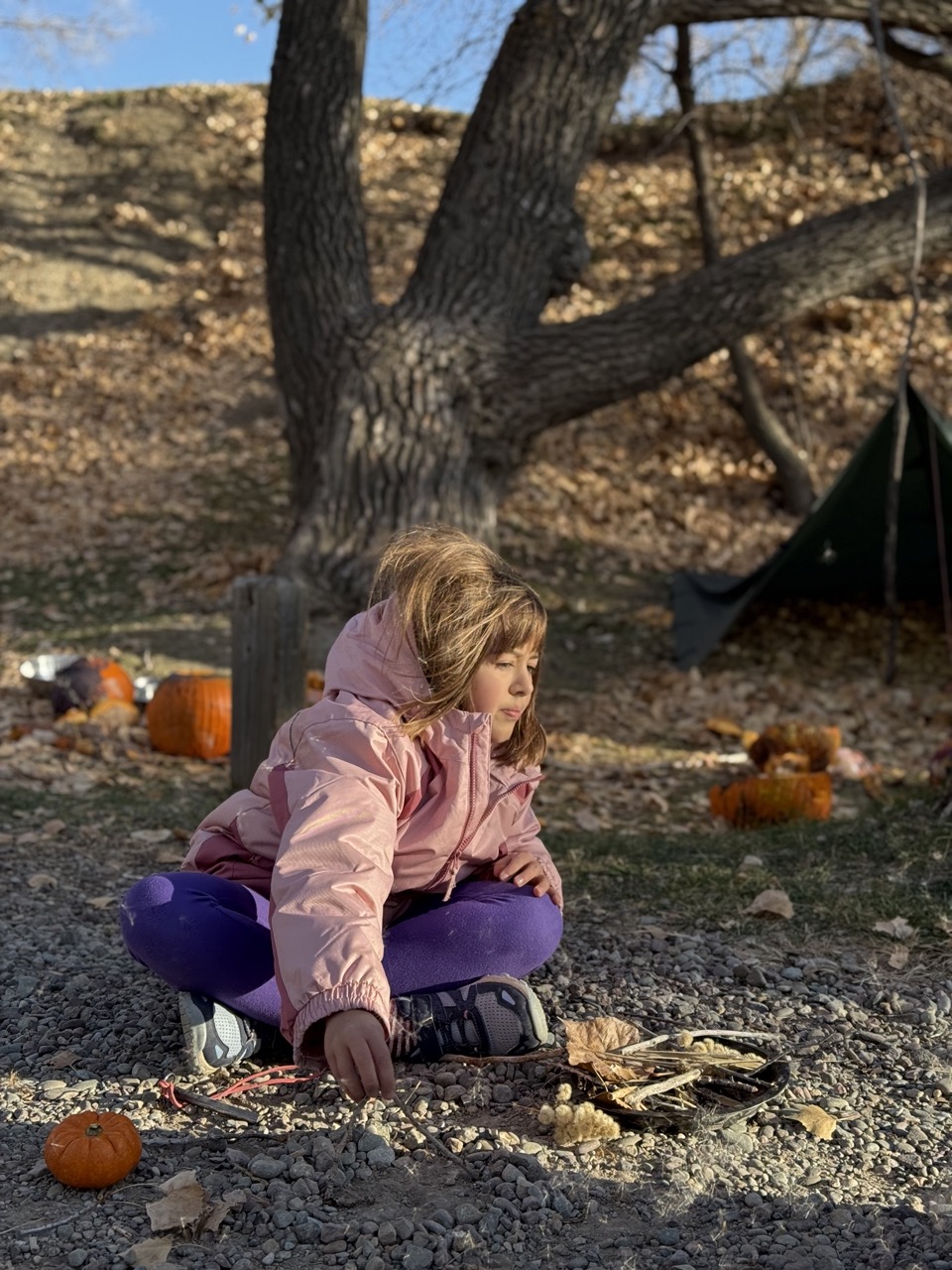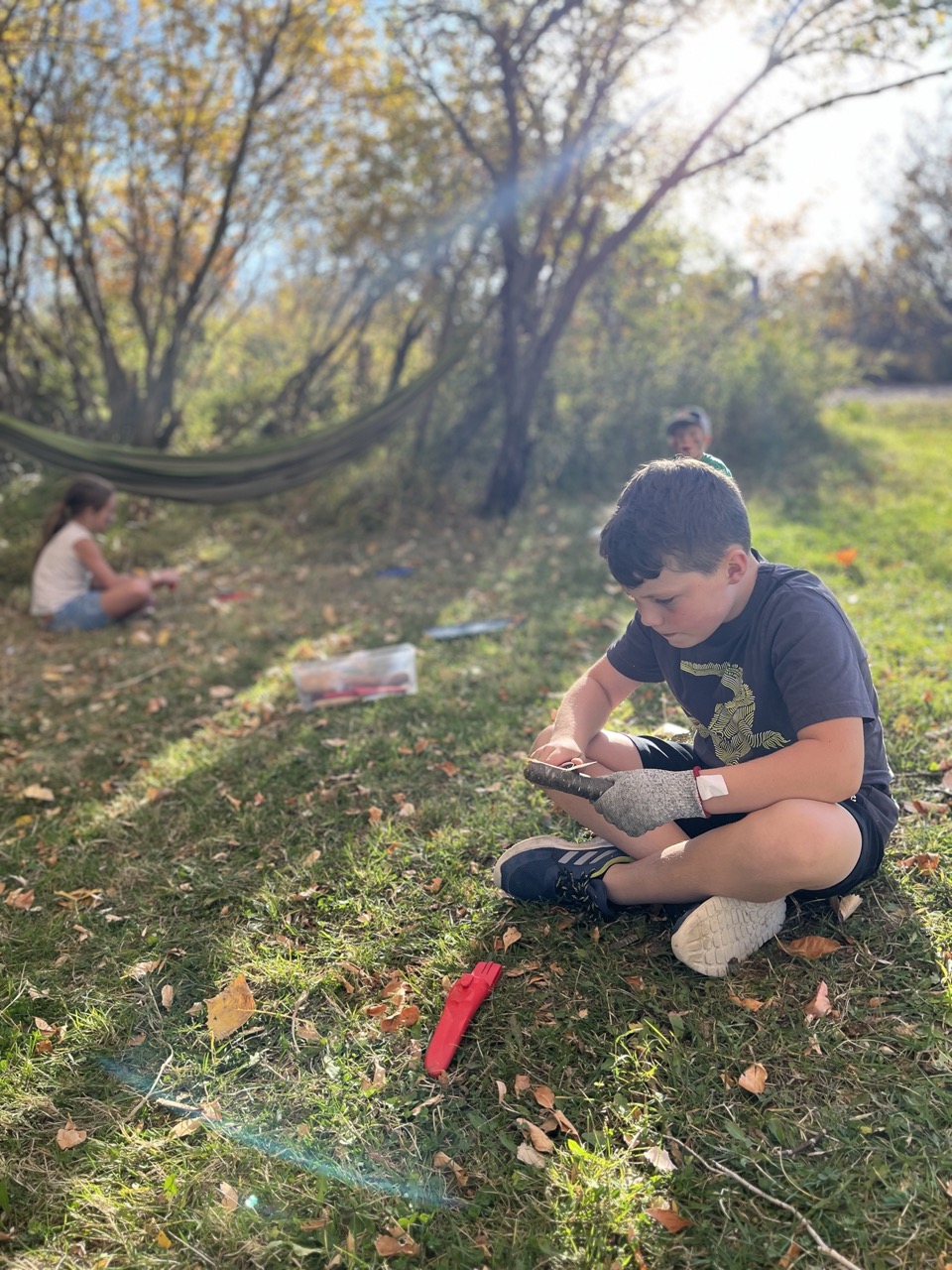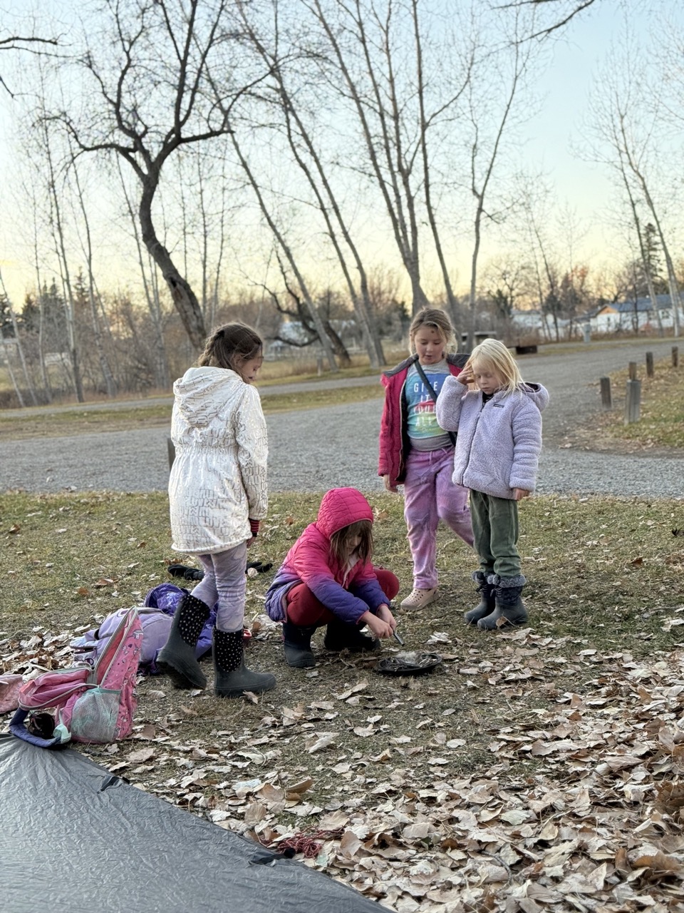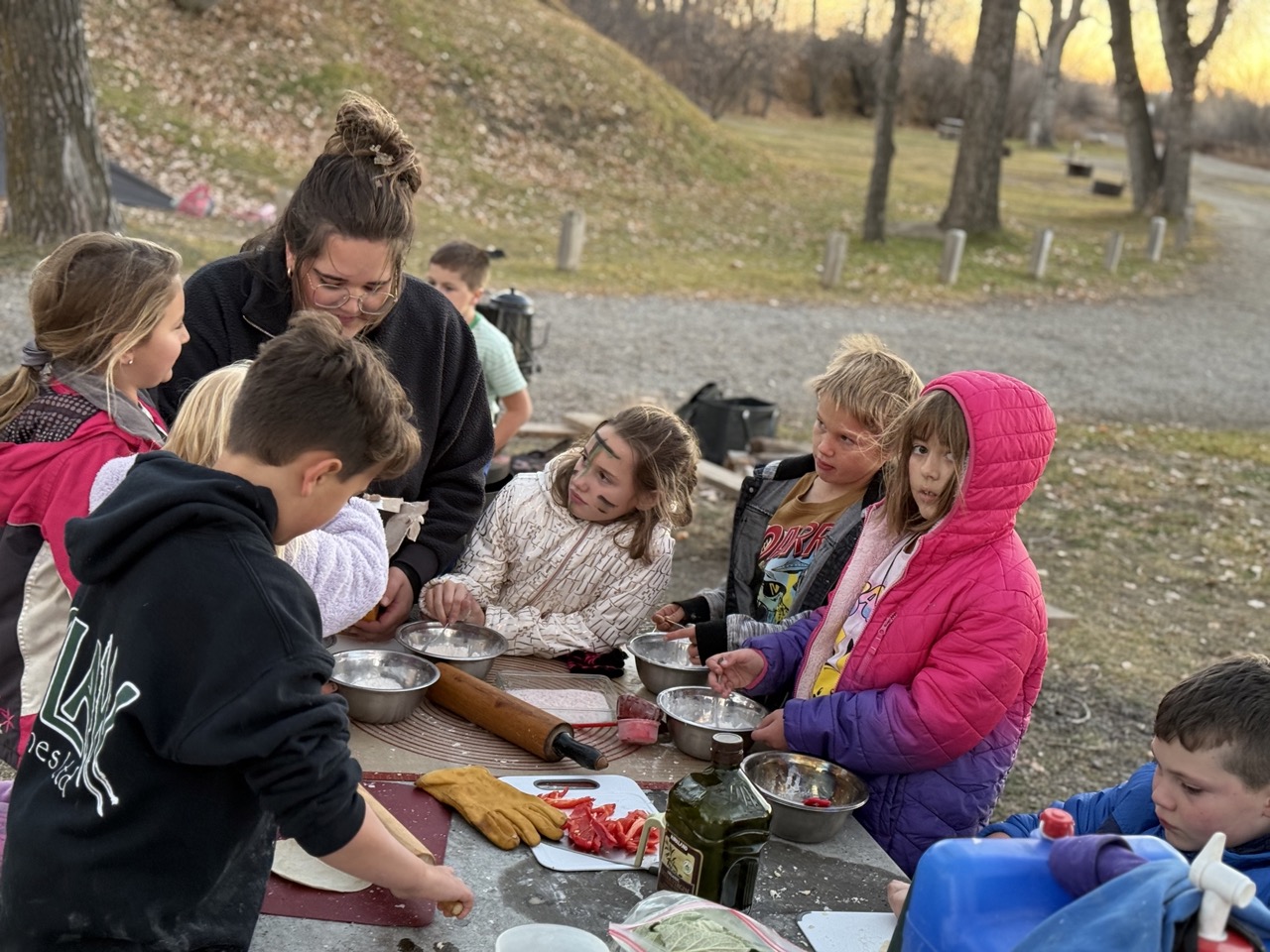 We kicked off today at full speed, chasing the remaining daylight hours! We acted as if we were lost, learning about the importance of always packing the five C’s of survival when hiking. These wildlings were then on their own to use the five C’s of survival that each team “packed.” They dove into erecting their shelters, making water filters and purifying their water, starting fires, and figuring out what they would do for food! Using some freshly picked mullein from Lethbridge, we made glycerine tinctures to support our health and help with any coughs this winter. We ended the day with donuts, hot chocolate, and a group storytelling session around the campfire!