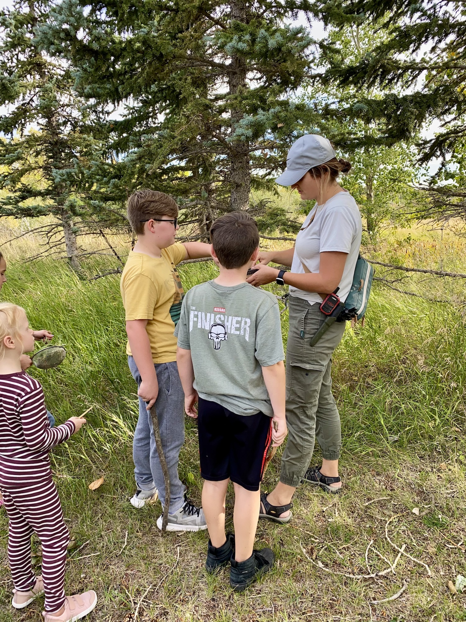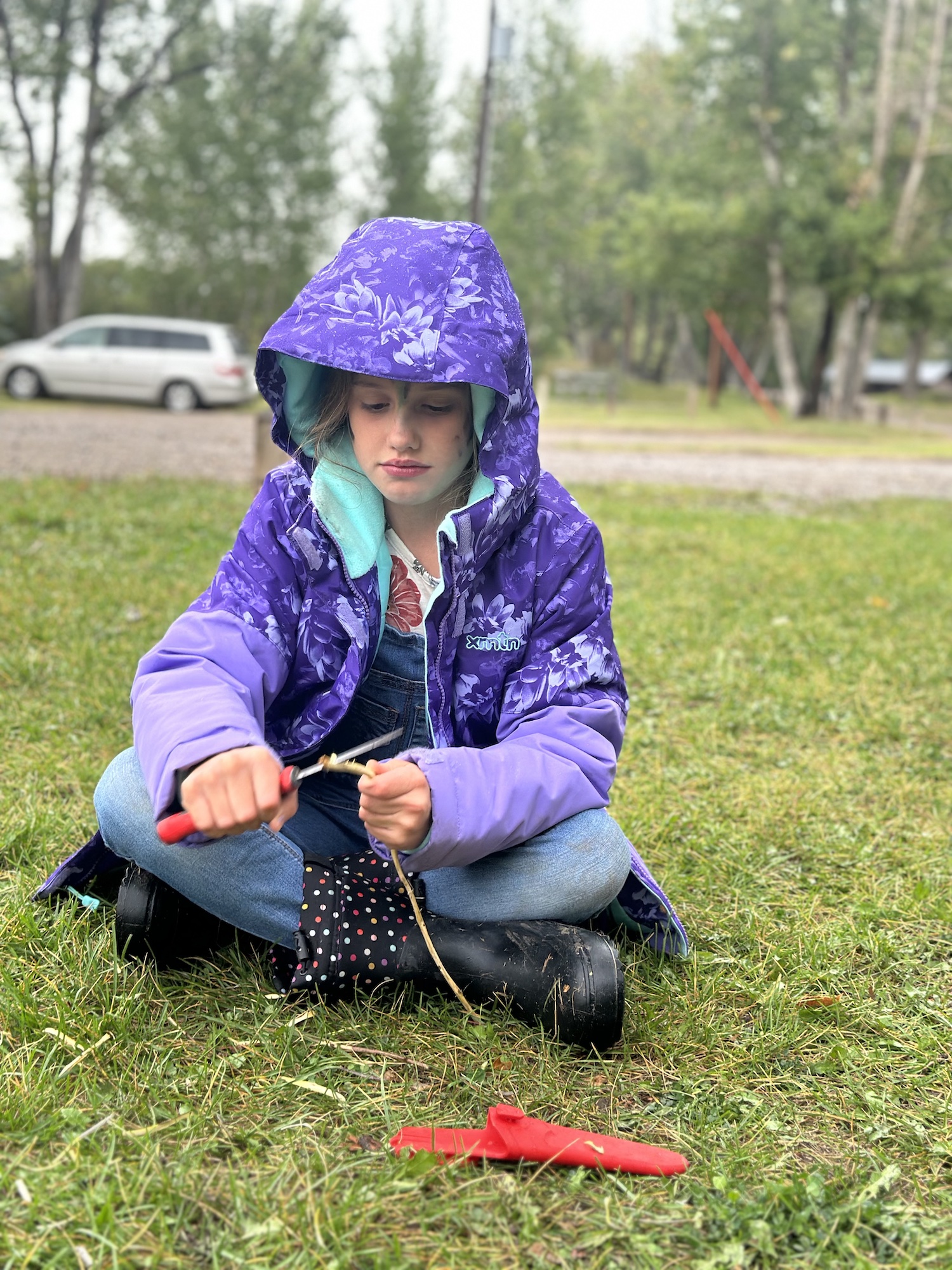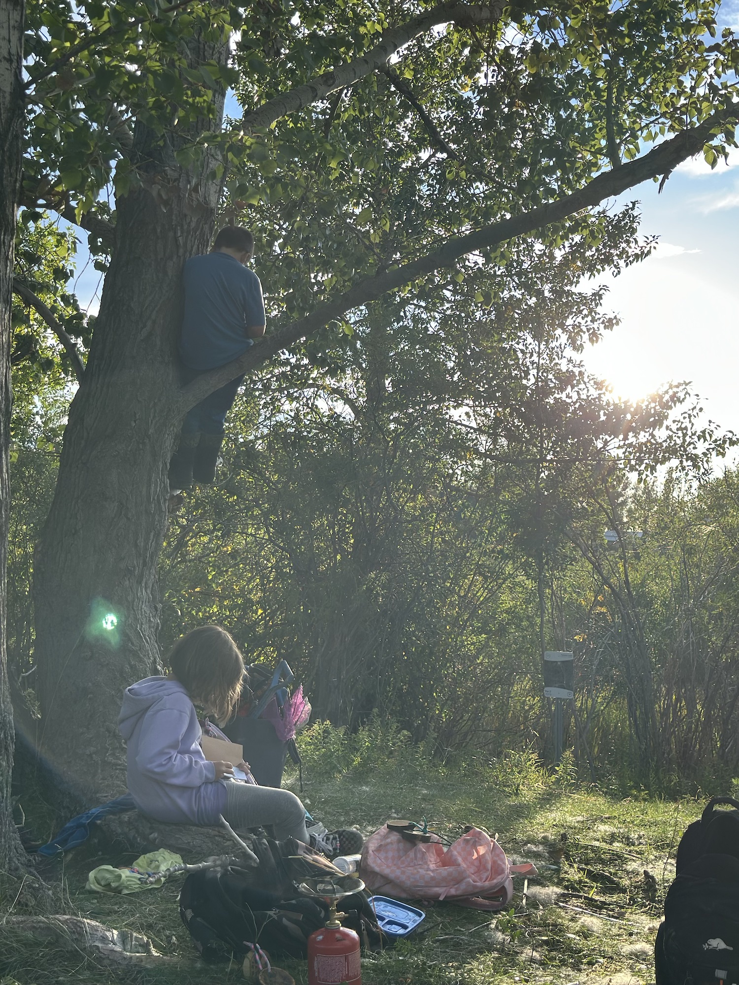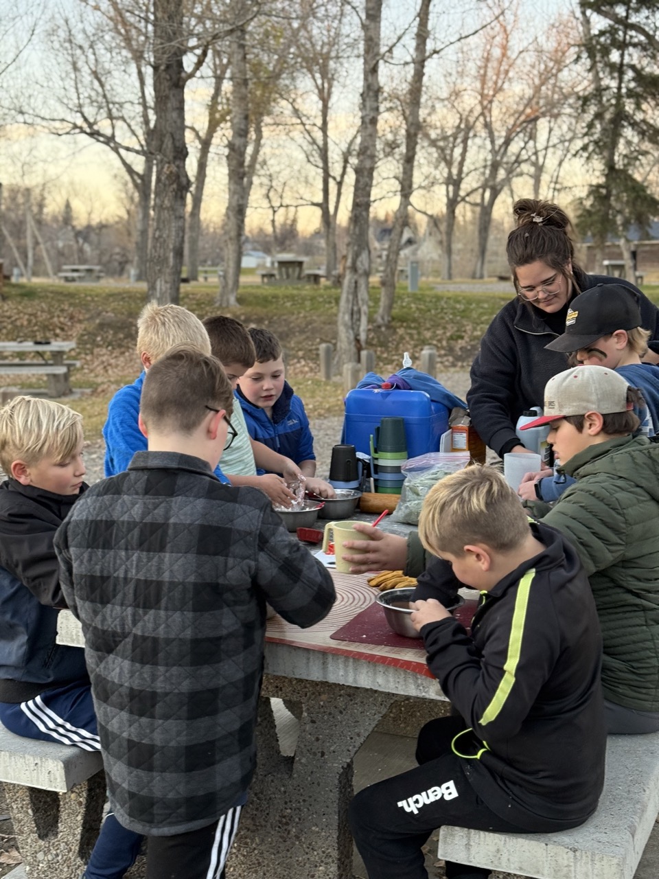 We kicked off today at full speed, chasing the remaining daylight hours! We acted as if we were lost, learning about the importance of always packing the five C’s of survival when hiking. These wildlings were then on their own to use the five C’s of survival that each team “packed.” They dove into erecting their shelters, making water filters and purifying their water, starting fires, and figuring out what they would do for food! Using some freshly picked mullein from Lethbridge, we made glycerine tinctures to support our health and help with any coughs this winter. We ended the day with donuts, hot chocolate, and a group storytelling session around the campfire!