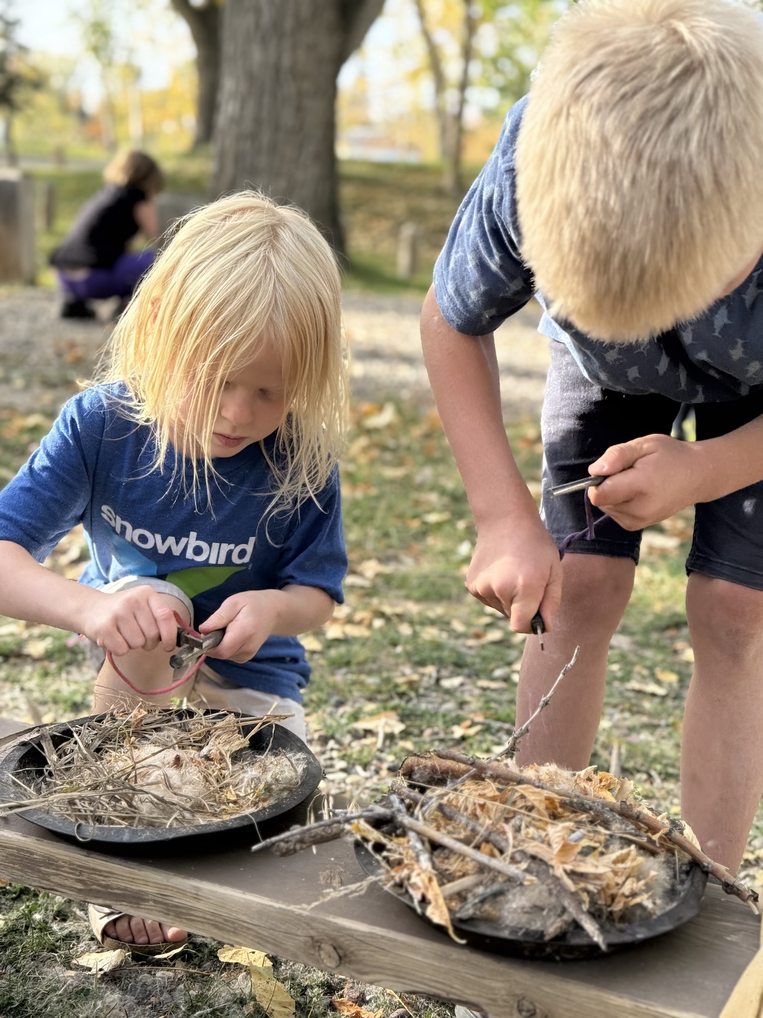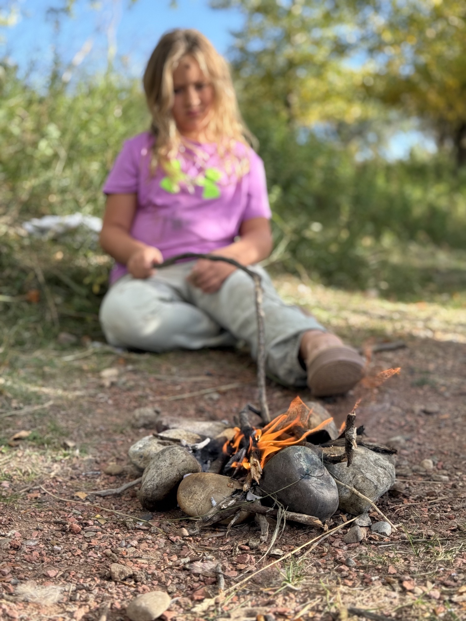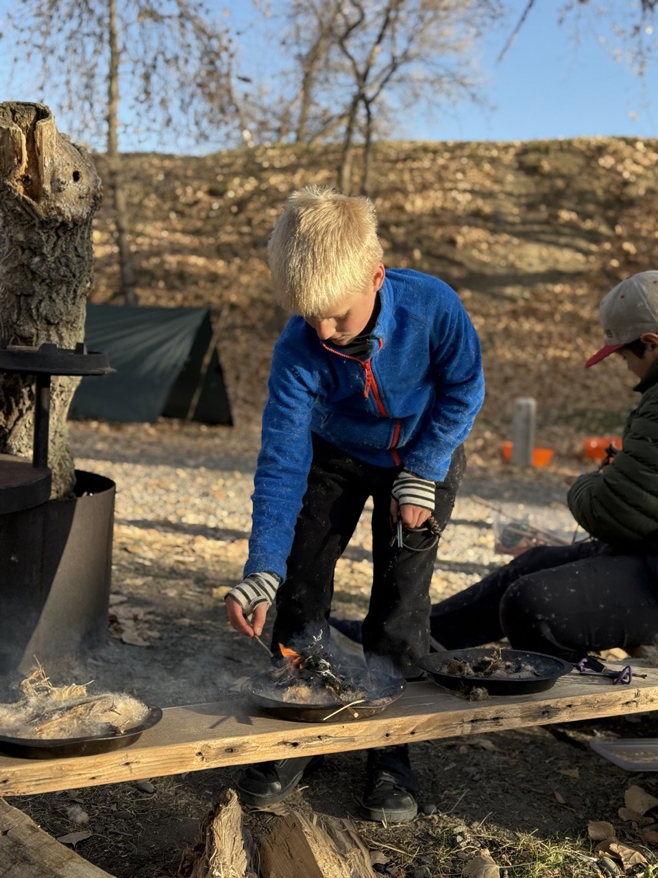 We started the day by leveling up our fire skills, foraging for materials and starting our own fires (which these wildlings are getting fantastic at!).